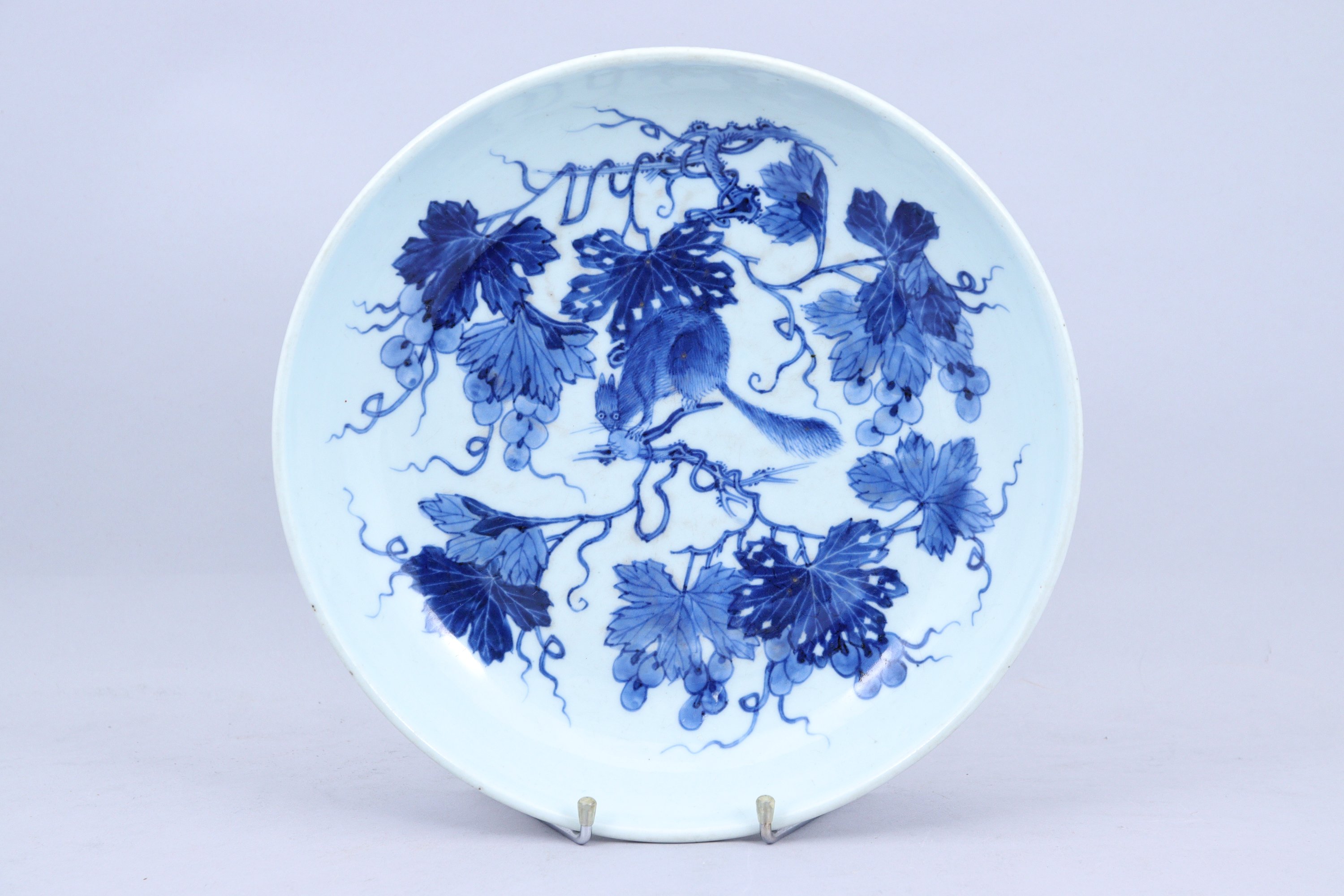en porcelaine bleu blanc à décor de loir parmi les vignes.