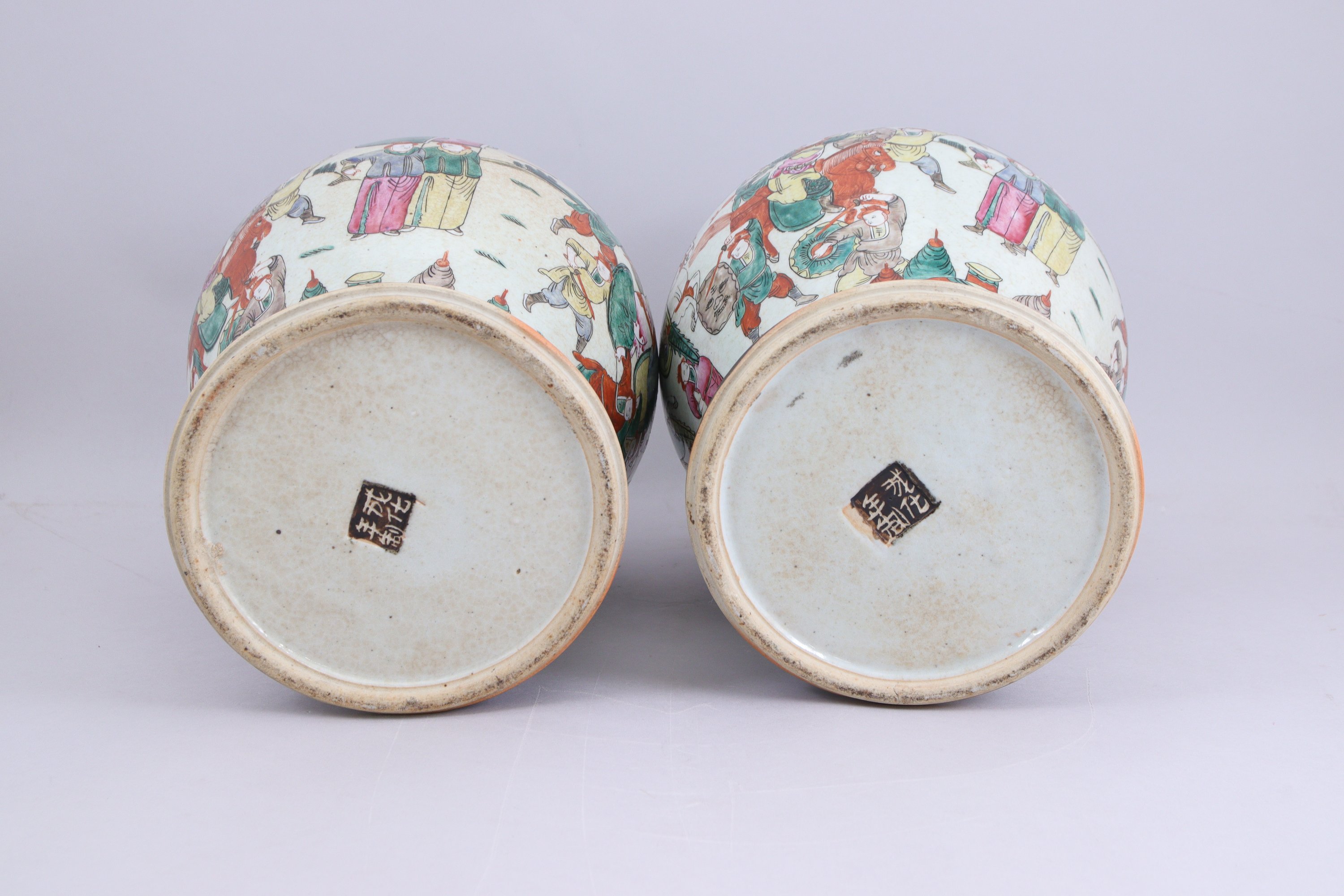 Chine, Nankin, XXe siècle.Paire de potiches à décor de personnages...