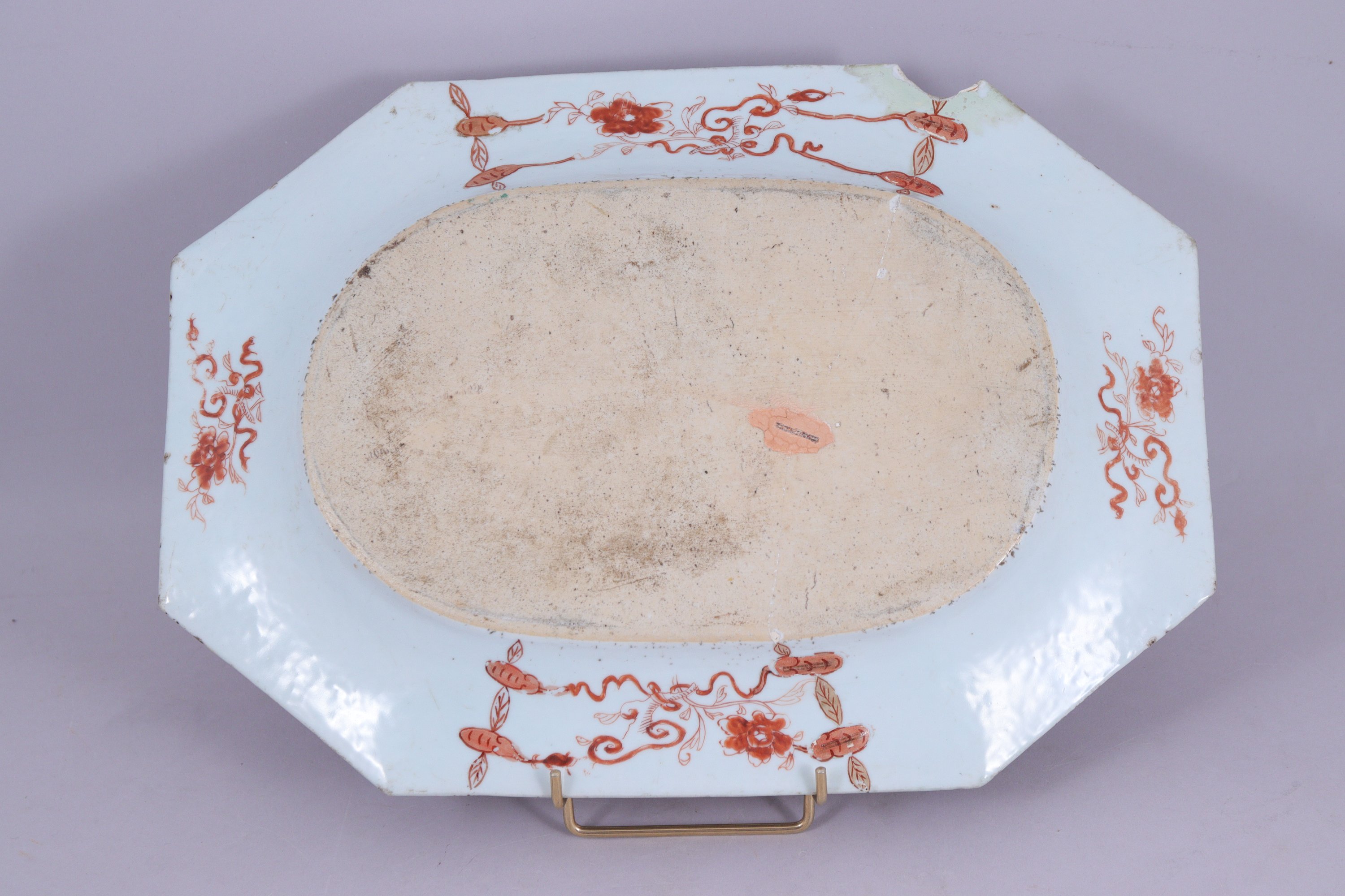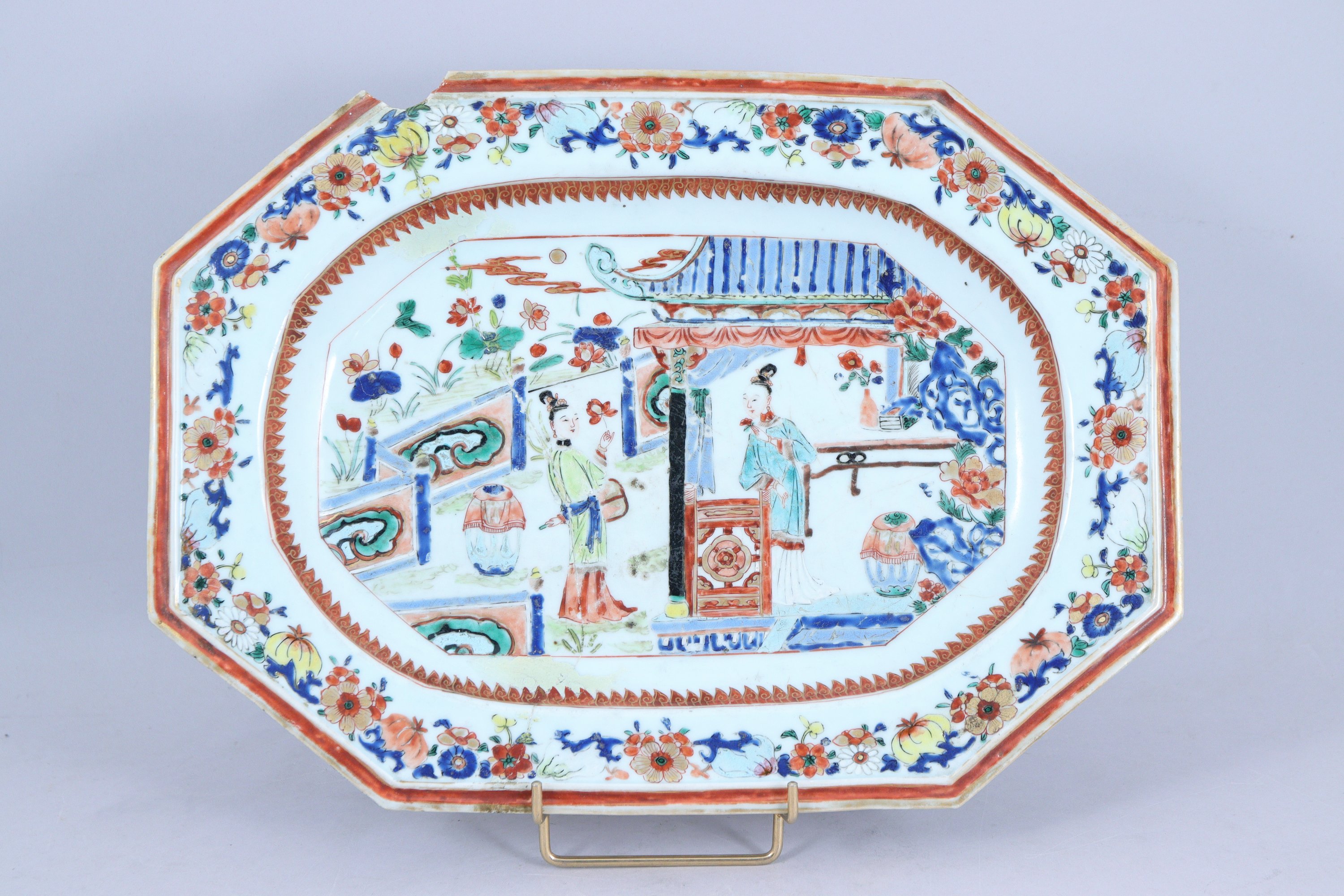 en porcelaine émaillée Famille verte, bleu et rouge de fer à décor de femmes de cour dans un jardin de lotus, l'une tenant un lotus et un éventail, l'autre abritée par un pavillon, l'aile ornée d'une frise de fruits et fleurs.