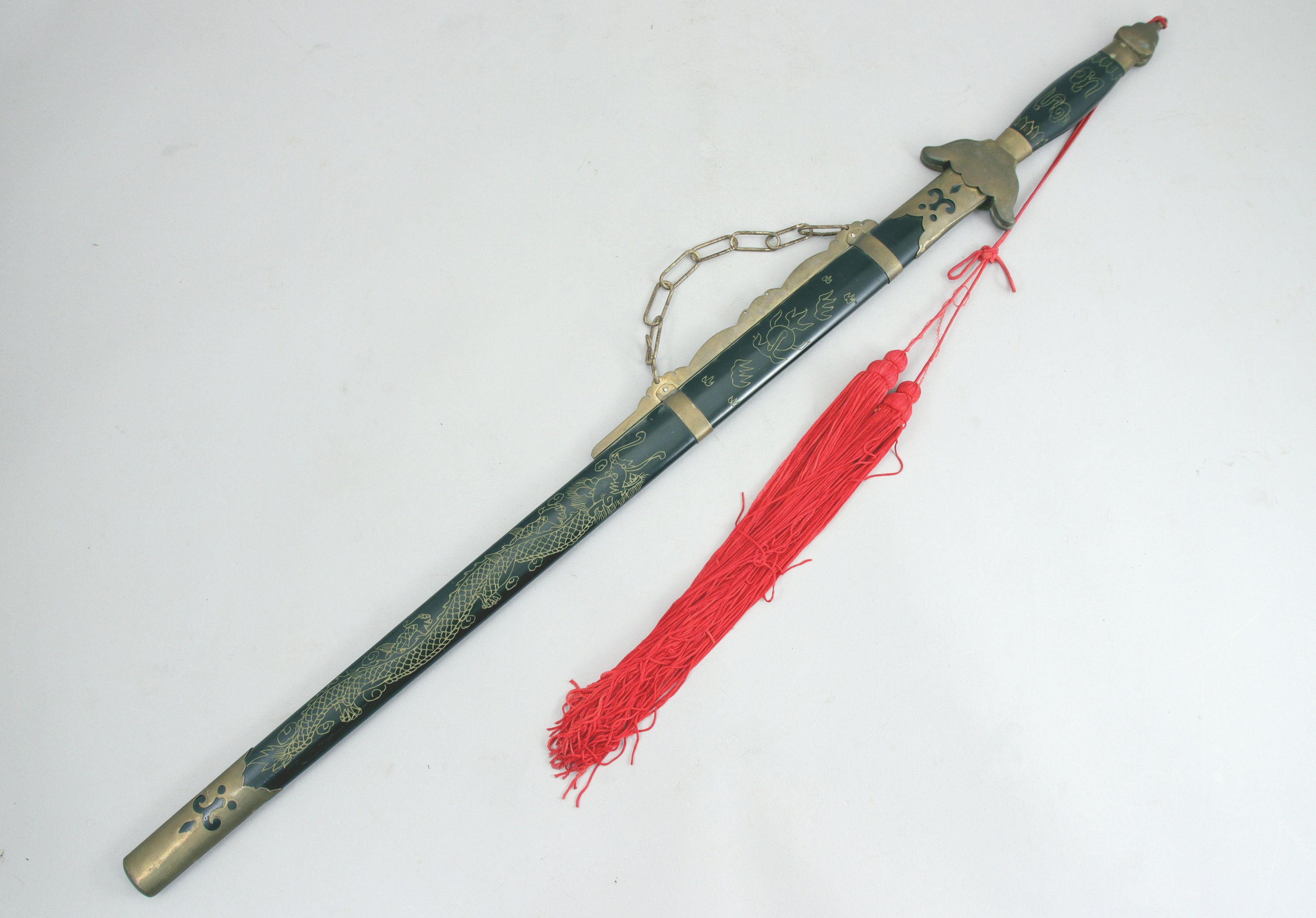 Chine, moderne.Épée de style Tai-Chi,poignée et fourreau en bois peint...