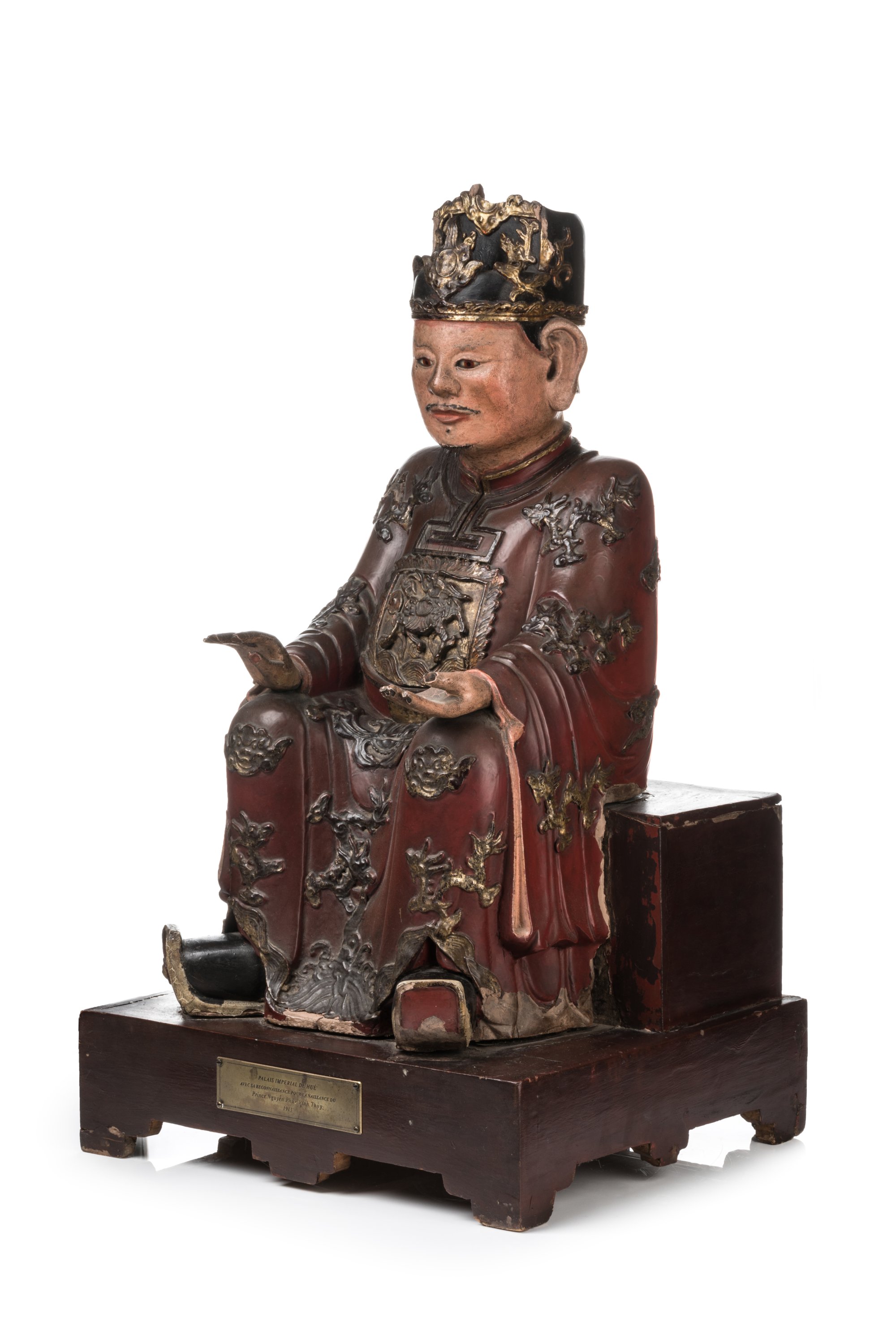 Vietnamese statuette of a dignitary made of carved and lacquered wood, offered in 1913 on the occasion of Emperor Bao Daï's 1913 birth to the delivering physician.