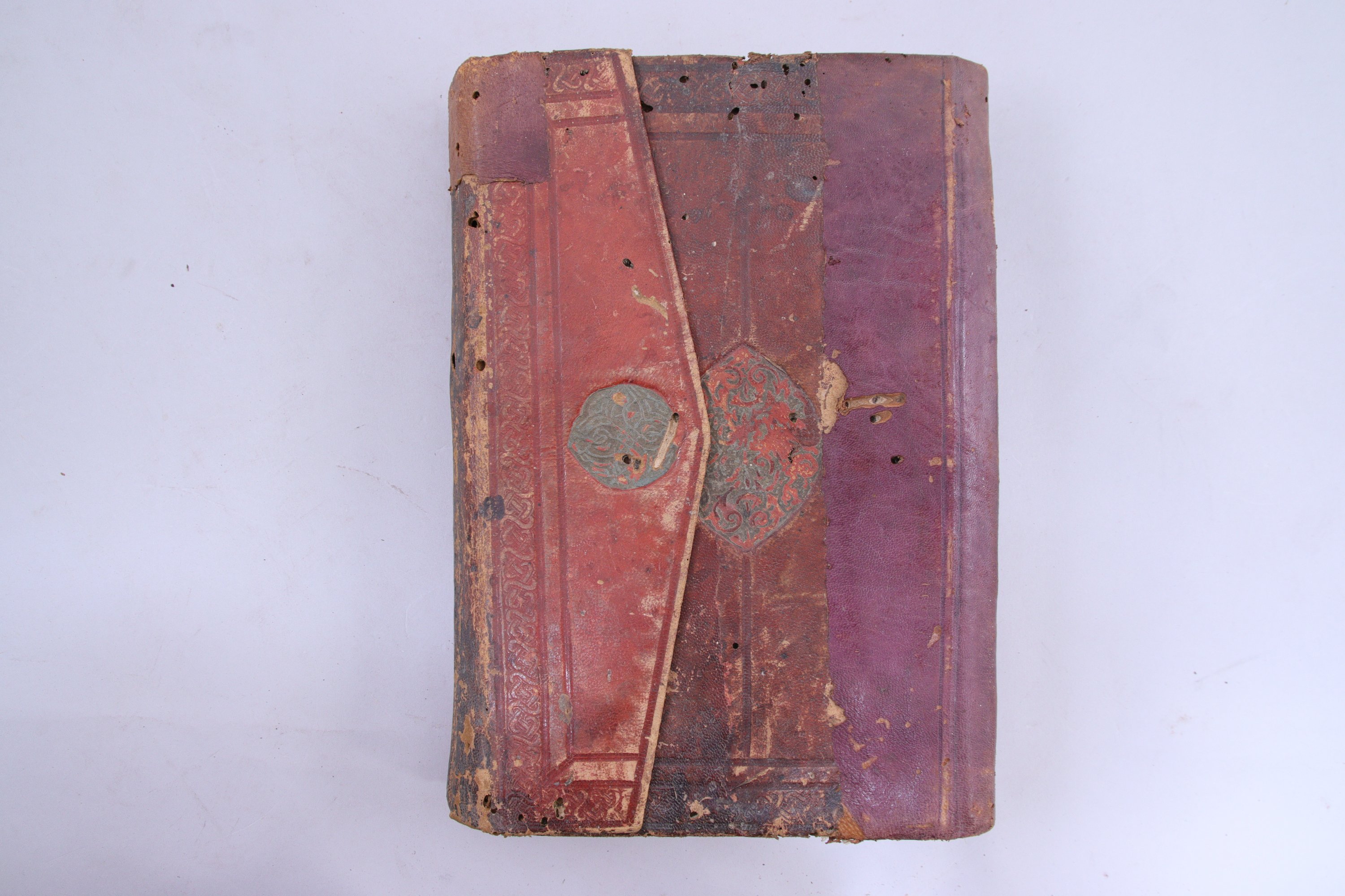 (Ouvrage très mangé par les vers, reliure restaurée, des folios remplacés, quelques folios dun autre manuscrit ajoutés à la fin).