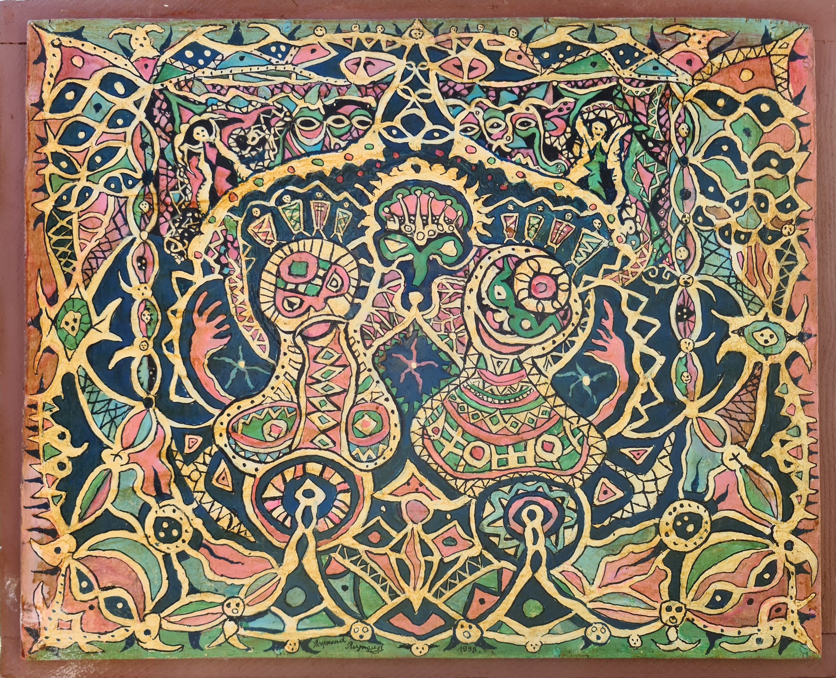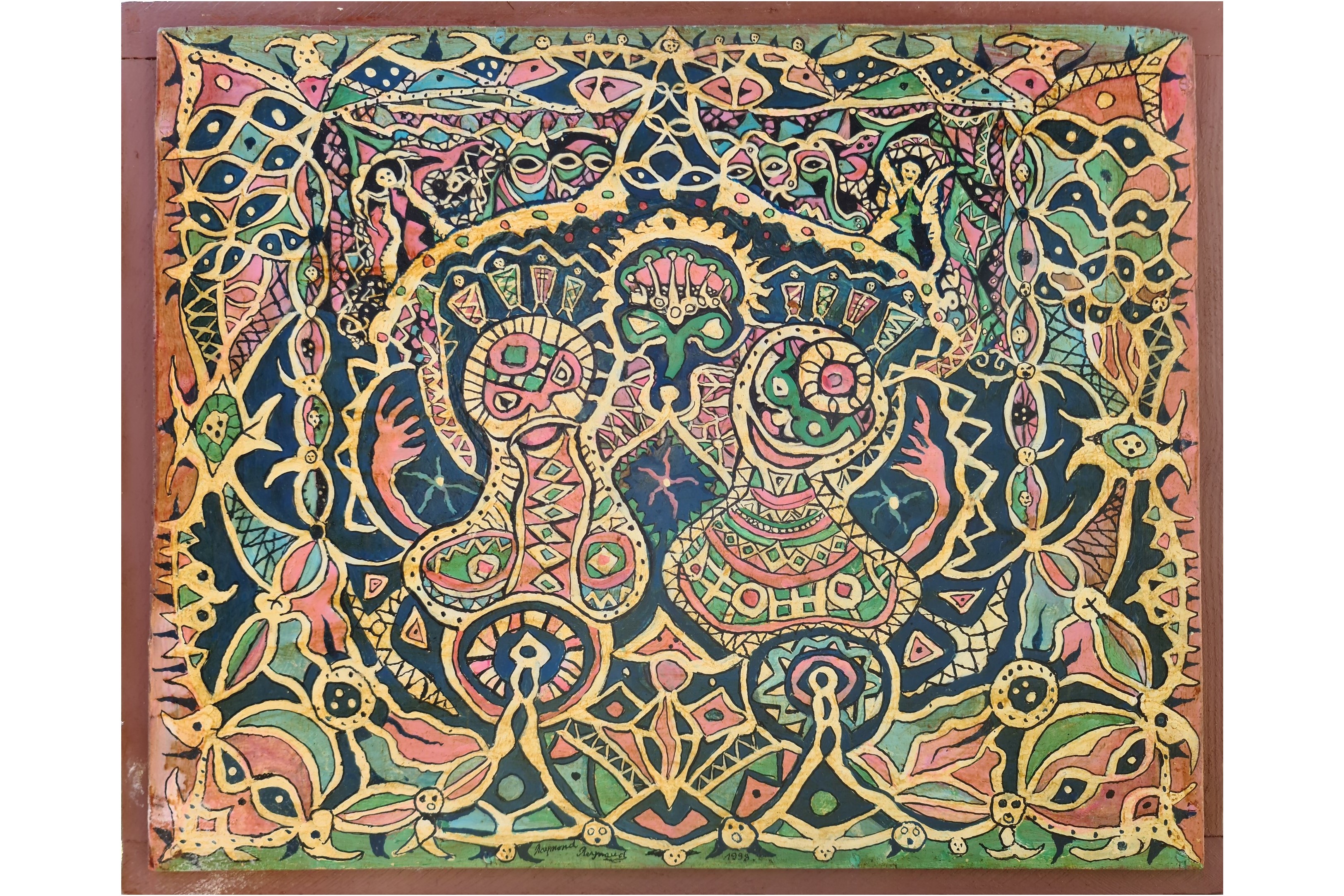 Gouache sur papier marouflé sur bois. Signée.