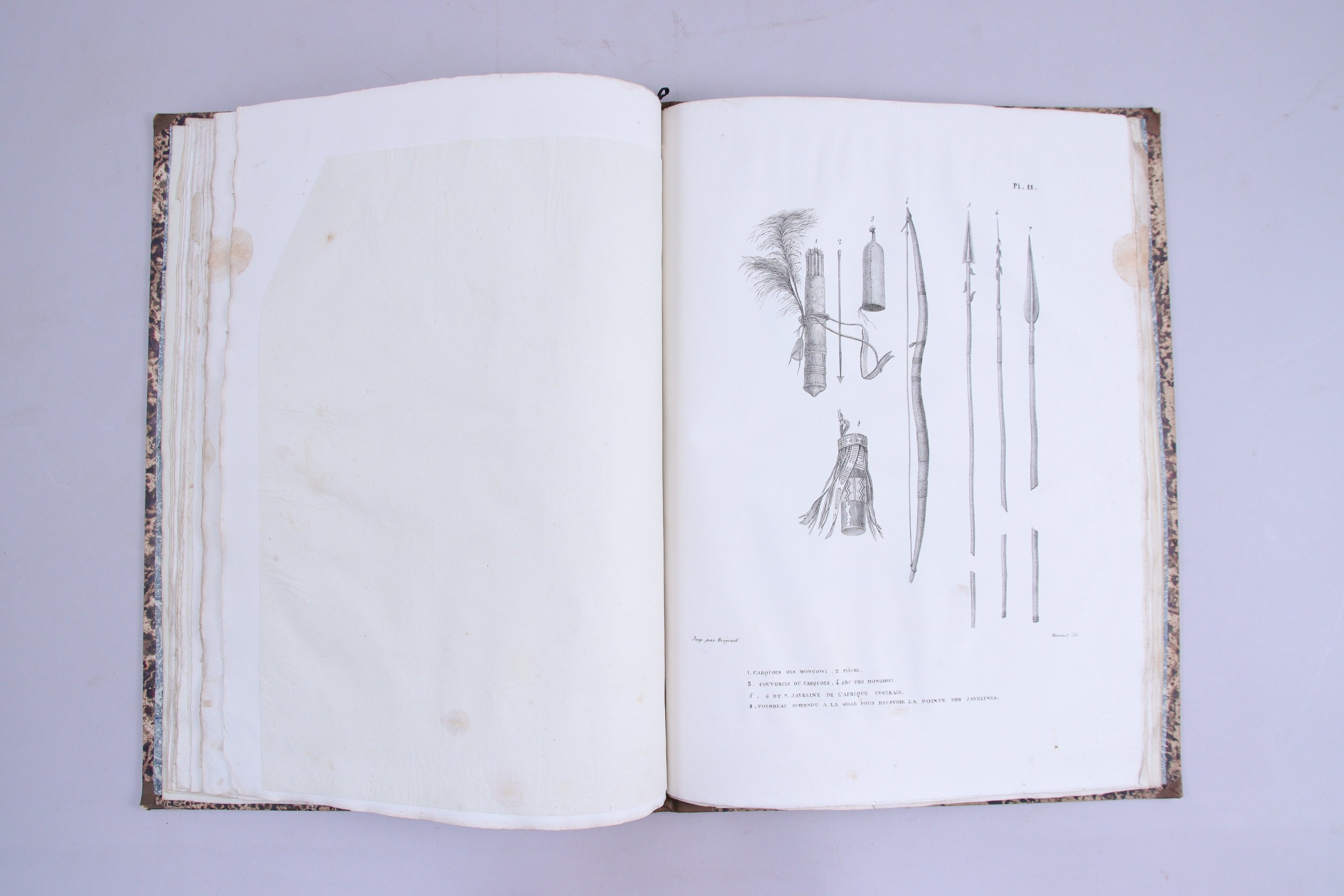 14 lithographies à pleine page (costumes, paysages etc...) et 5 cartes, dont une carte générale des voyages mesurant 640 X 470 mm.