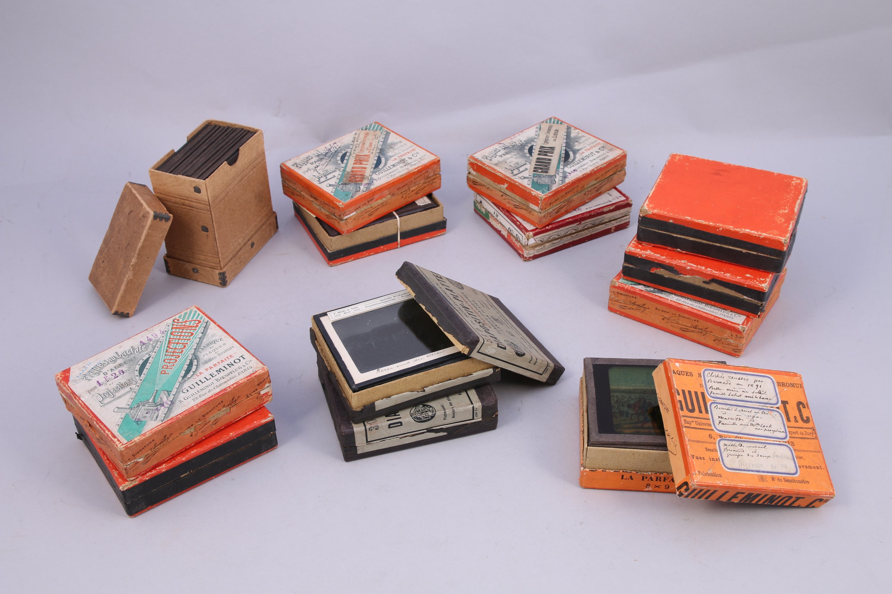 Environ 145 positifs sur verre dont certains en couleurs. L’ensemble conservé dans des boites d’origine. Titres sur quelques plaques.
