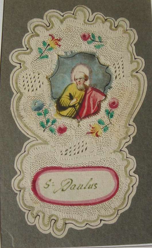 2 petits CANIVETS. Saint Paul, contour fantaisiste. Inscription "S Paulus". Papier. XVIIIème. 12 x 8 cm.