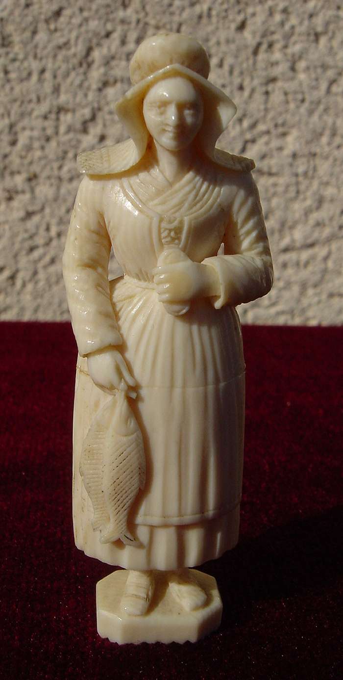 LA POLLETAISE, ivoire en ronde bosse de Dieppe. XVIIIème-XIXème. Haut. 9,5 cm.