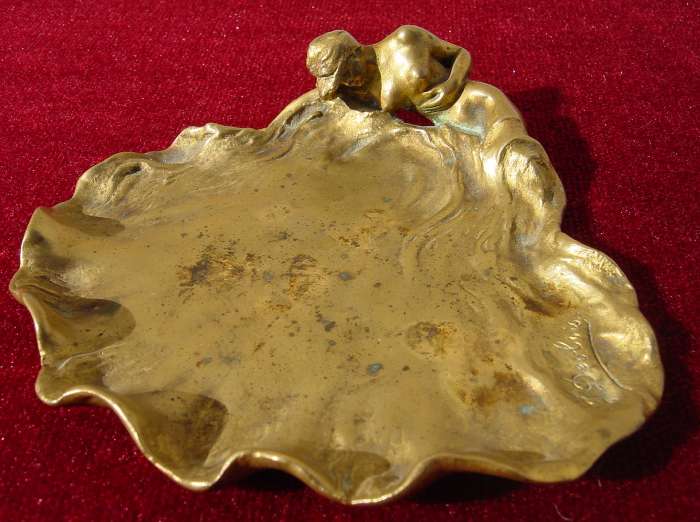 Vide-poche en forme de coquillage orné d'une dryade sculptée. Bronze. Signé. Cachet "Siot-Decauville, fondeur" et numéroté "B 624". 13 x 13 cm.