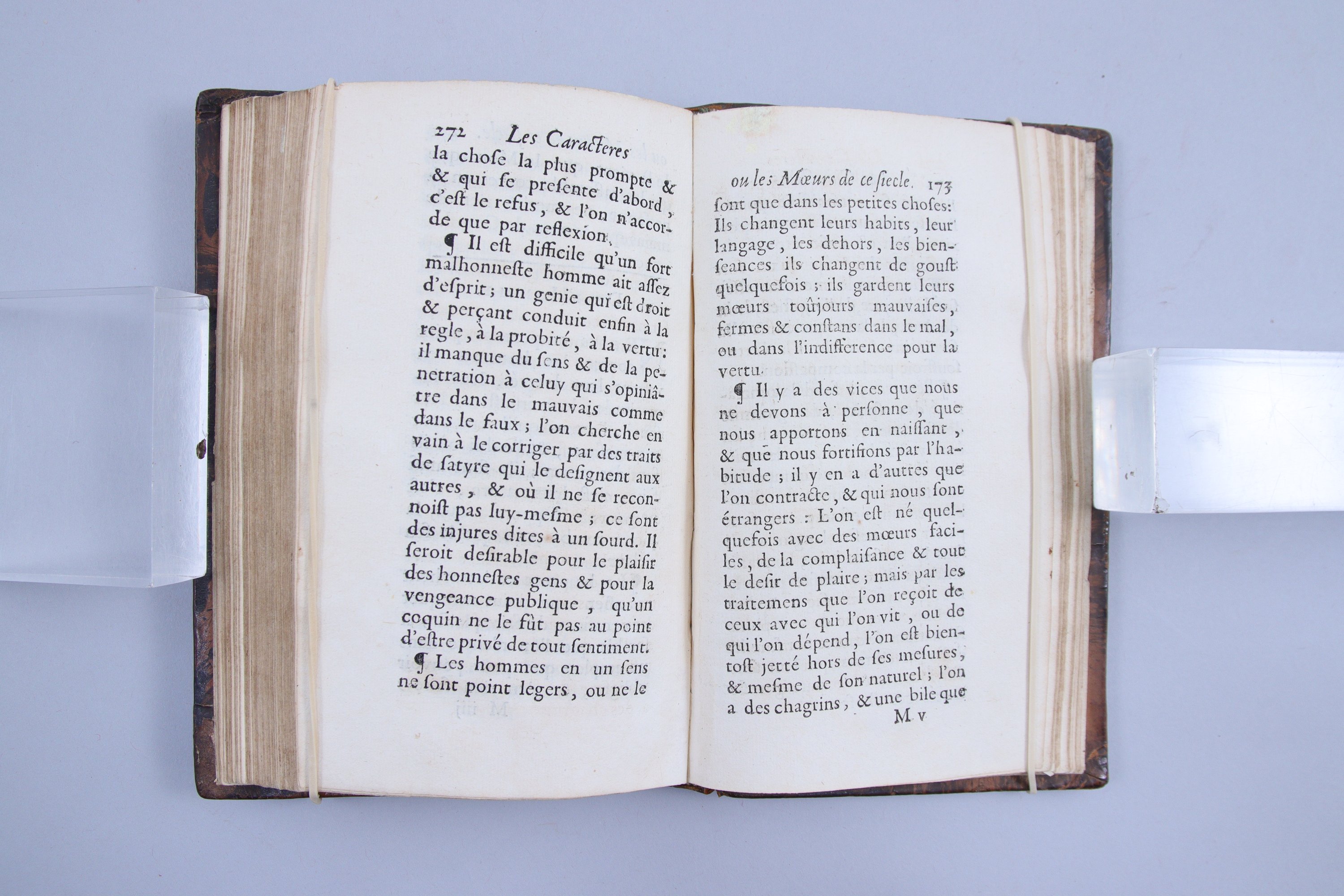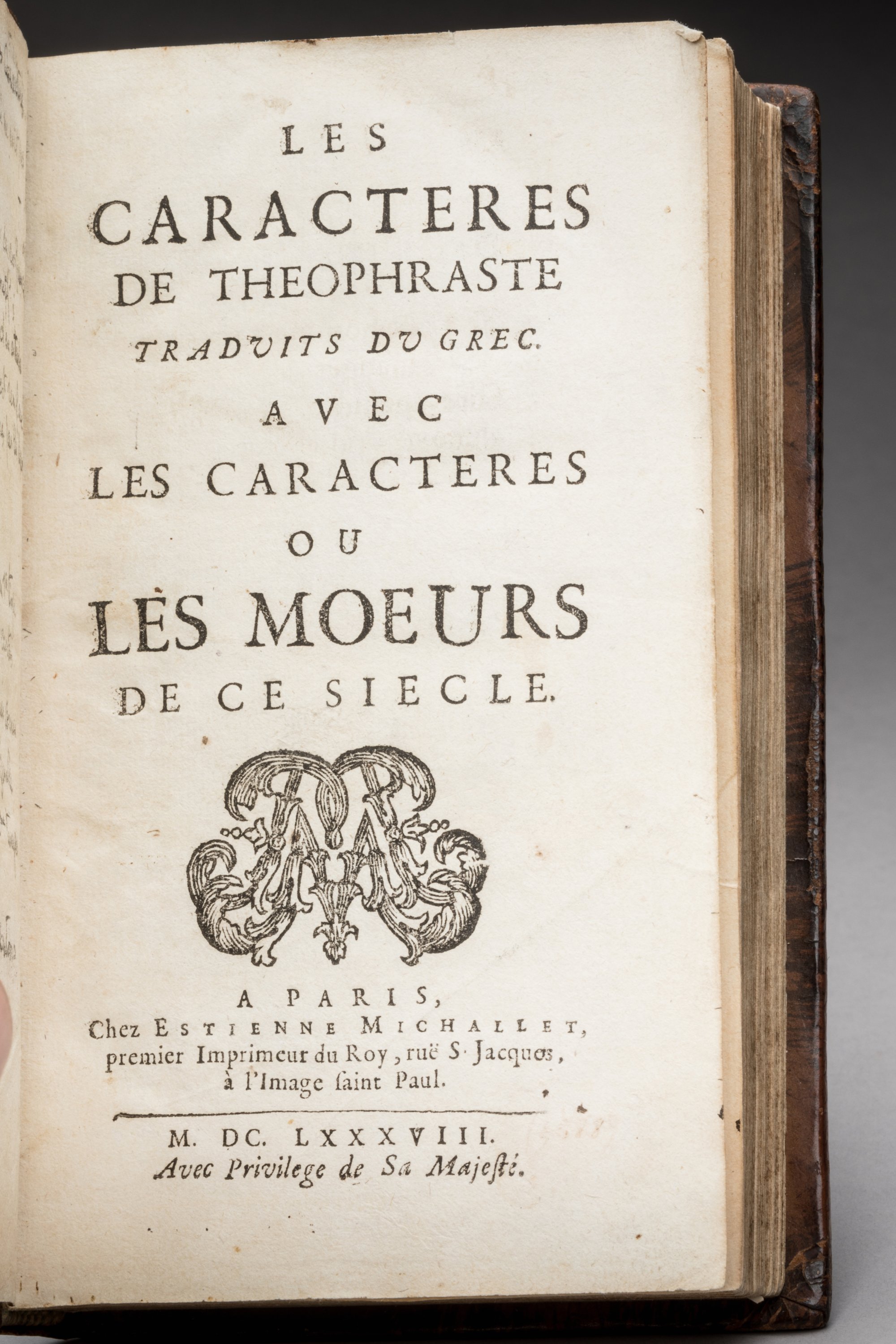 Très rare deuxième émission de l'édition originale des Caractères, dont la première émission est inconnue. Elle contient 418 caractères.