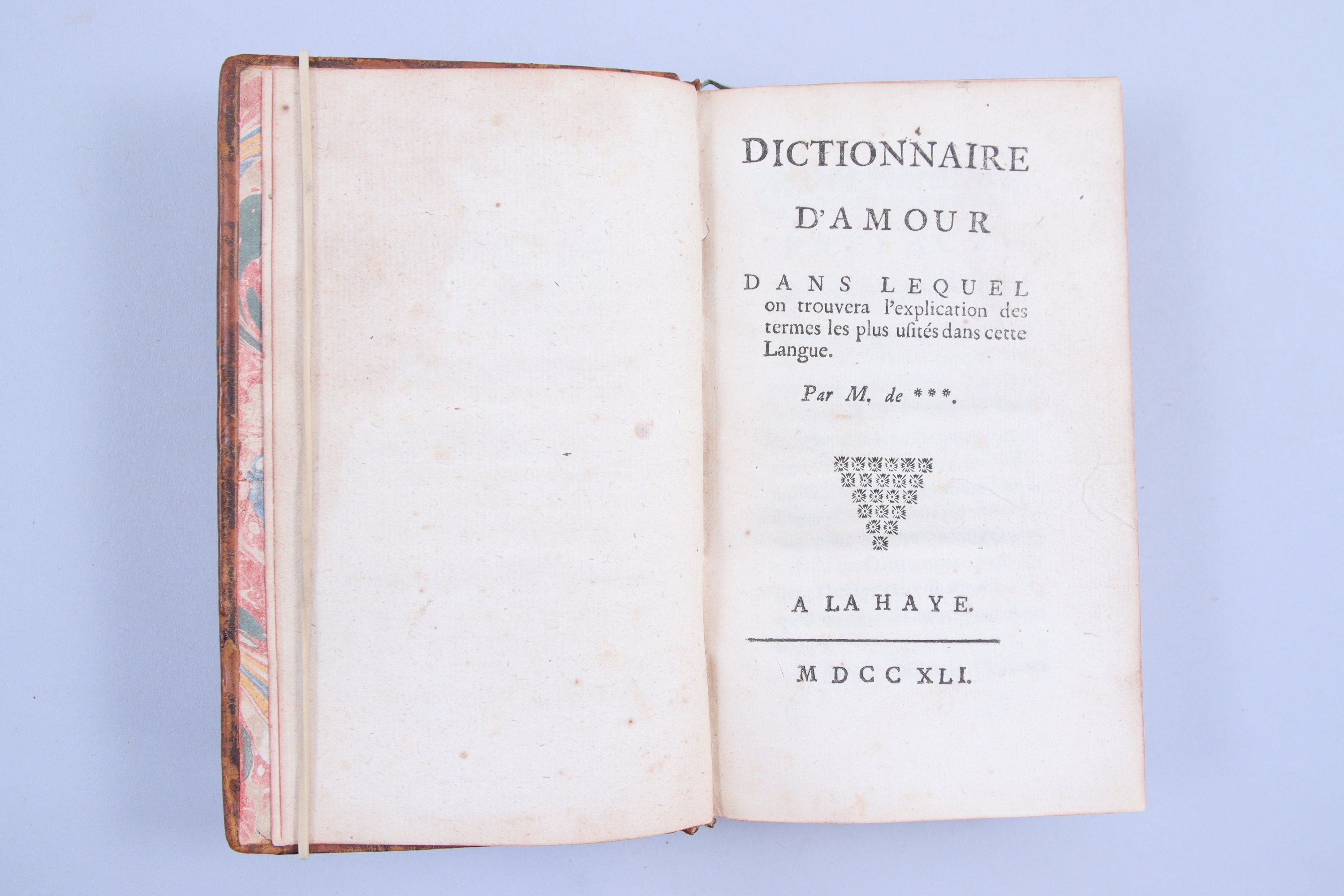 Dictionnaire d'Amour, dans lequel on trouvera l'explication des termes les plus usités dans cette langue. Par M. de ***.A La Haye, 1741. VIII et 236 pages.