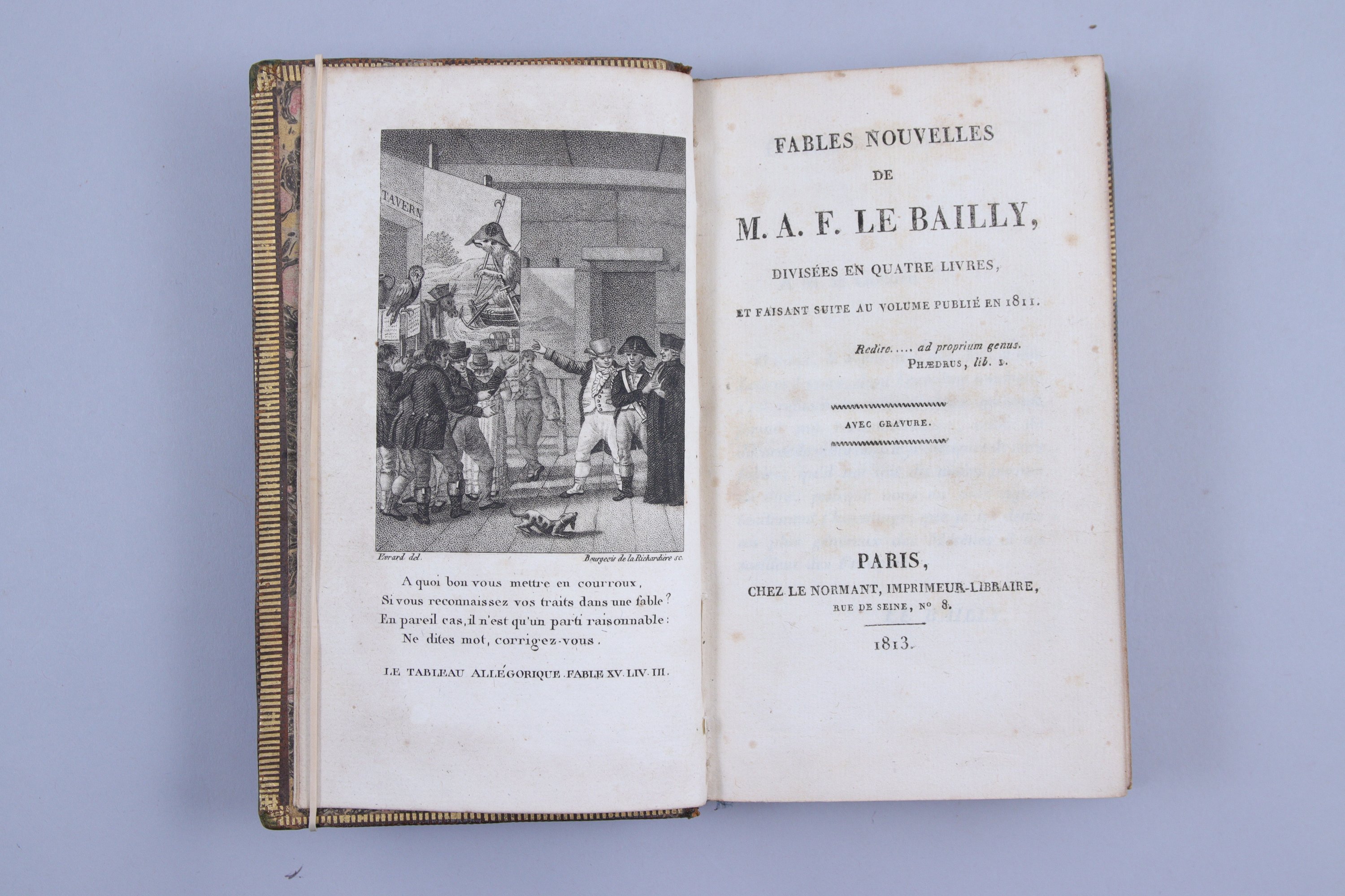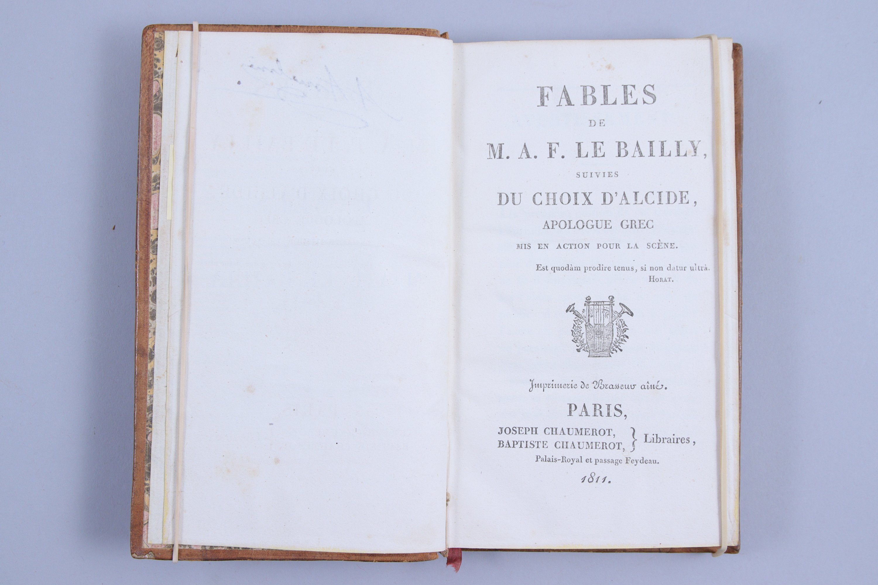 - Le Bailly. Fables, suivies du choix d'Alcide, apologue grec. Paris, Chaumerot, 1811. In-12, basane flammée du temps.