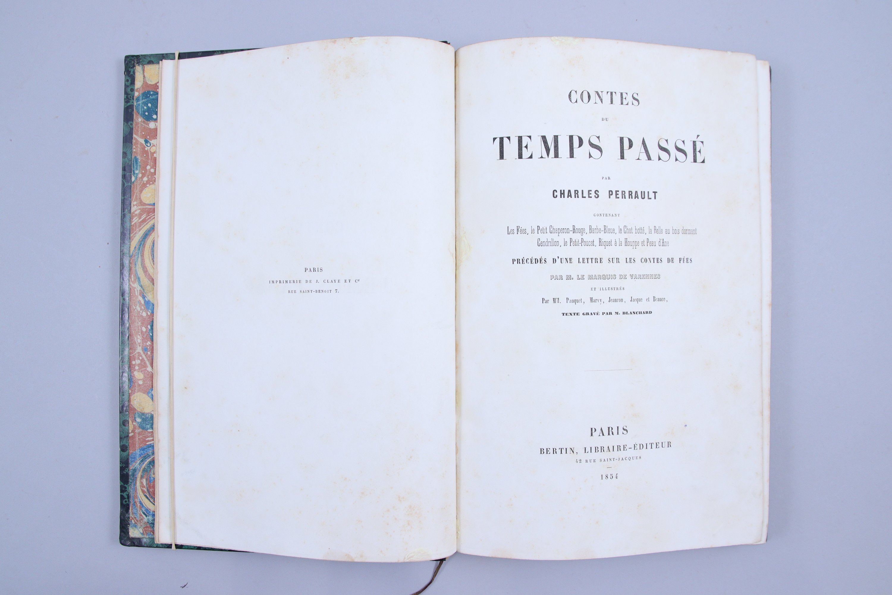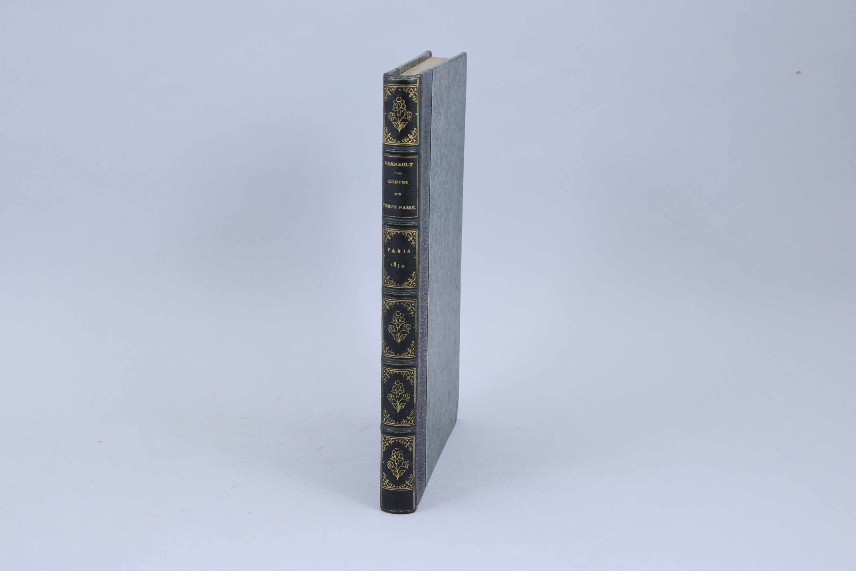 Grand in-8, 1/2 maroquin bleu-nuit, dos orné, tête dorée. Reliure du temps. (Le frontispice général et les frontispices du Petit Chaperon Rouge et de Peau d'Ane manquent. Rousseurs.)