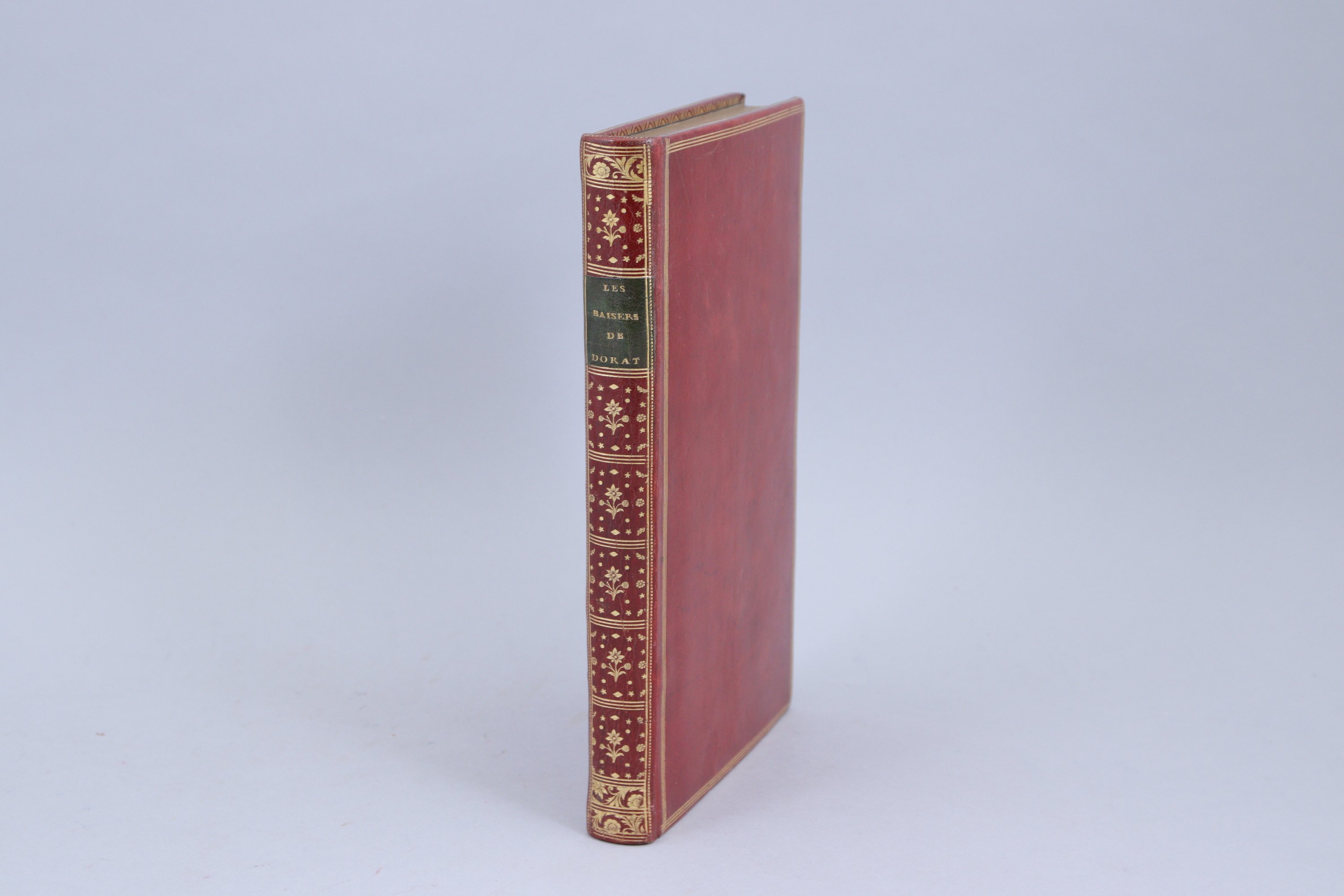 Grand in-8 (Dimensions intérieures : 231 X142 mm), 119 et 47 pages. Plein maroquin rouge, triple filet d'encadrement ; dos sans nerf très orné ; pièce de titre de maroquin vert ; filet droit sur les coupes ; roulette intérieure. Toutes tranches dorées. Reliure du temps.