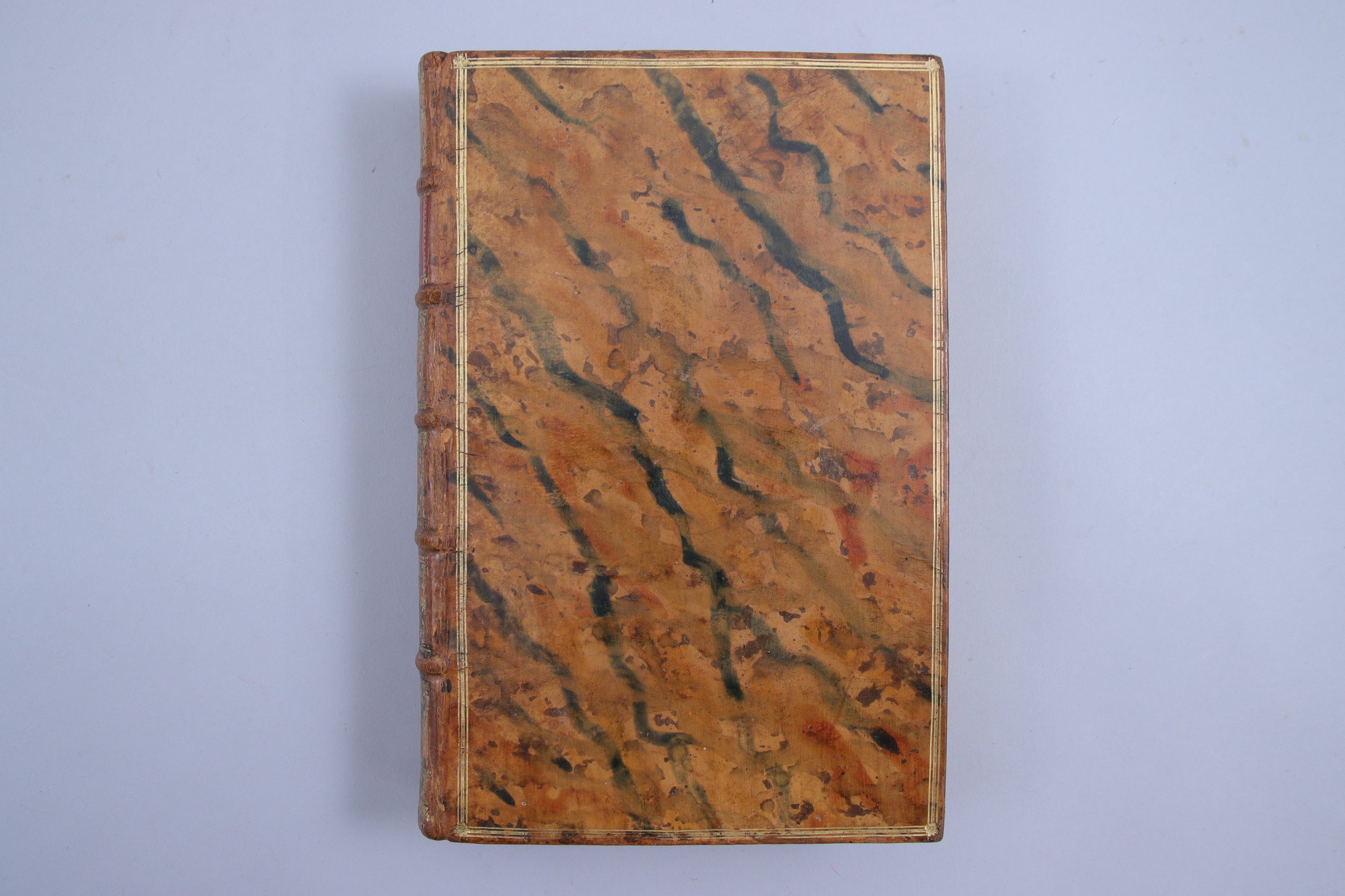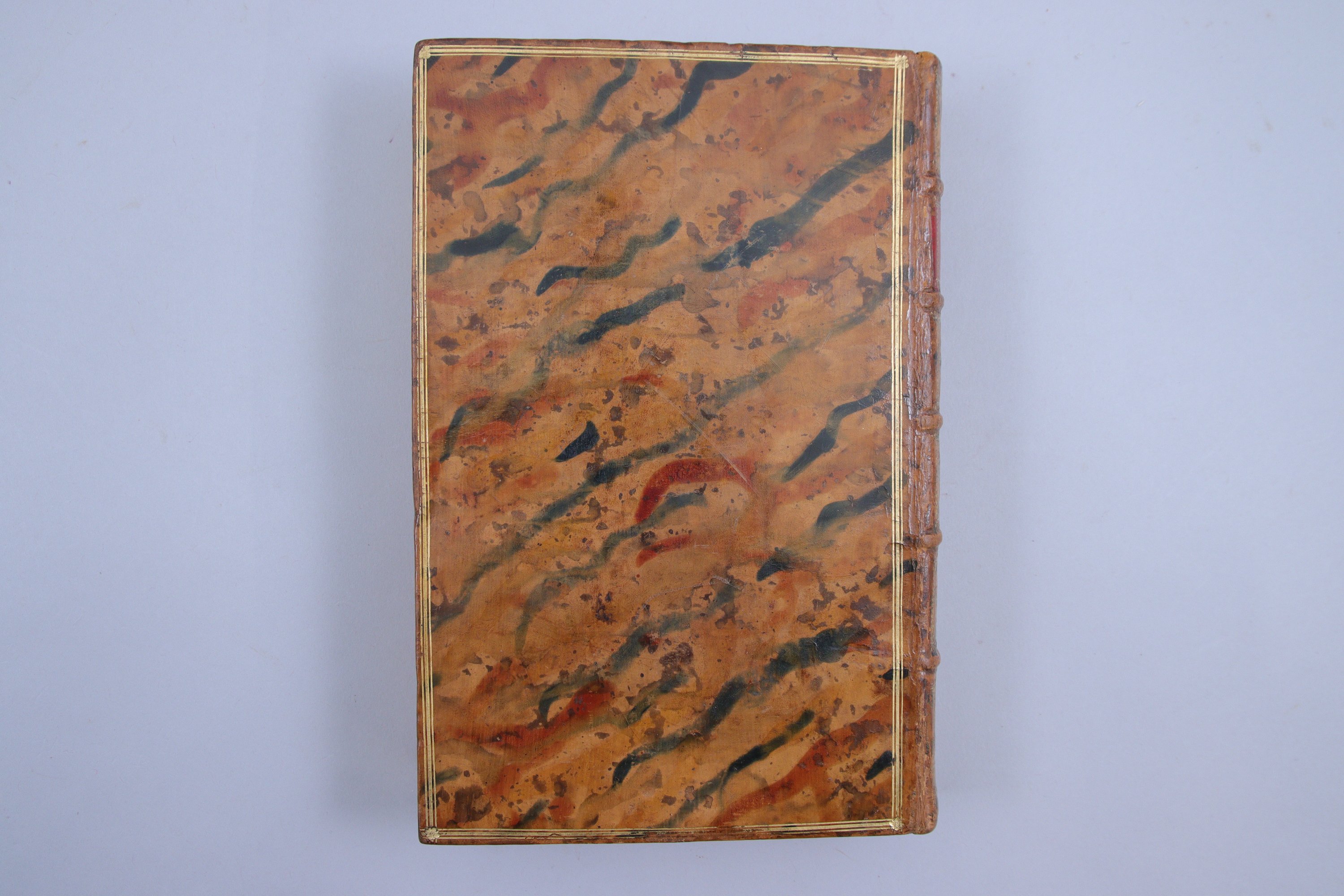 Grand in-8. (Dimensions intérieures : 221 X 141 mm). IV et 280 pages ; XVI et 104 pages. Plein veau porphyre, triple encadrement de filets dorés, petit fer à motif floral aux intersections ; dos orné du fer à la grenade ; pièce de titre de maroquin rouge. Double filet sur les coupes, roulette intérieure. Toutes tranches dorées.