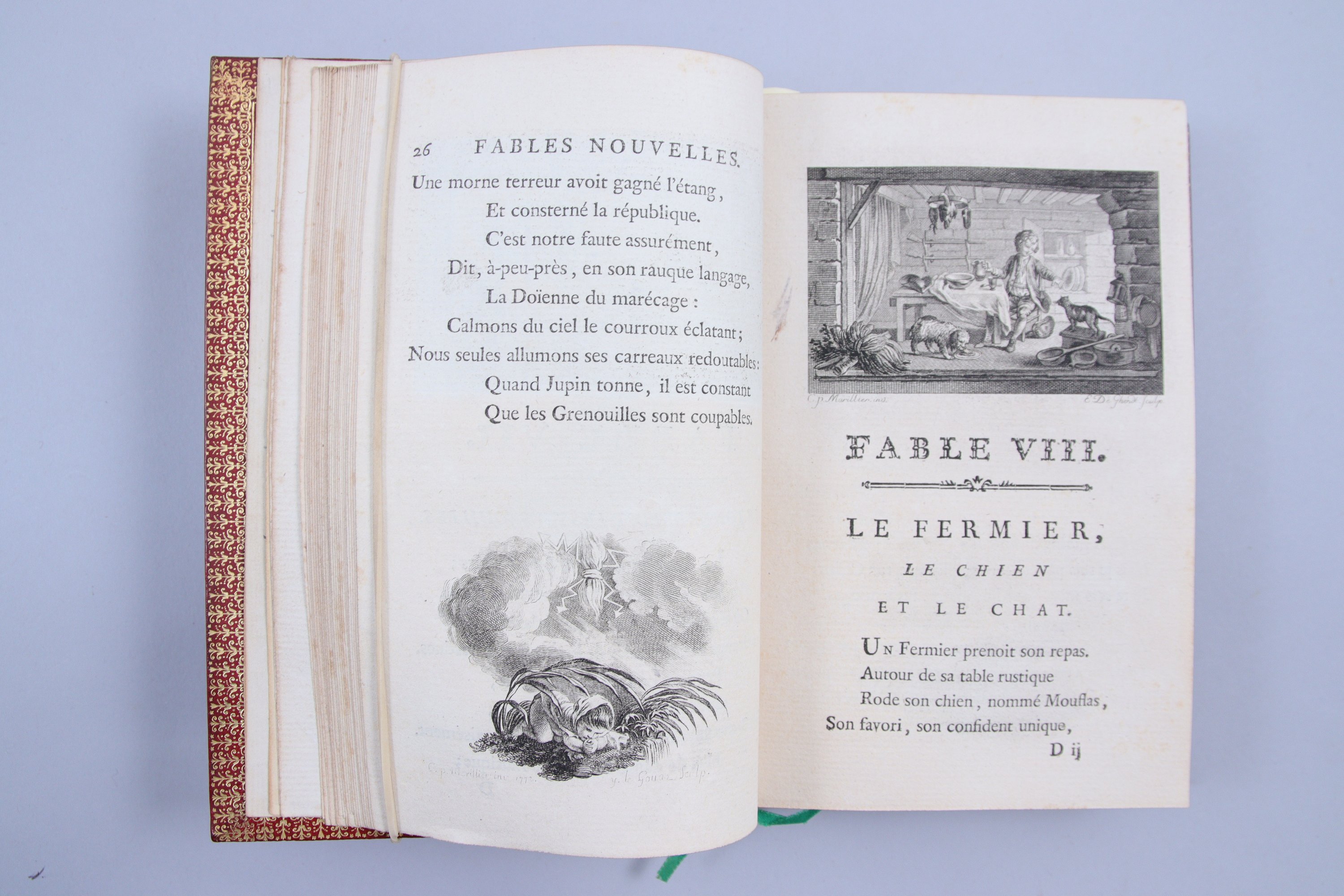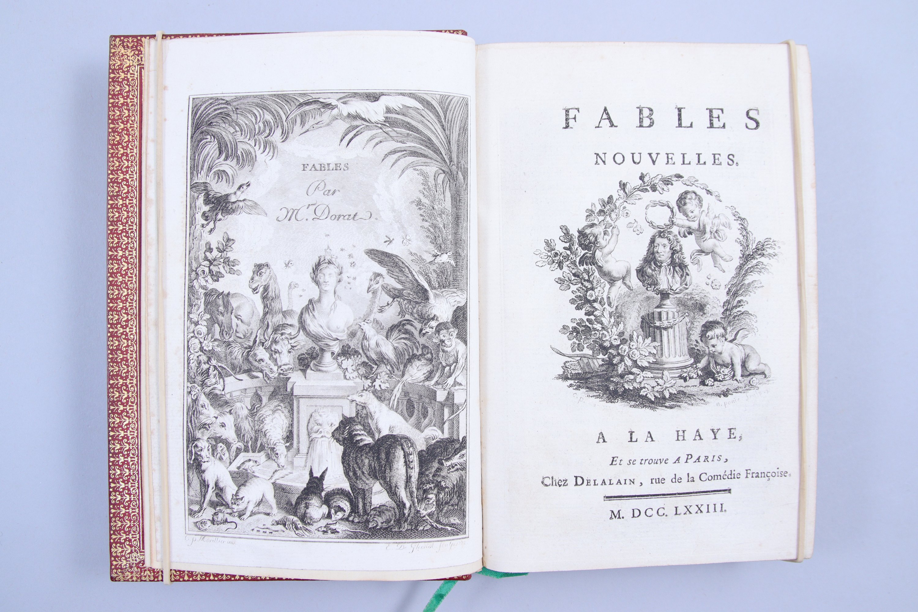 Exemplaire sur vergé fort. 2 frontispices, 1 figure hors-texte de Marillier gravée par Delaunay, 99 vignettes et 99 culs-de lampe de Marillier, gravés par divers artistes.