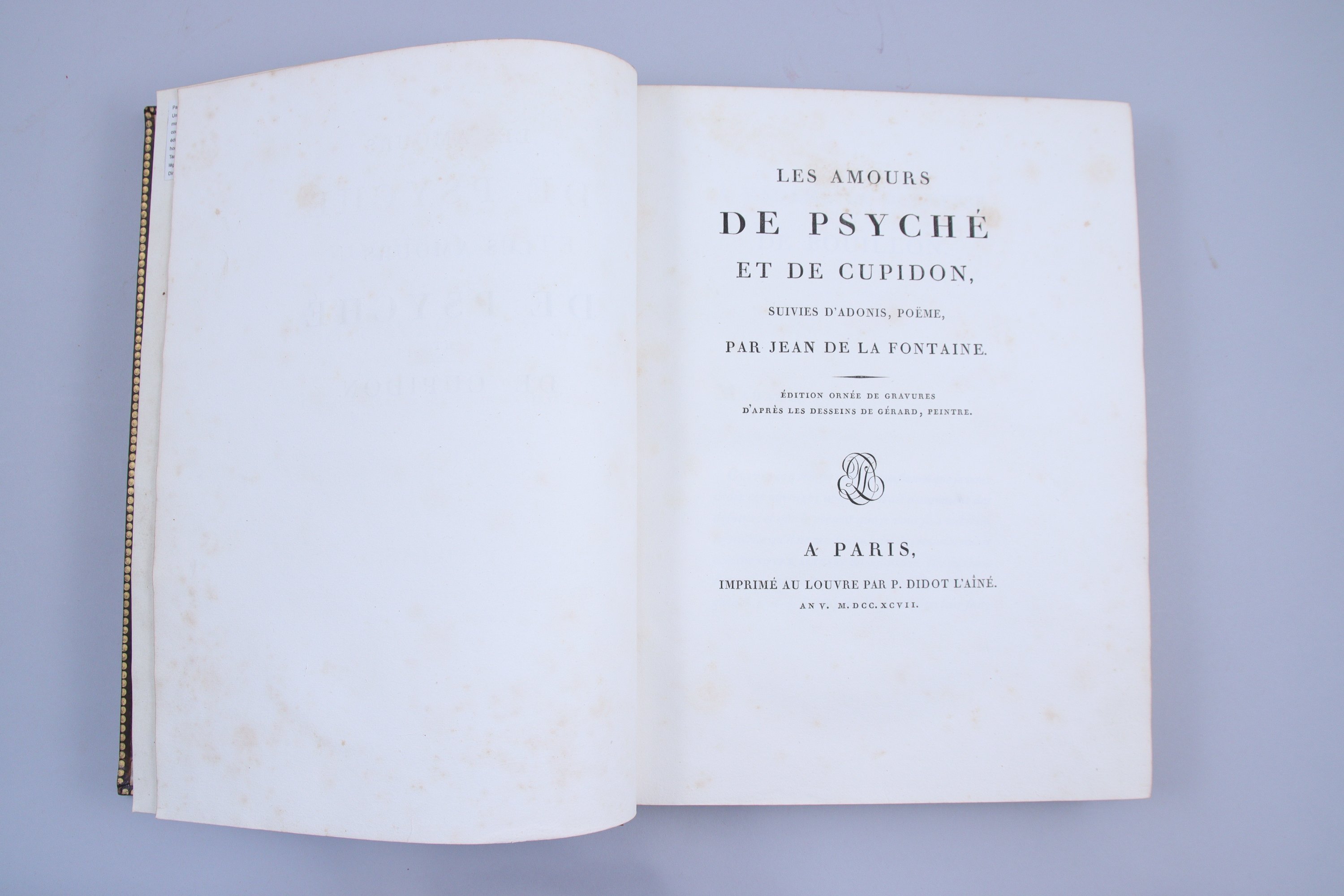 Les Amours de Psyché et de Cupidon, suivis d'Adonis, Poëme. Edition ornée de gravures d'après les desseins de Gérard, Peintre.