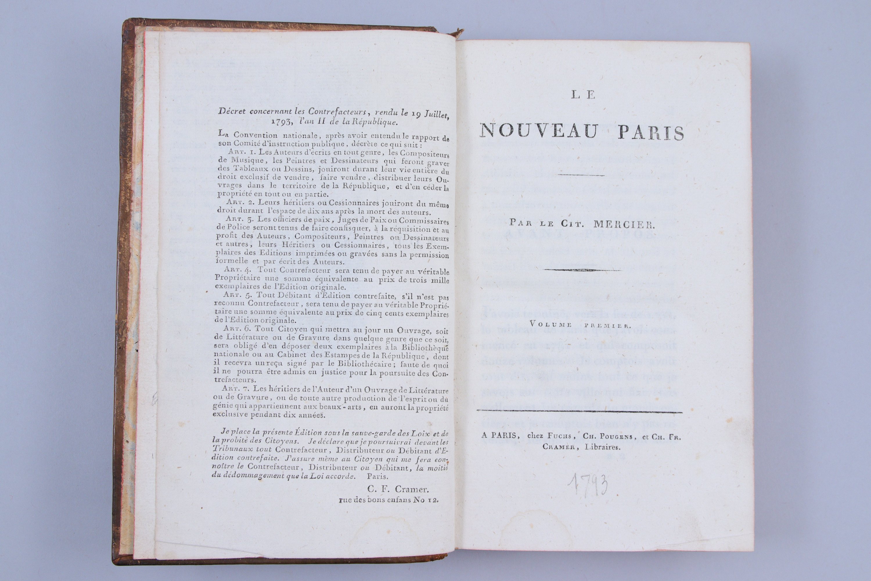 A Paris, chez Fuchs, Ch. Pougens, et Ch. Fr. Cramer. S.d. (1798-1799).