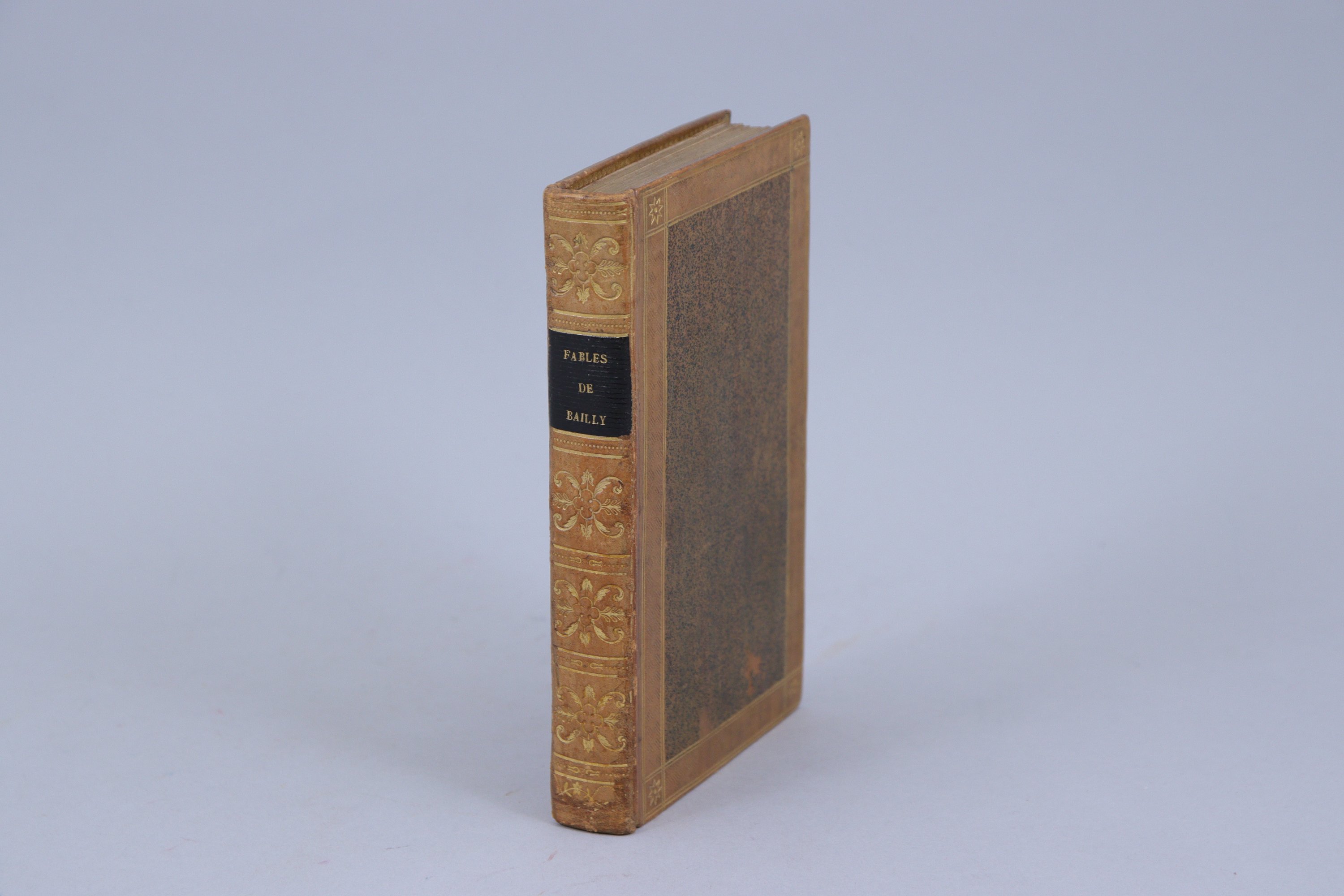 Charmante reliure du temps en plein veau blond, 2 doubles filets droits et 1 large roulette à froid encadrent des plats finement mouchetés ; dos sans nerf très orné ; filet sur les coupes ; roulette intérieure ; toutes tranches dorées.