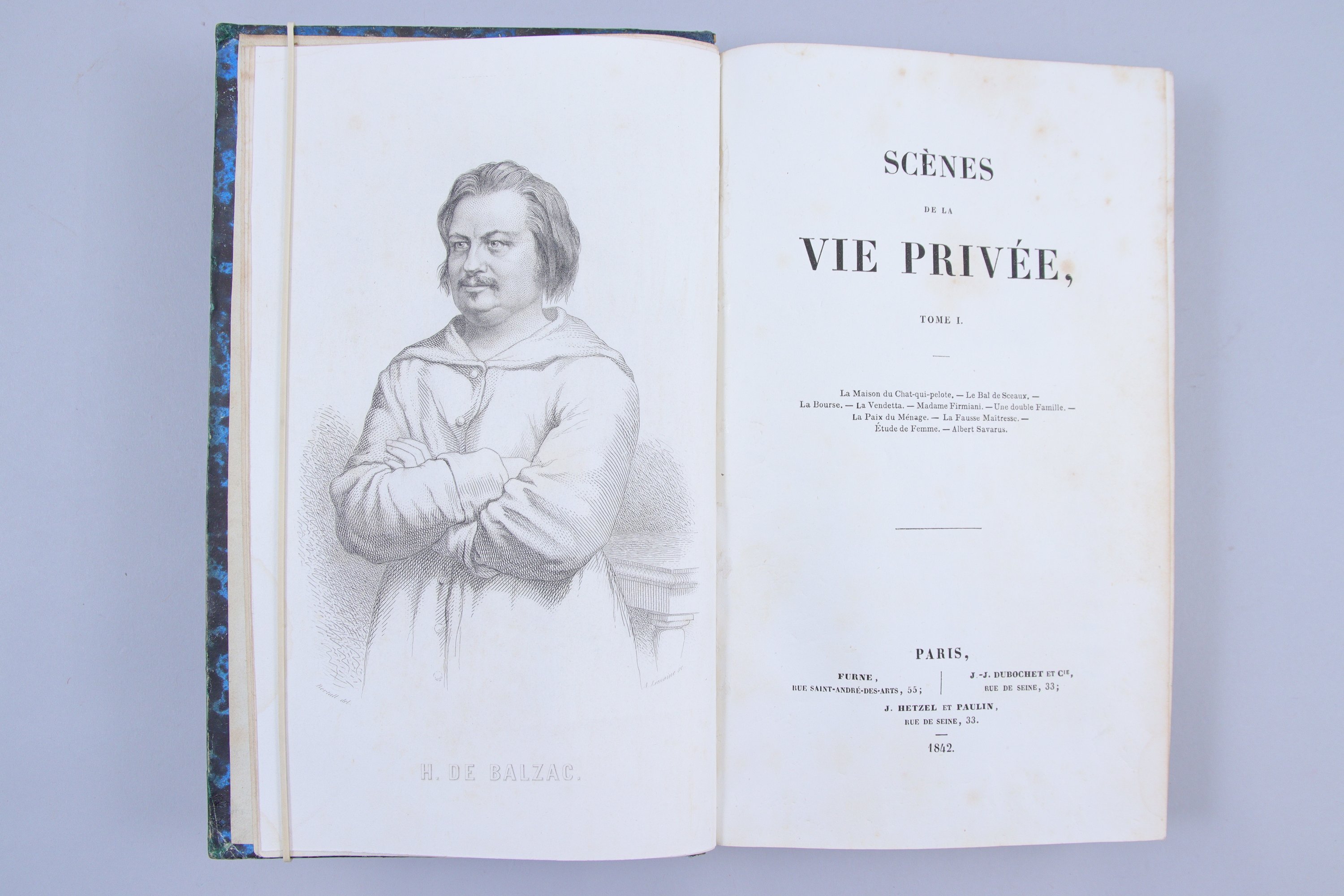 Première édition de La Comédie Humaine, revue et remaniée par Balzac pour les tomes I à XVII. Elle contient de nombreuses oeuvres en édition originale, parmi lesquelles Albert Savarus, La fausse Maîtresse, Autre étude de Femme, la dernière partie des Illusions perdues, la dernière partie de Splendeurs et misères des Courtisanes, etc... etc... Les tomes XVIII, XIX à XX sont publiés après la mort de Balzac, sans avoir été revus.