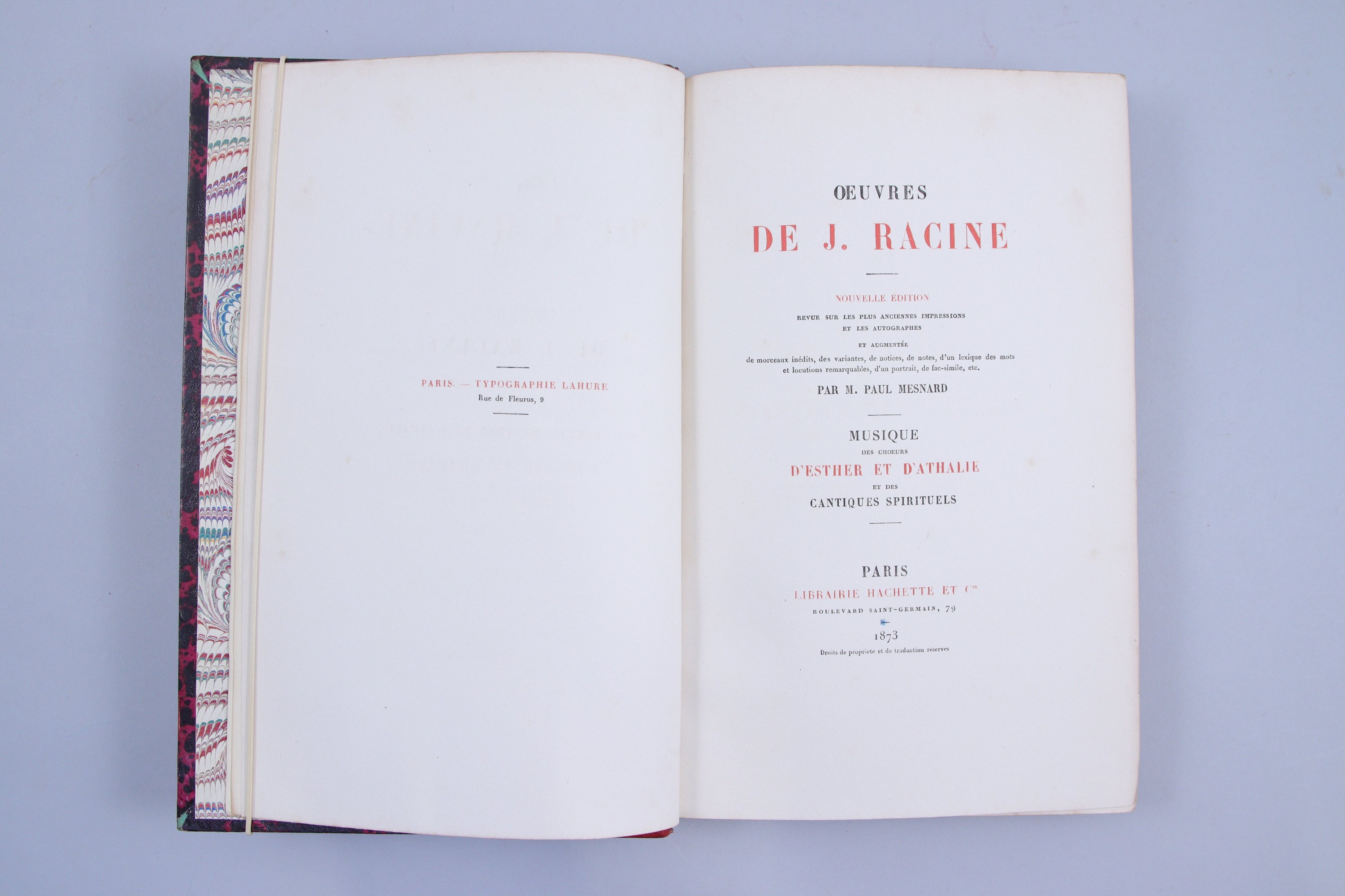 Réimpression des partitions publiées en 1689. Fait partie de l'édition des Oeuvres de Racine publiées par Hachette de 1865 à 1873.
