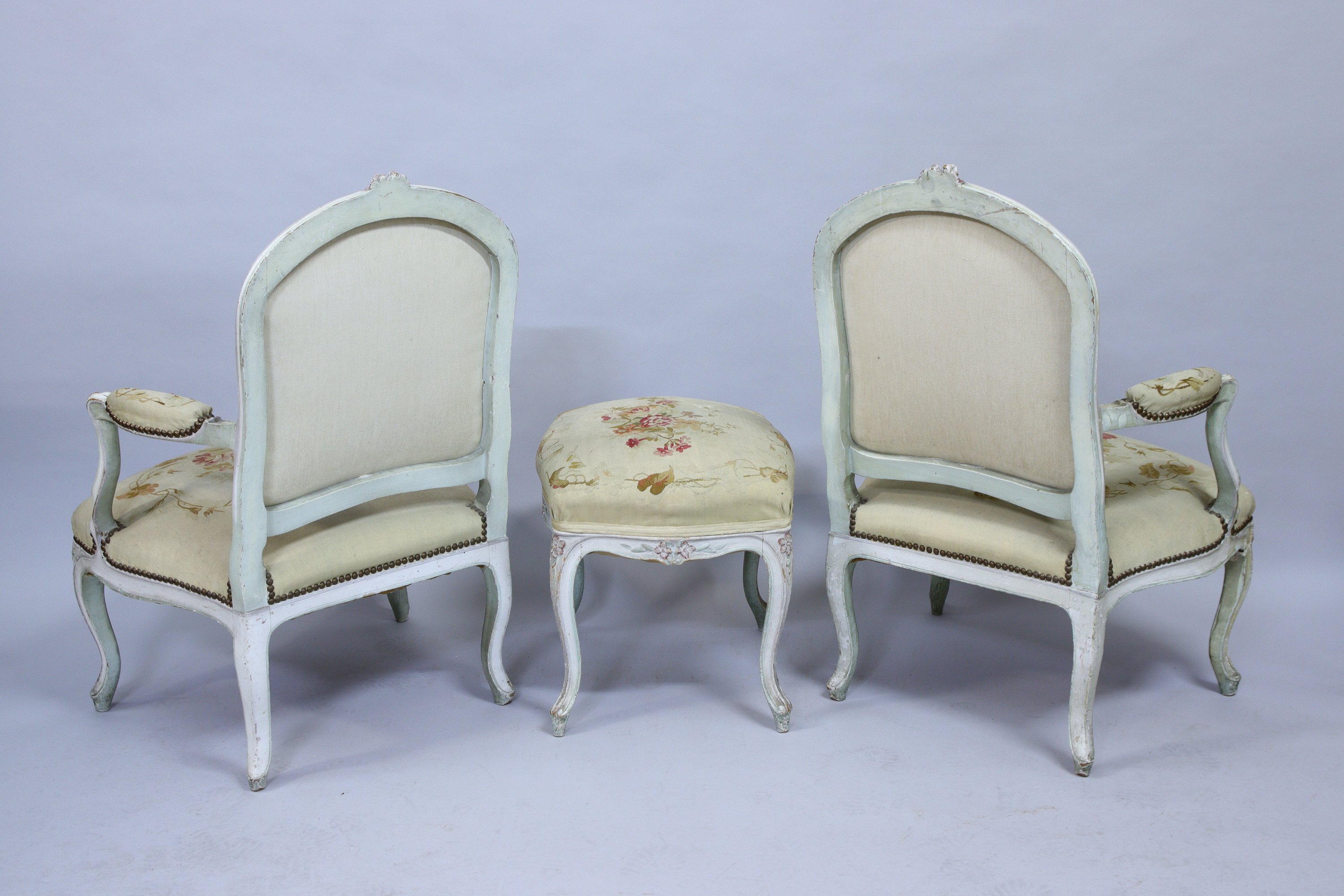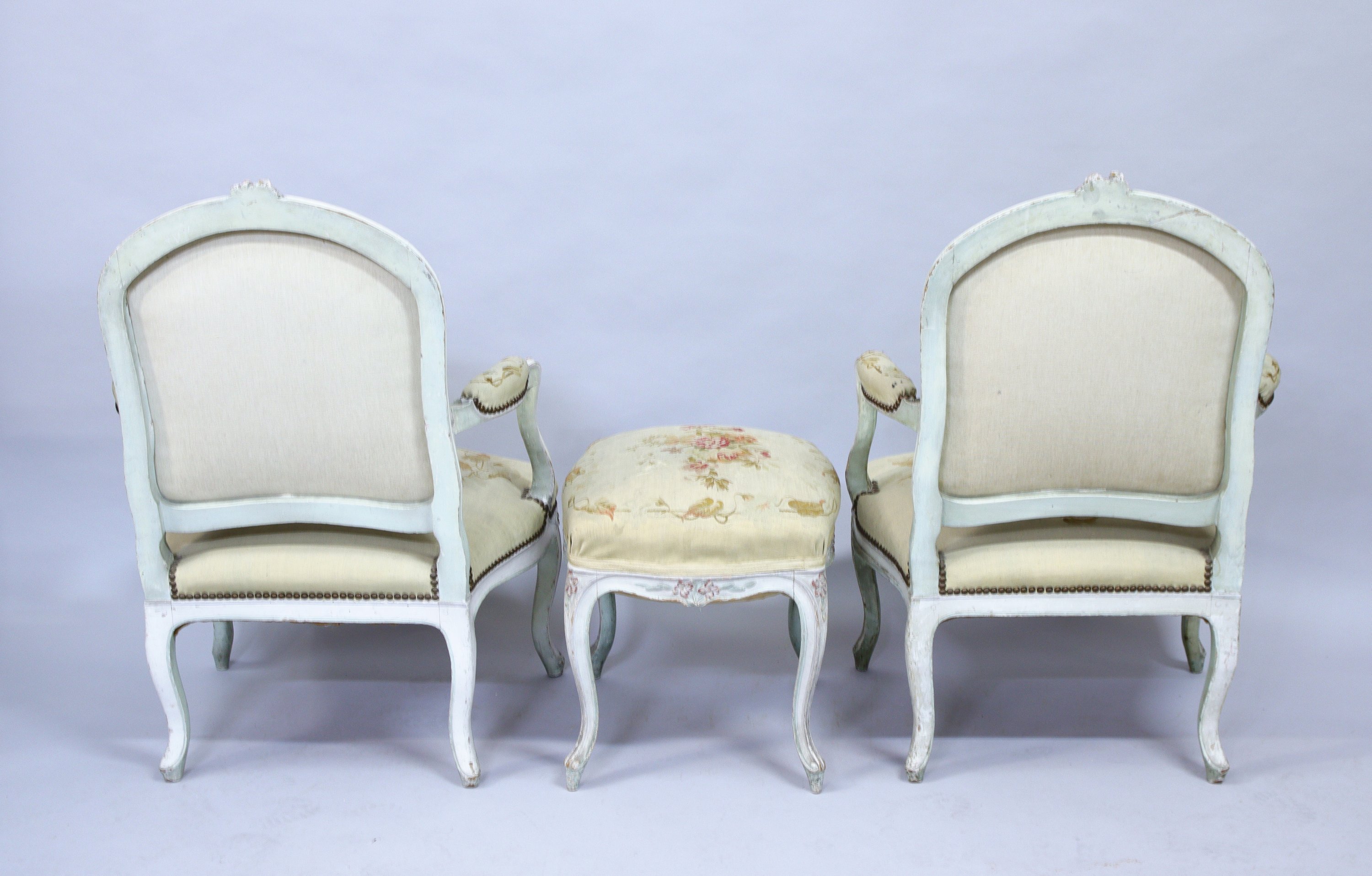 Paire de fauteuils à dossier à la Reine et un tabouret