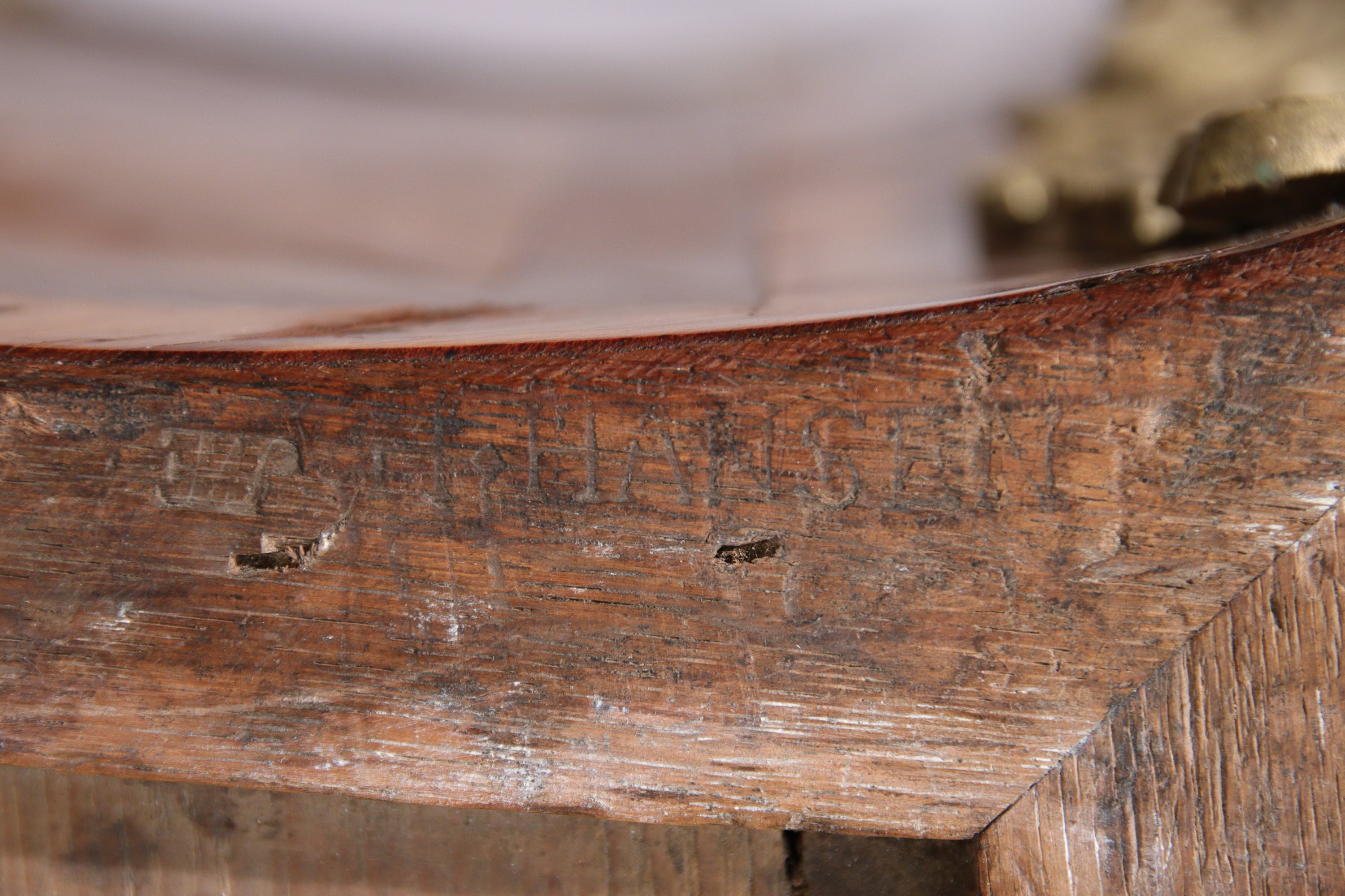 Estampille de la Jurande des maîtres ébénistes et de Hubert Hansen, reçu maître en 1747 et installé rue de Charenton à Paris.