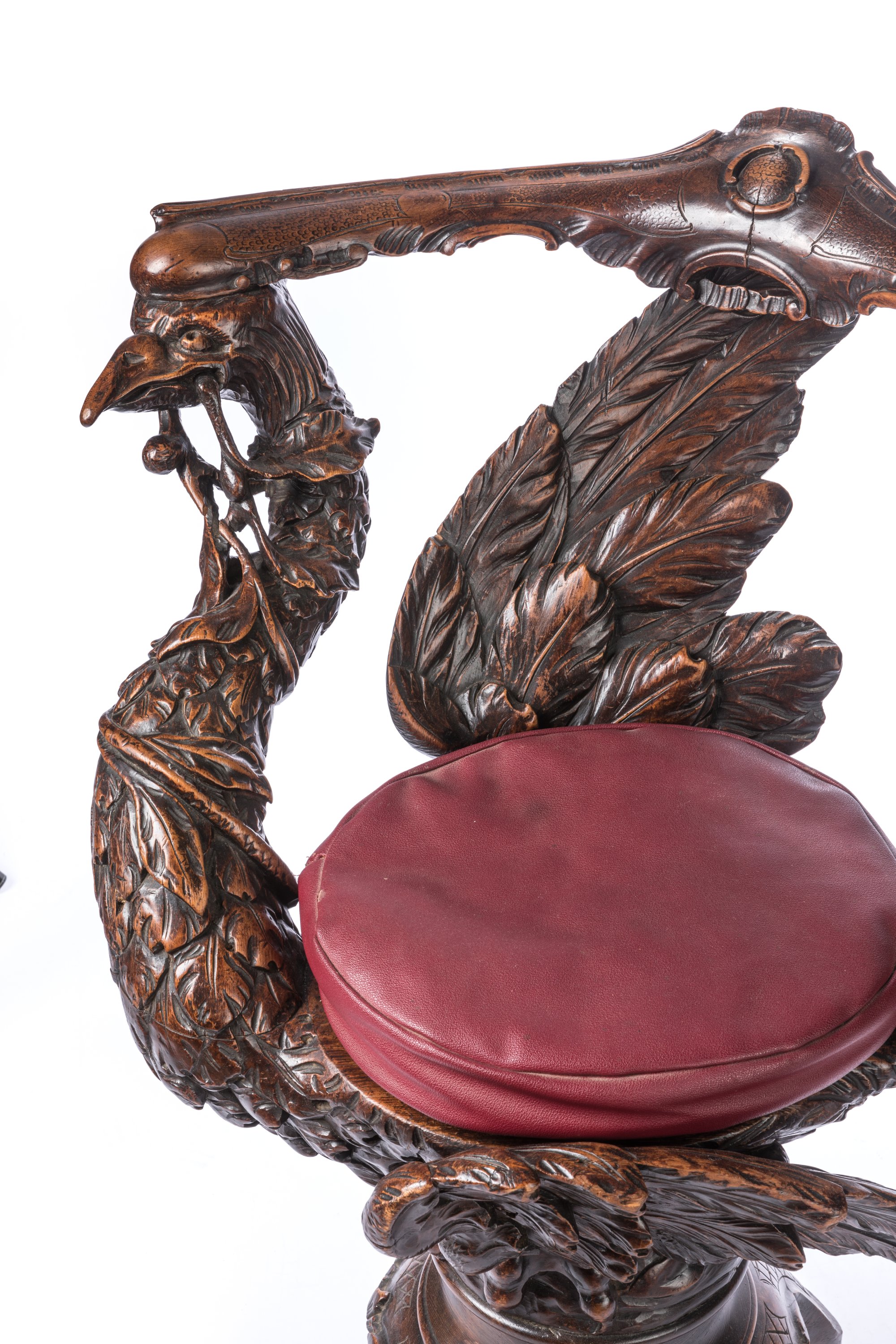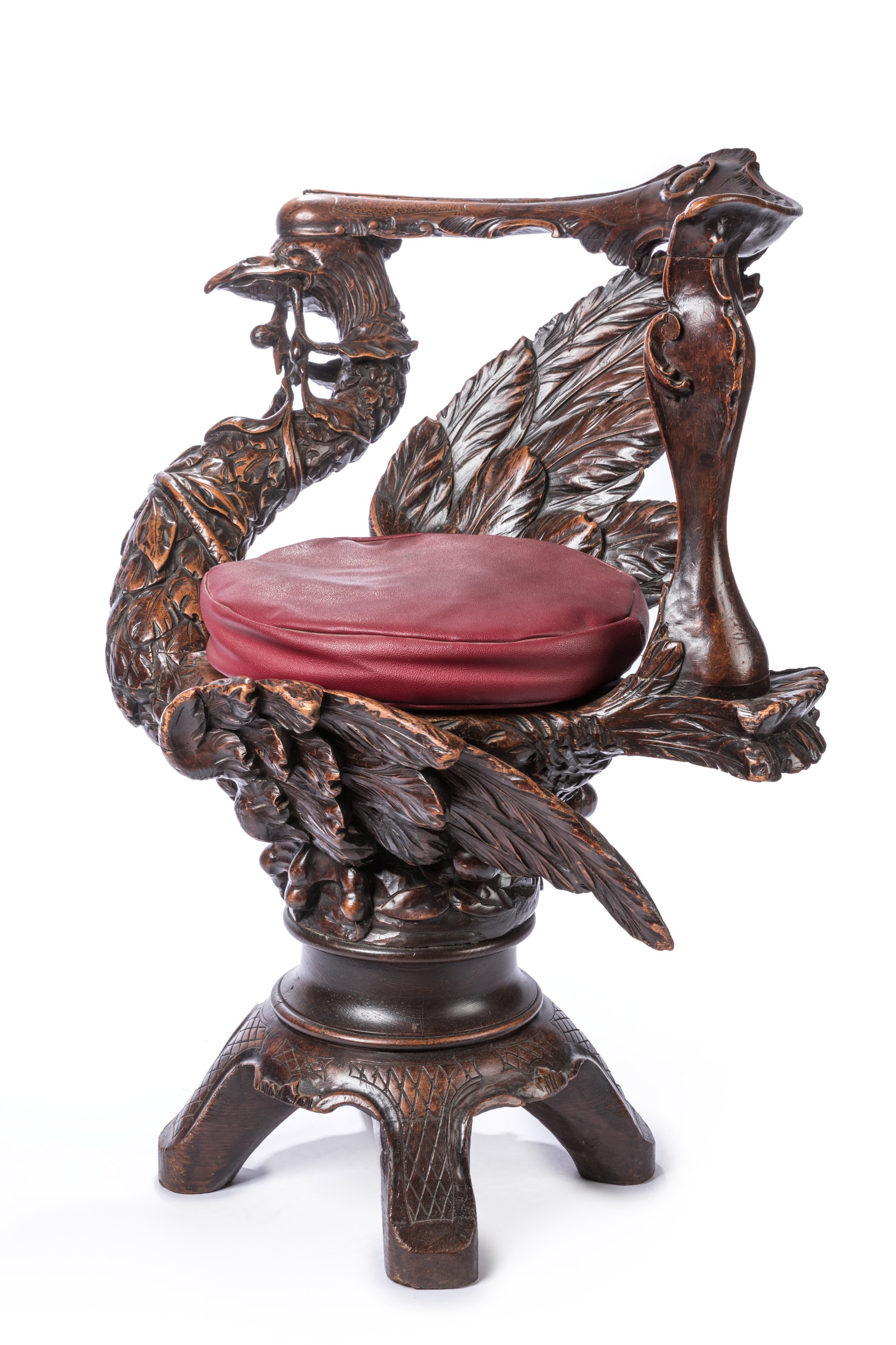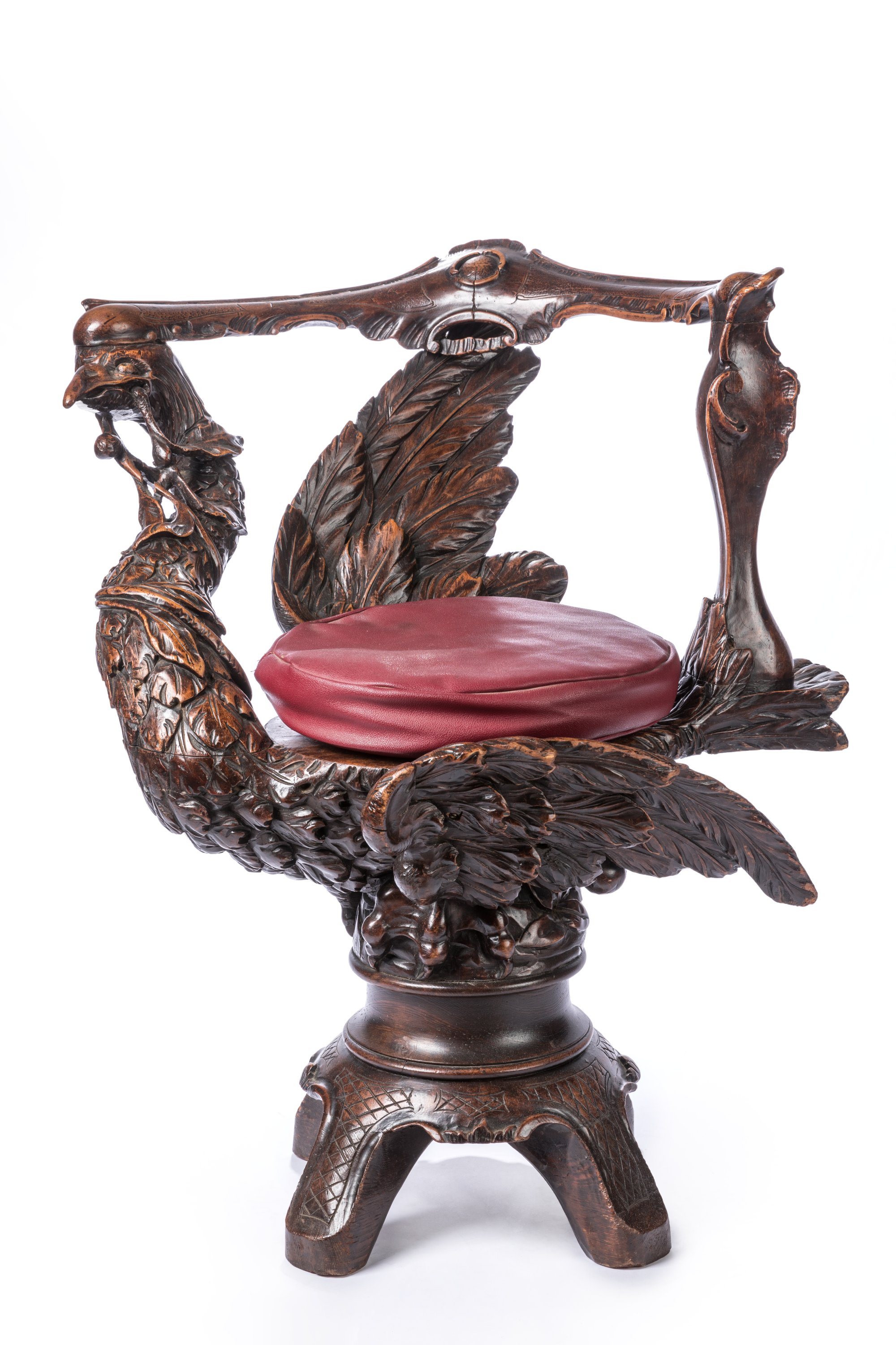 A spectacular late 19th century, presumably Italian, phoenix-shaped wooden seat.