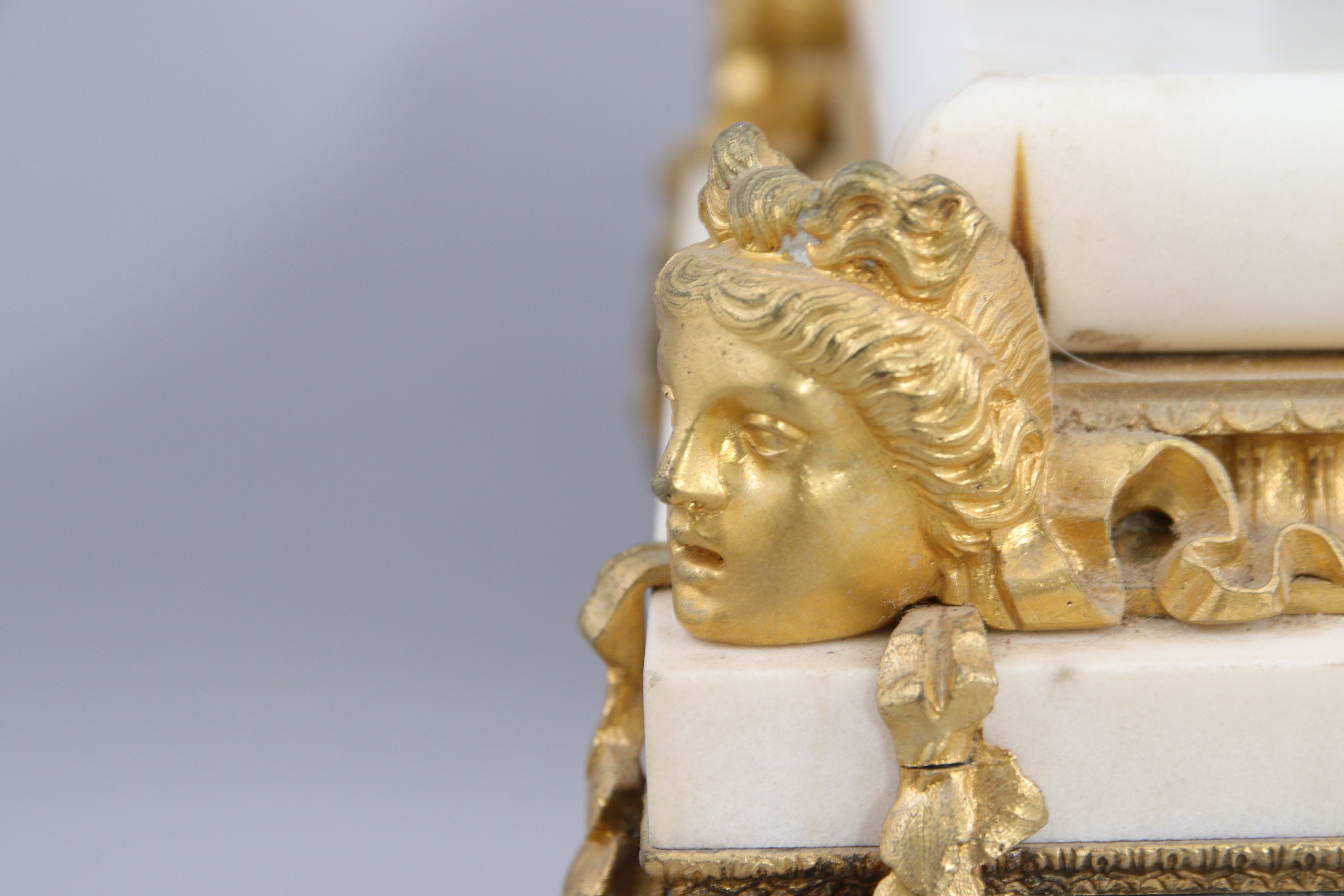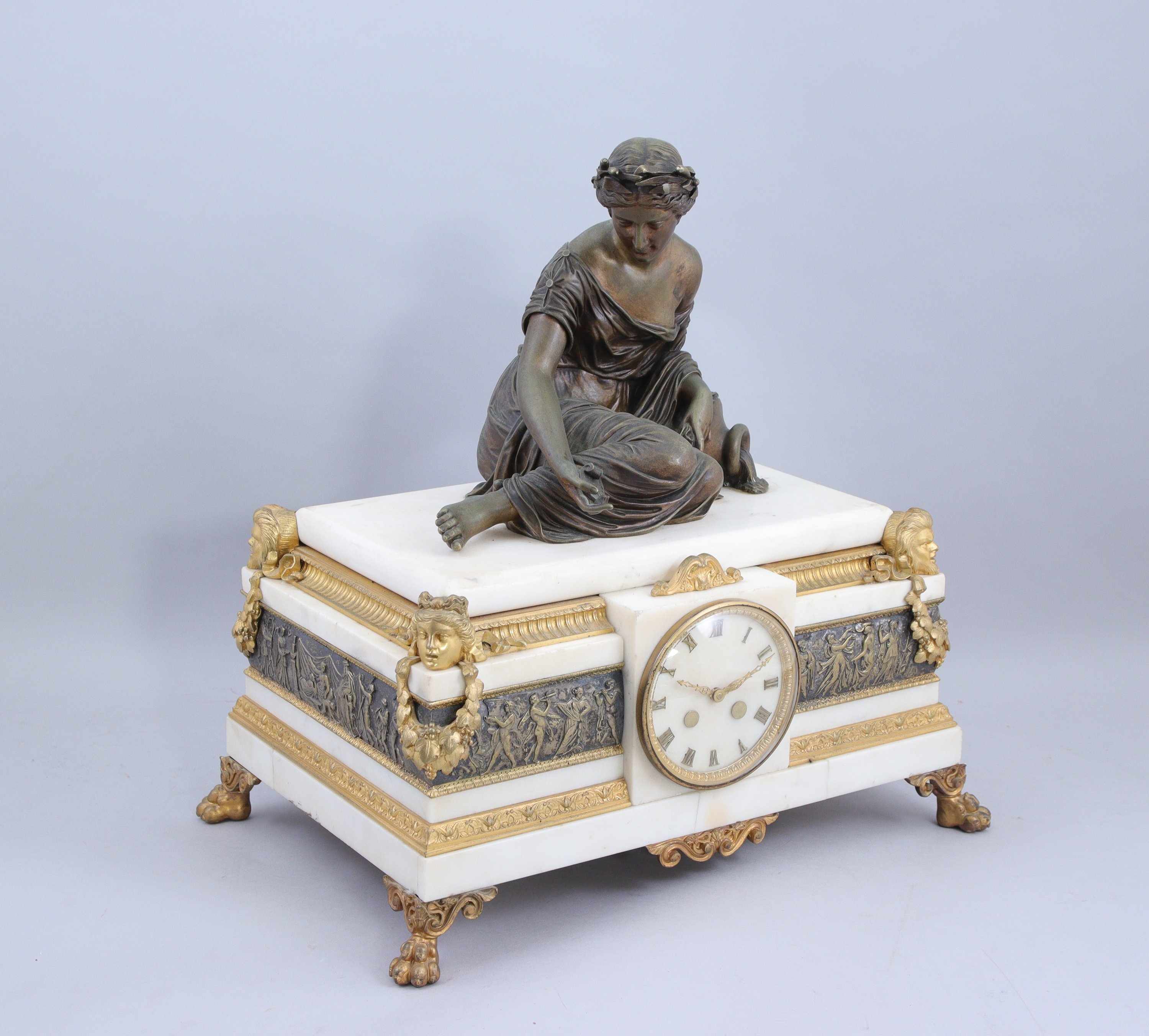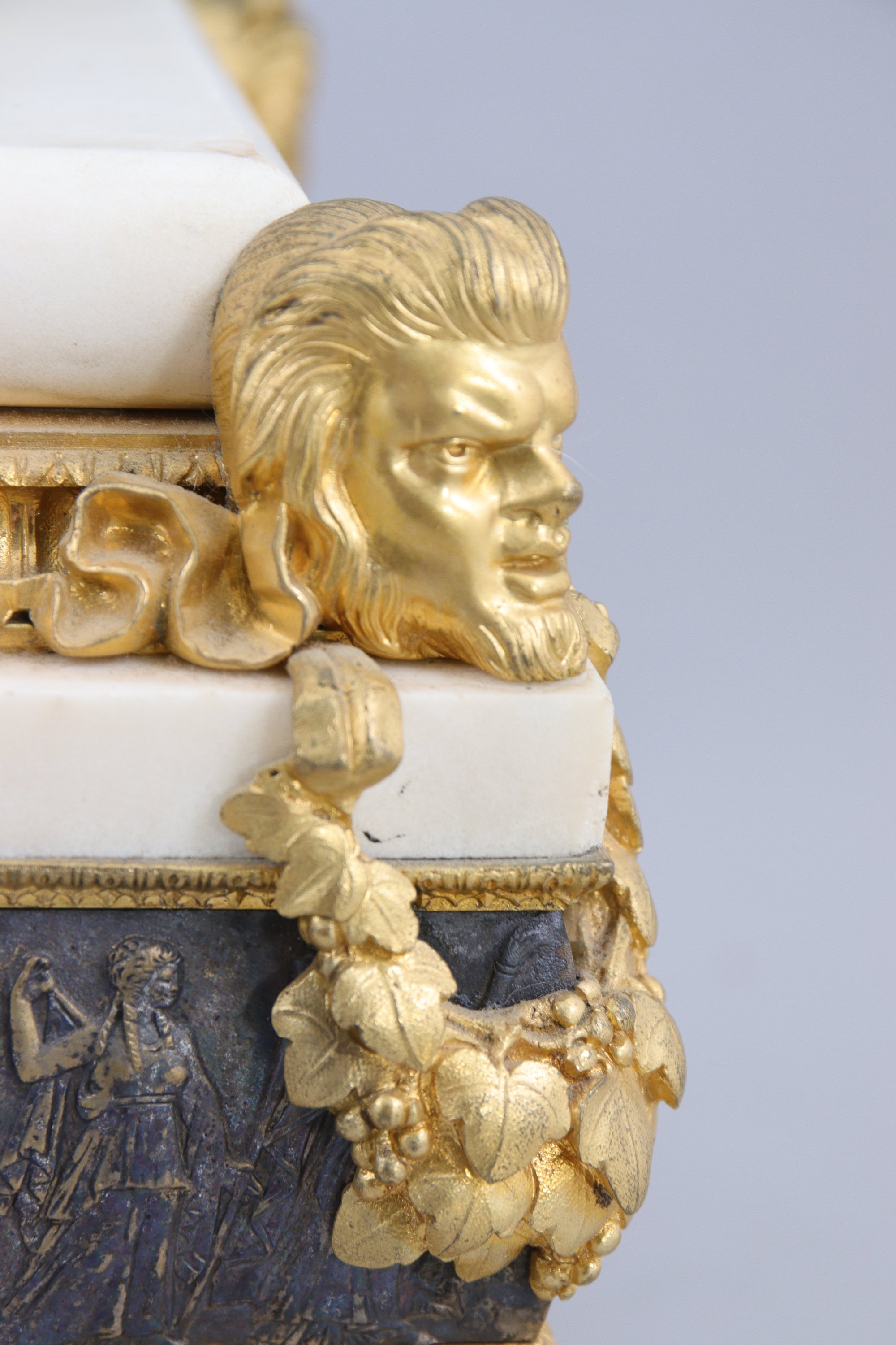Garniture de cheminée en bronze patiné et doré et marbre blanc