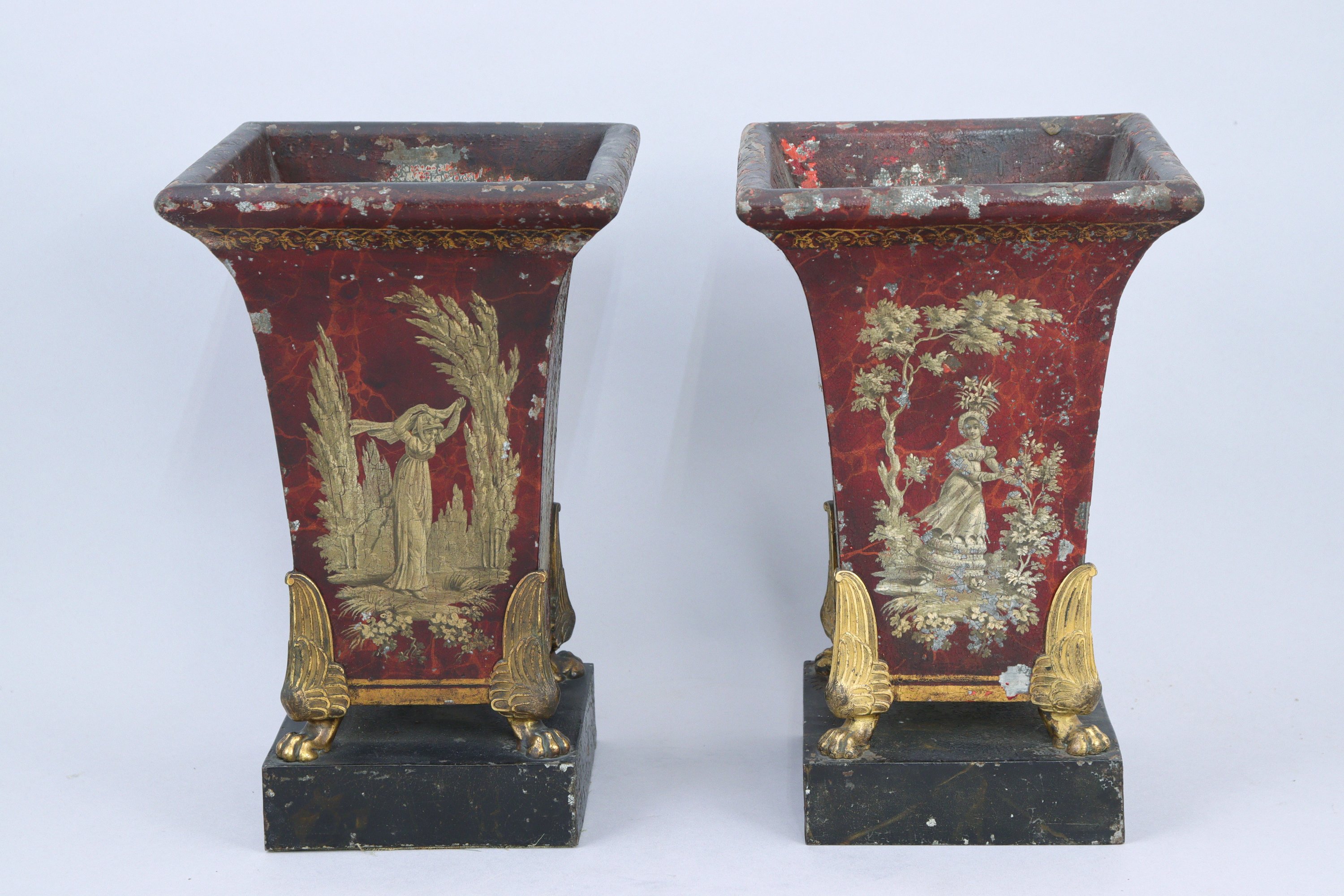 Paires de vases cornet de forme carrée en tôle peinte,...