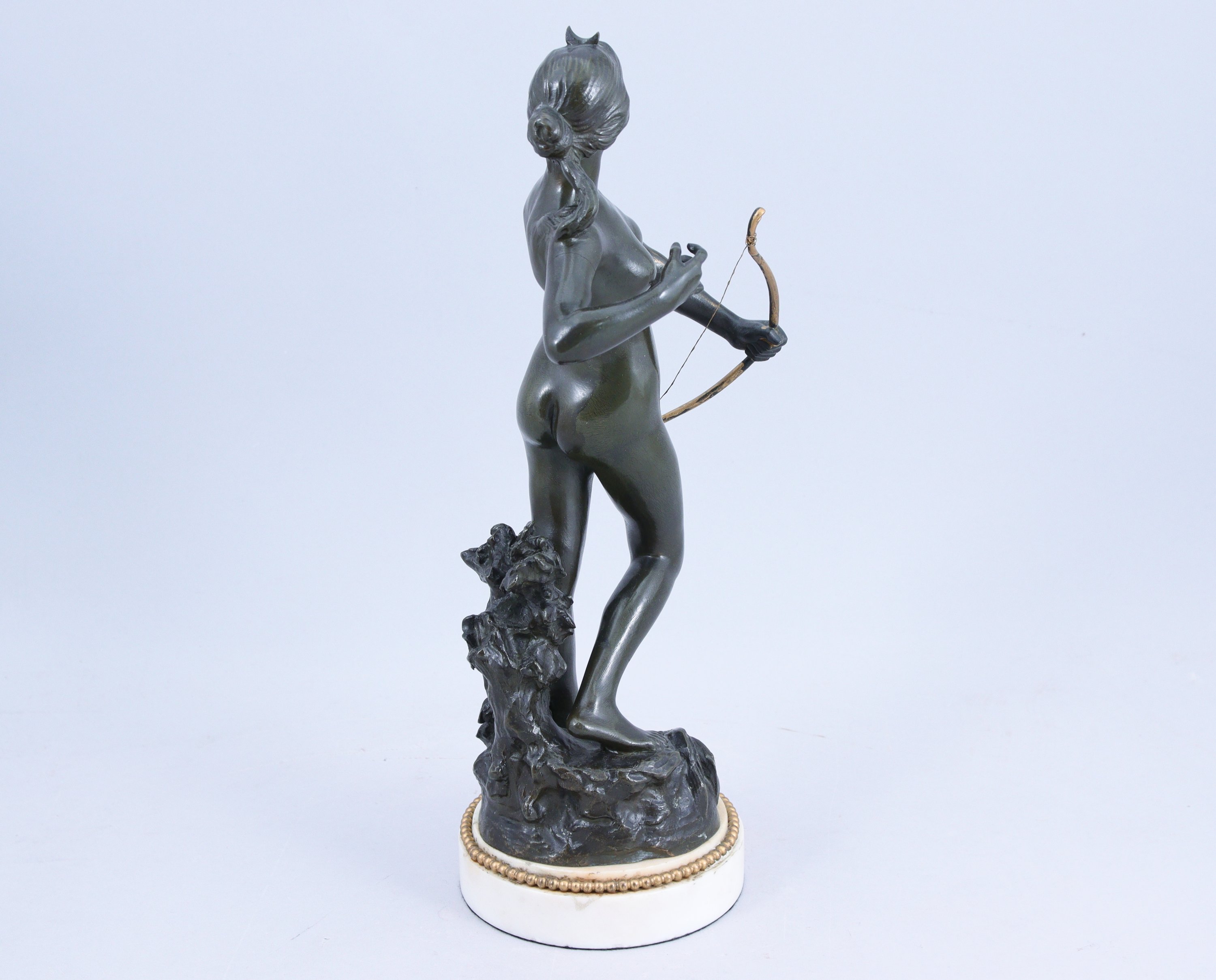 Socle rond en marbre de Carrare orné d'un filet de perles en bronze doré.