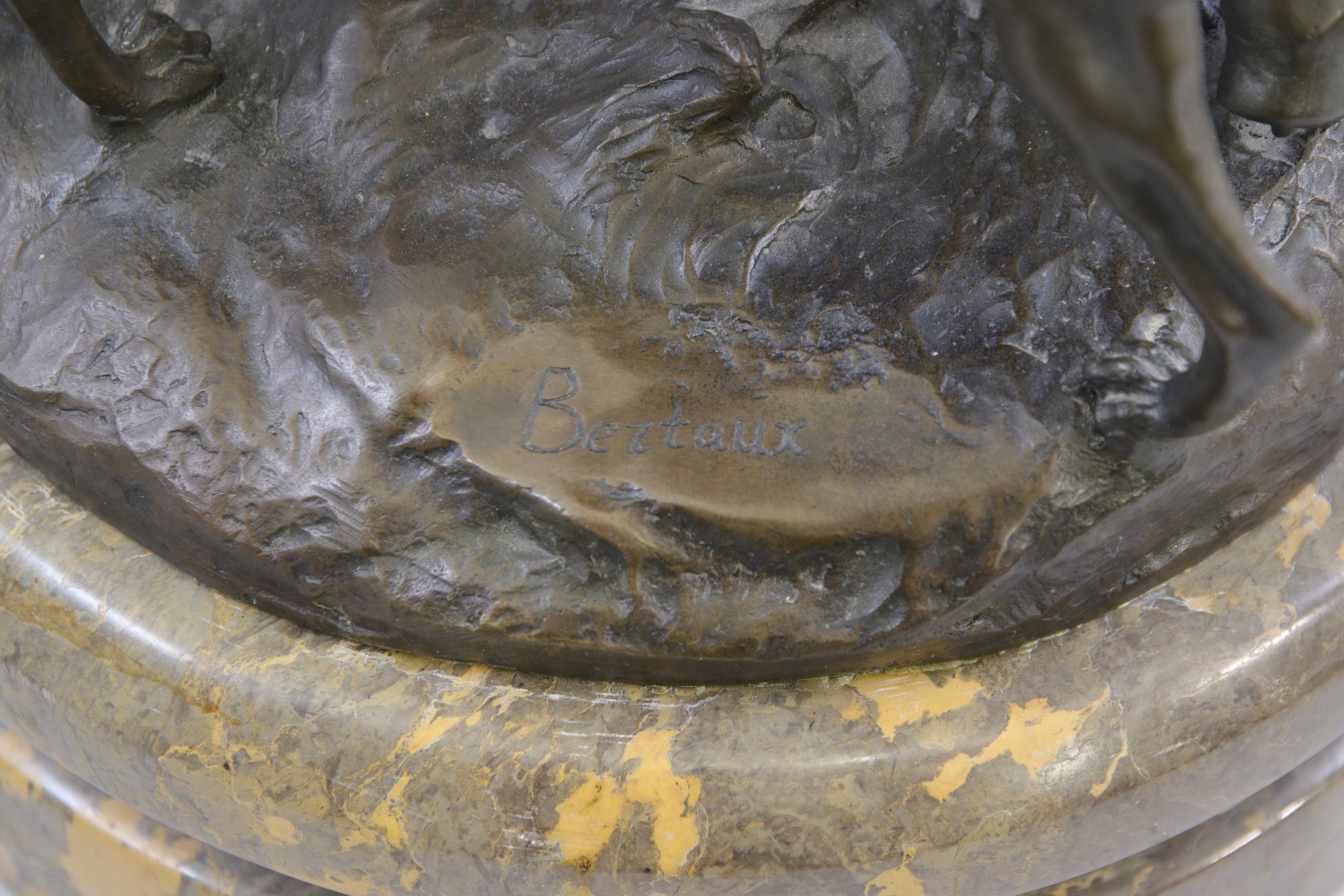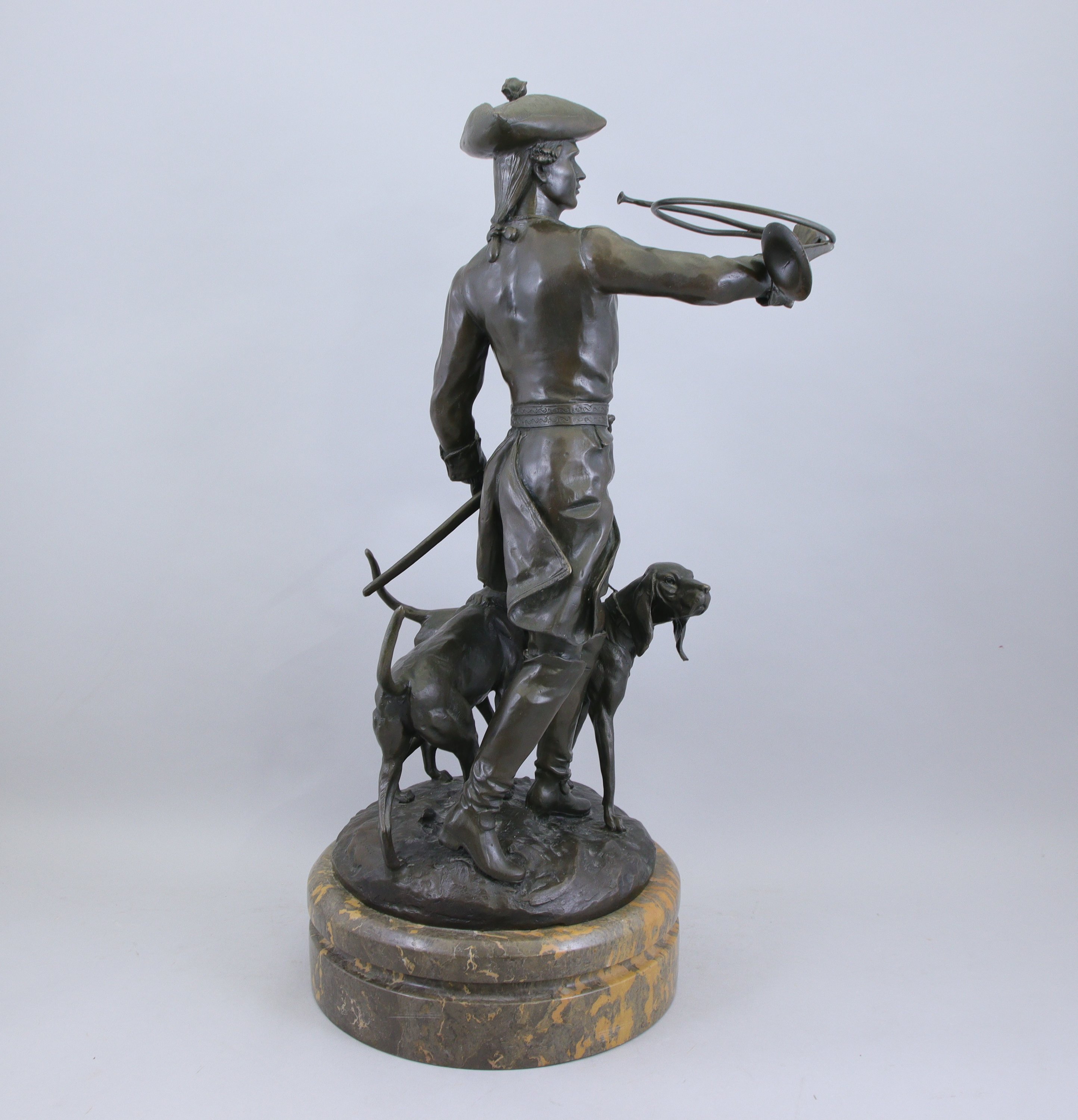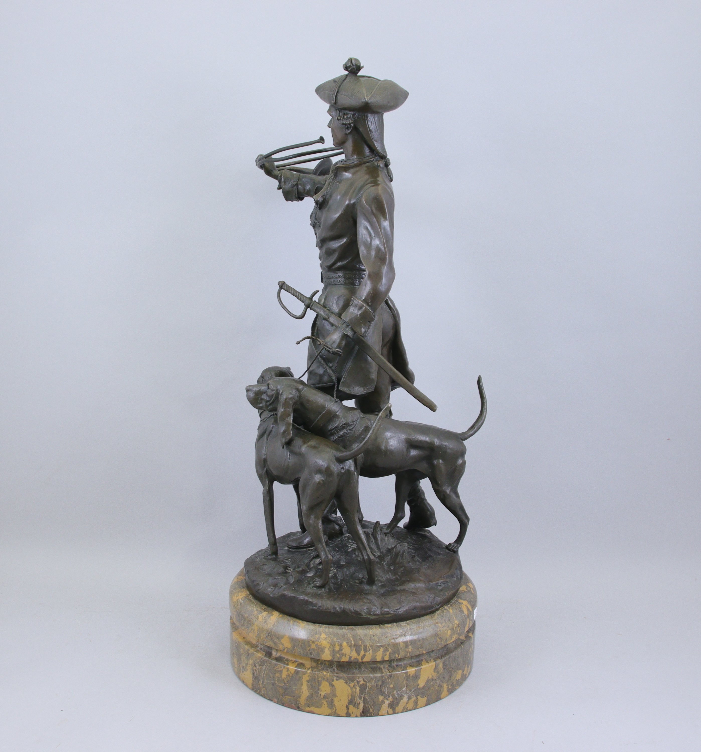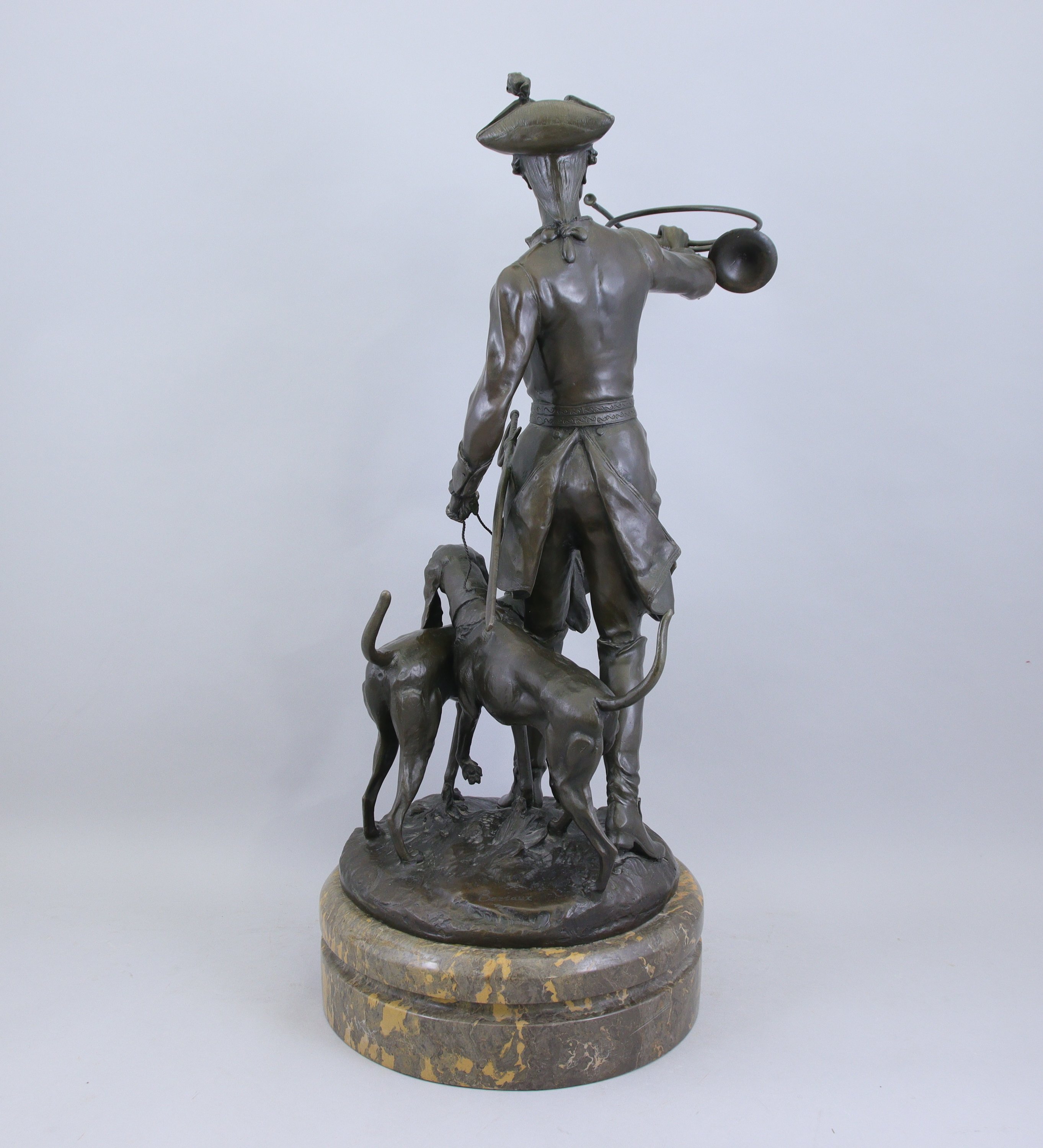 Bronze à patine brune et socle de marbre. Signé sur la terrasse.
