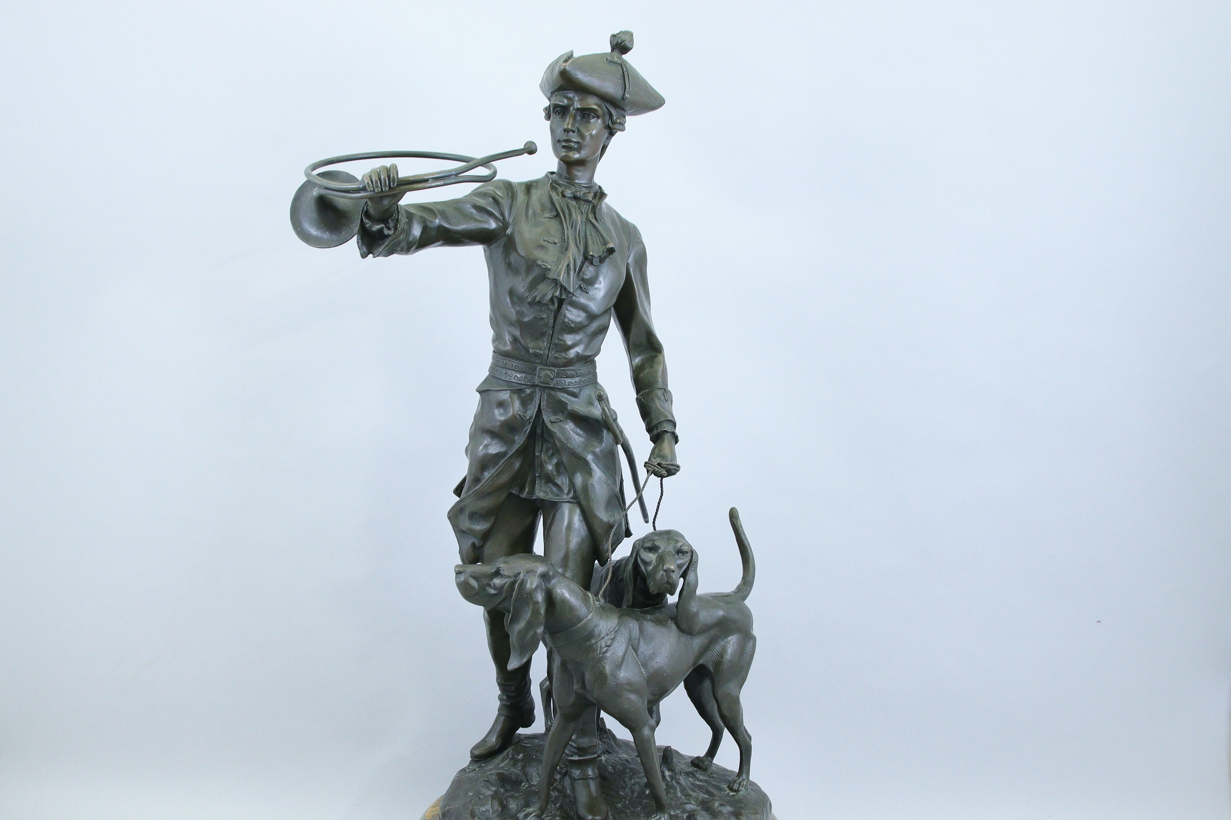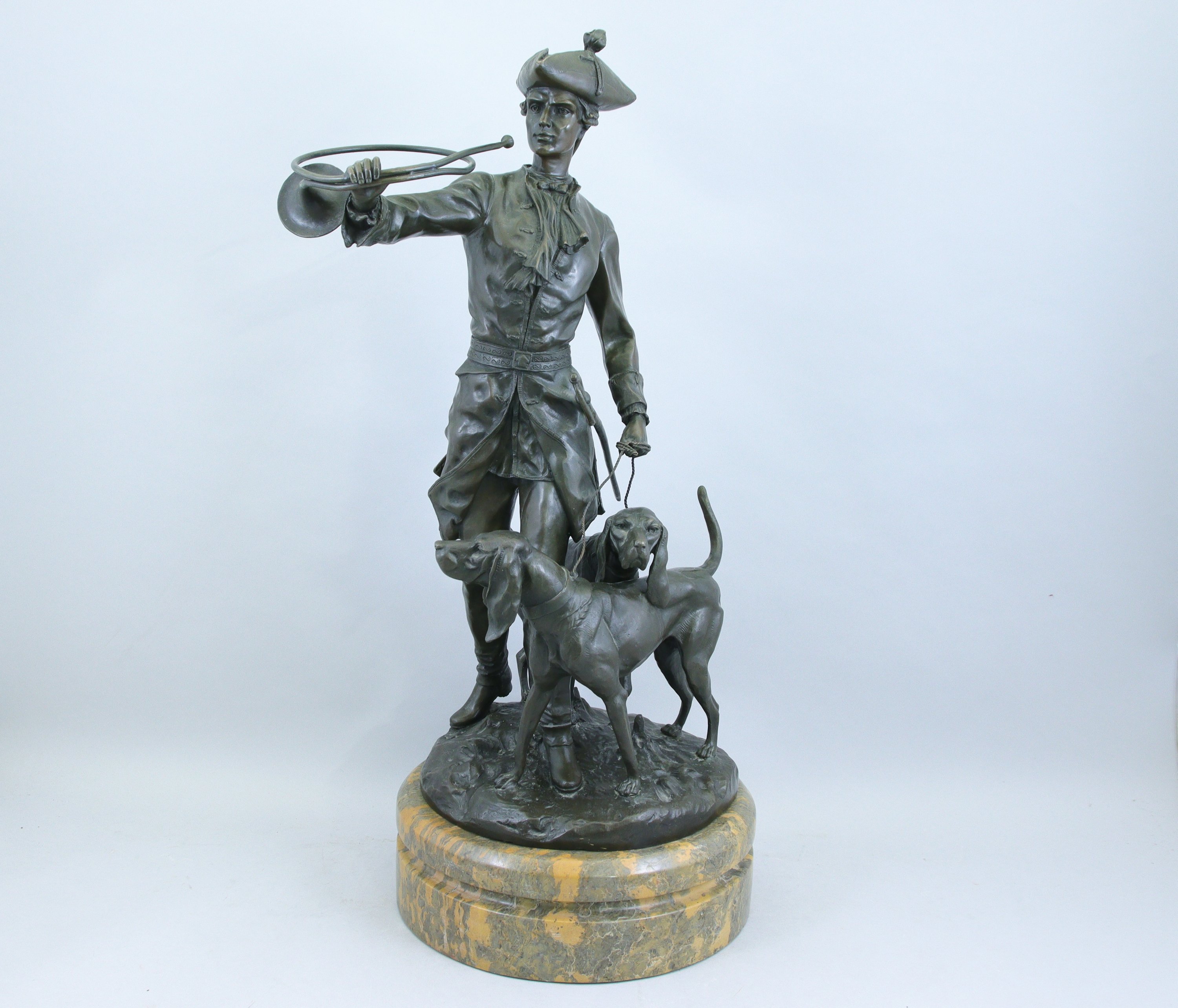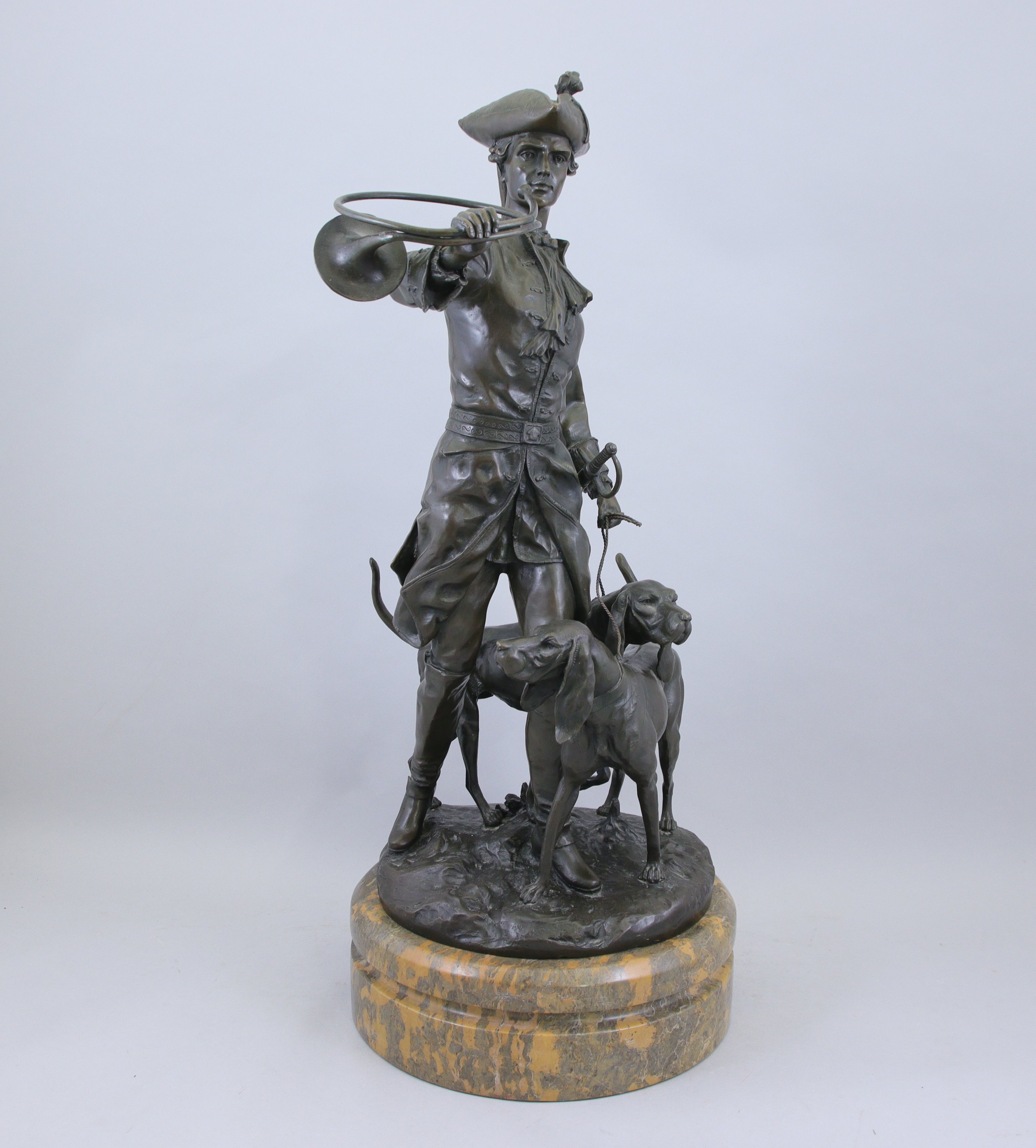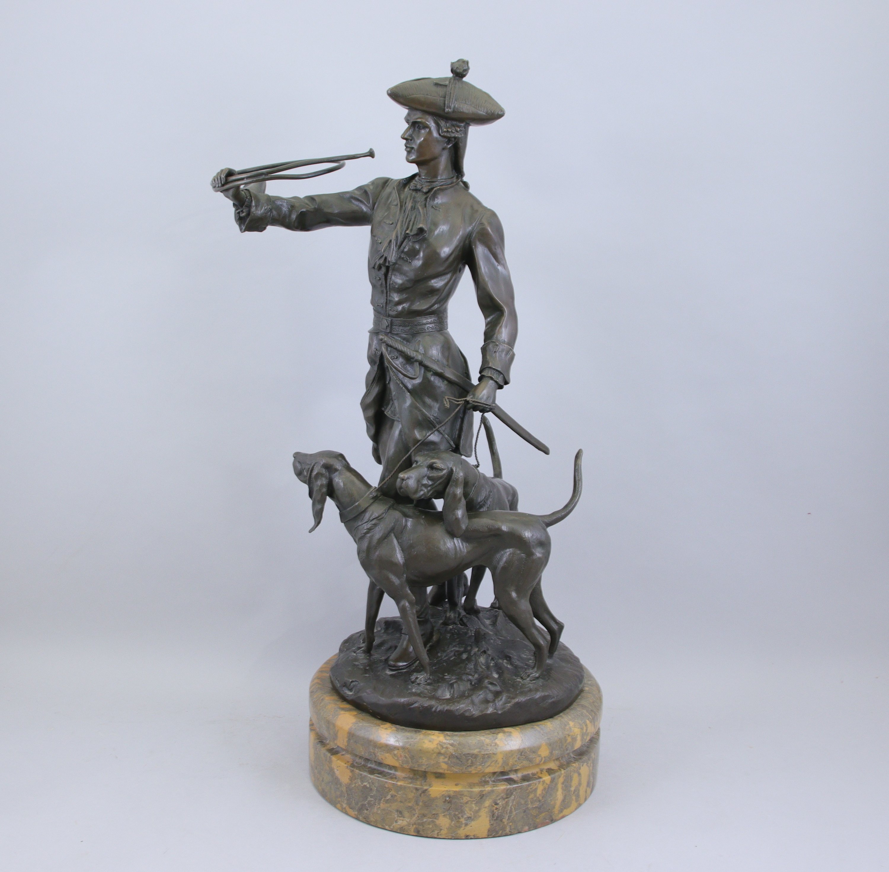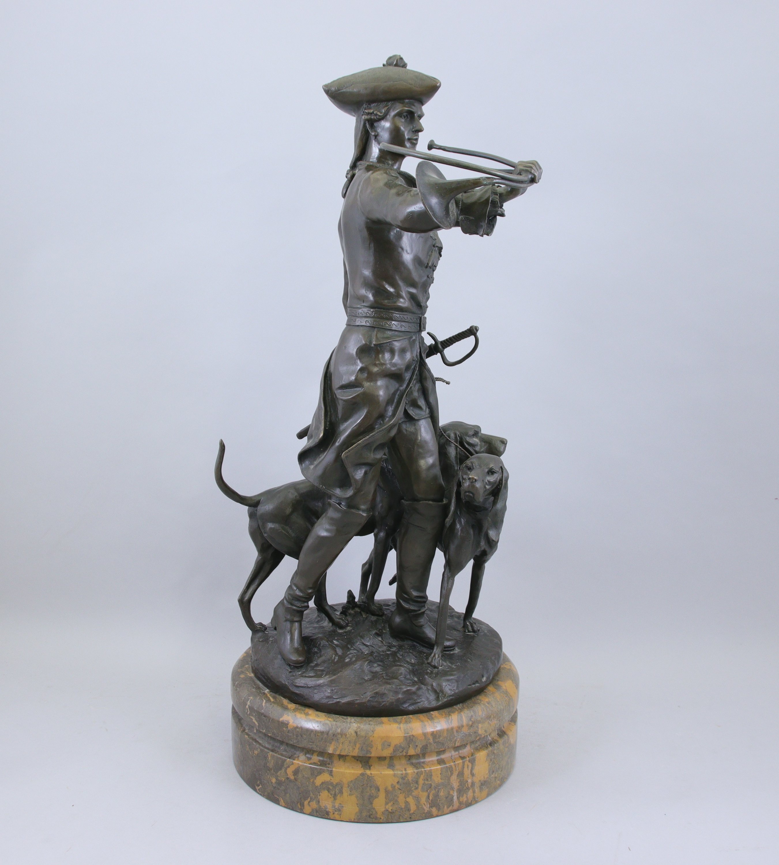 Bronze à patine brune et socle de marbre. Signé sur la terrasse.