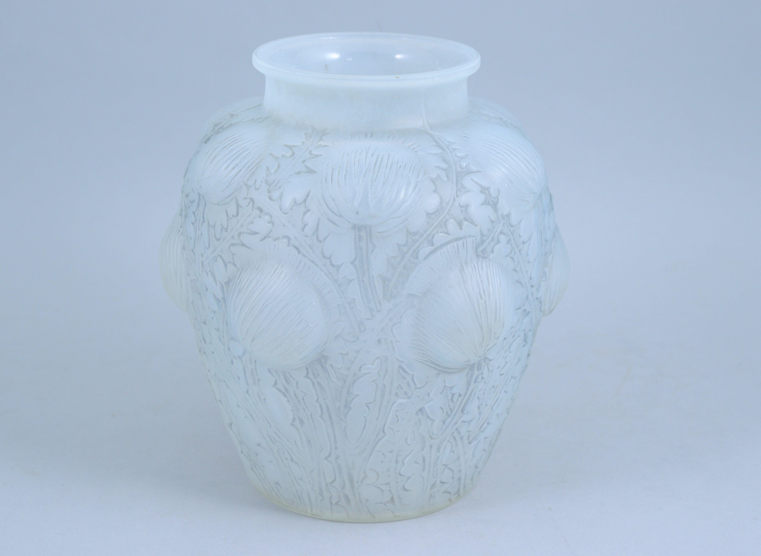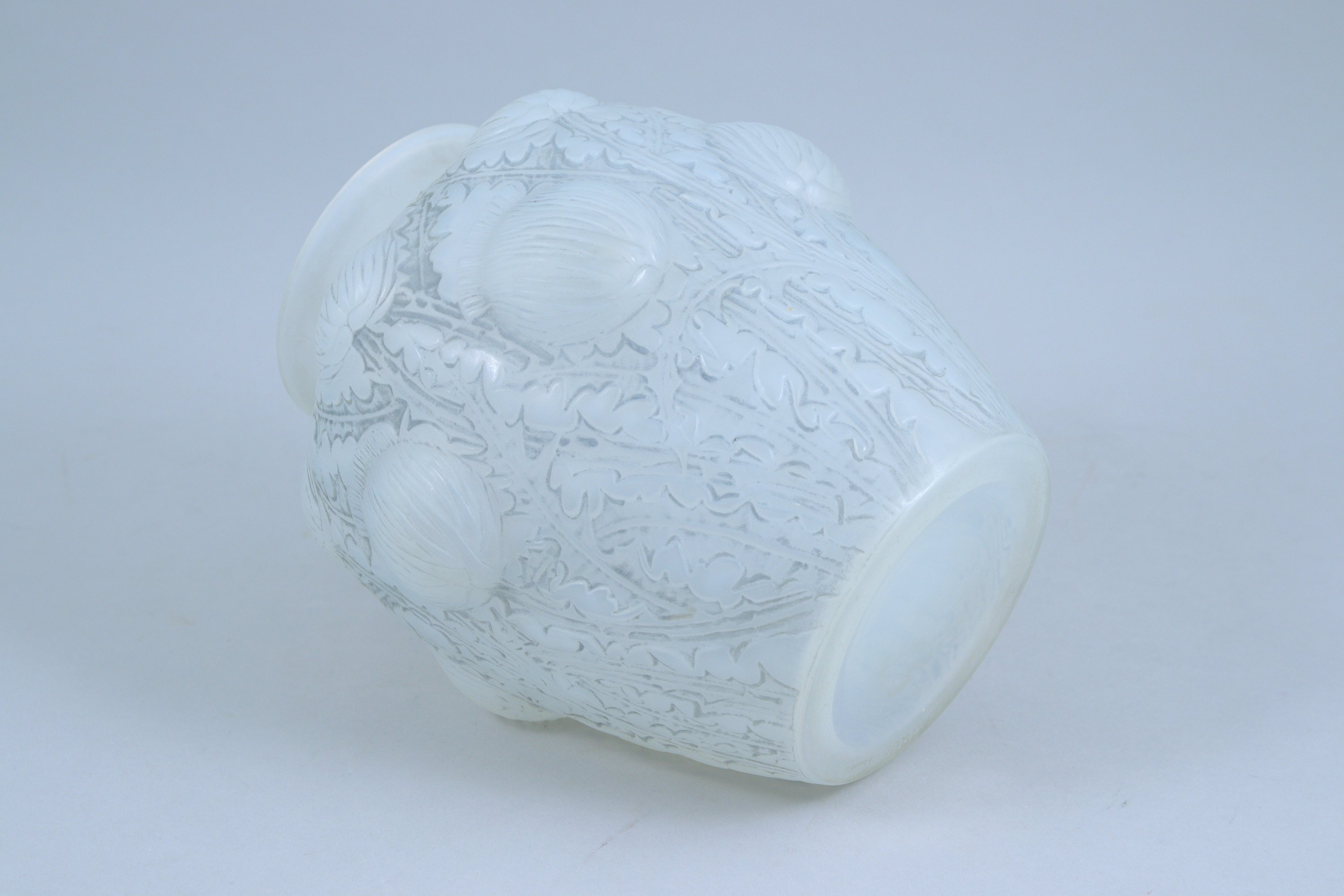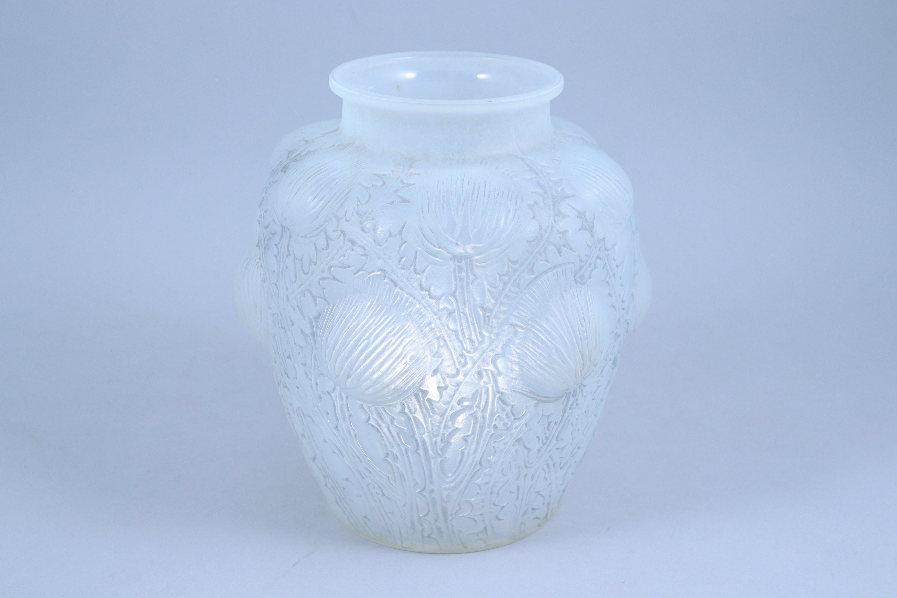 en verre pressé et moulé à décor de fleurs de chardon. Signé sous la base "LALIQUE FRANCE".