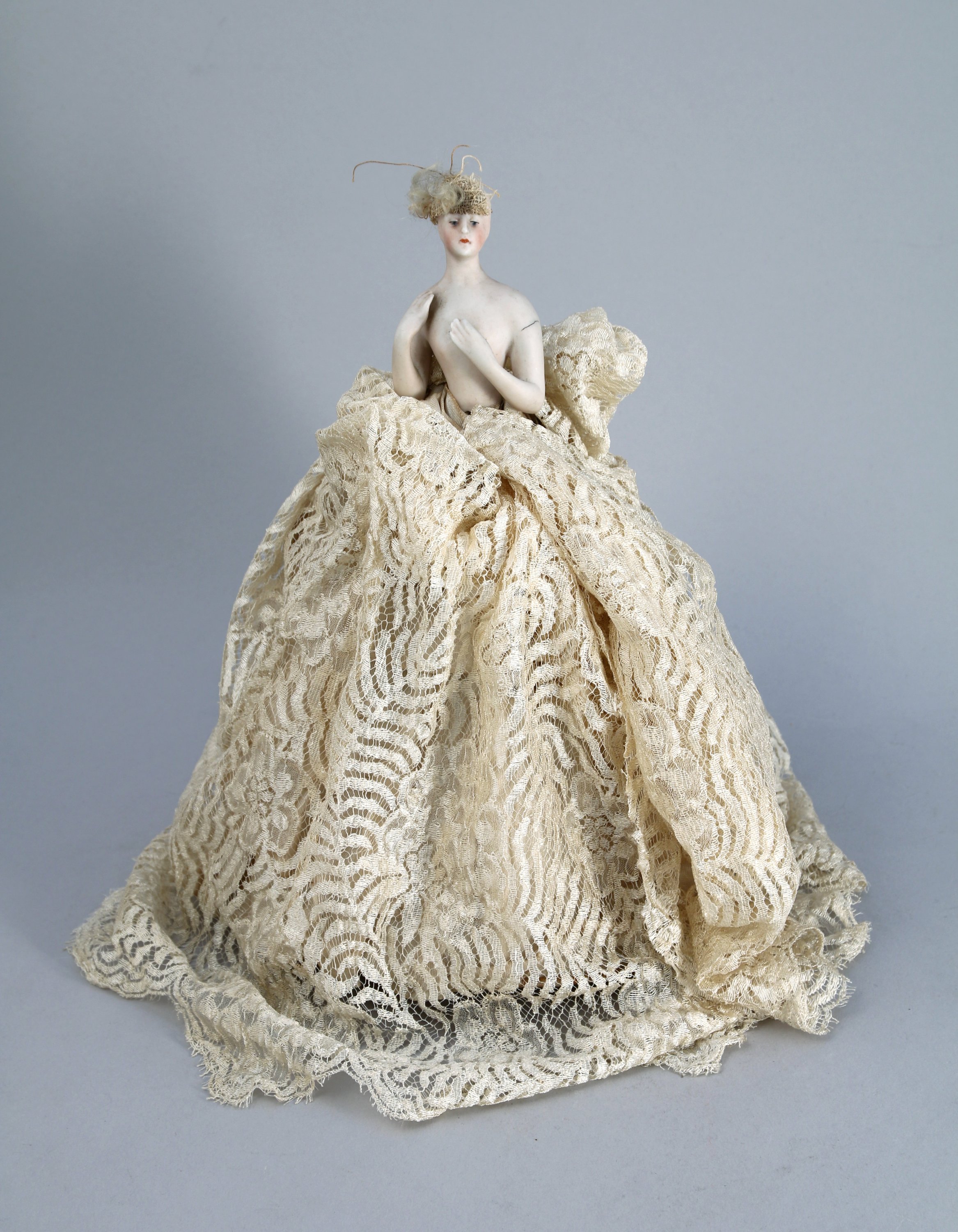 Buste de femme en porcelaine émergeant d'une ample robe à armature.
