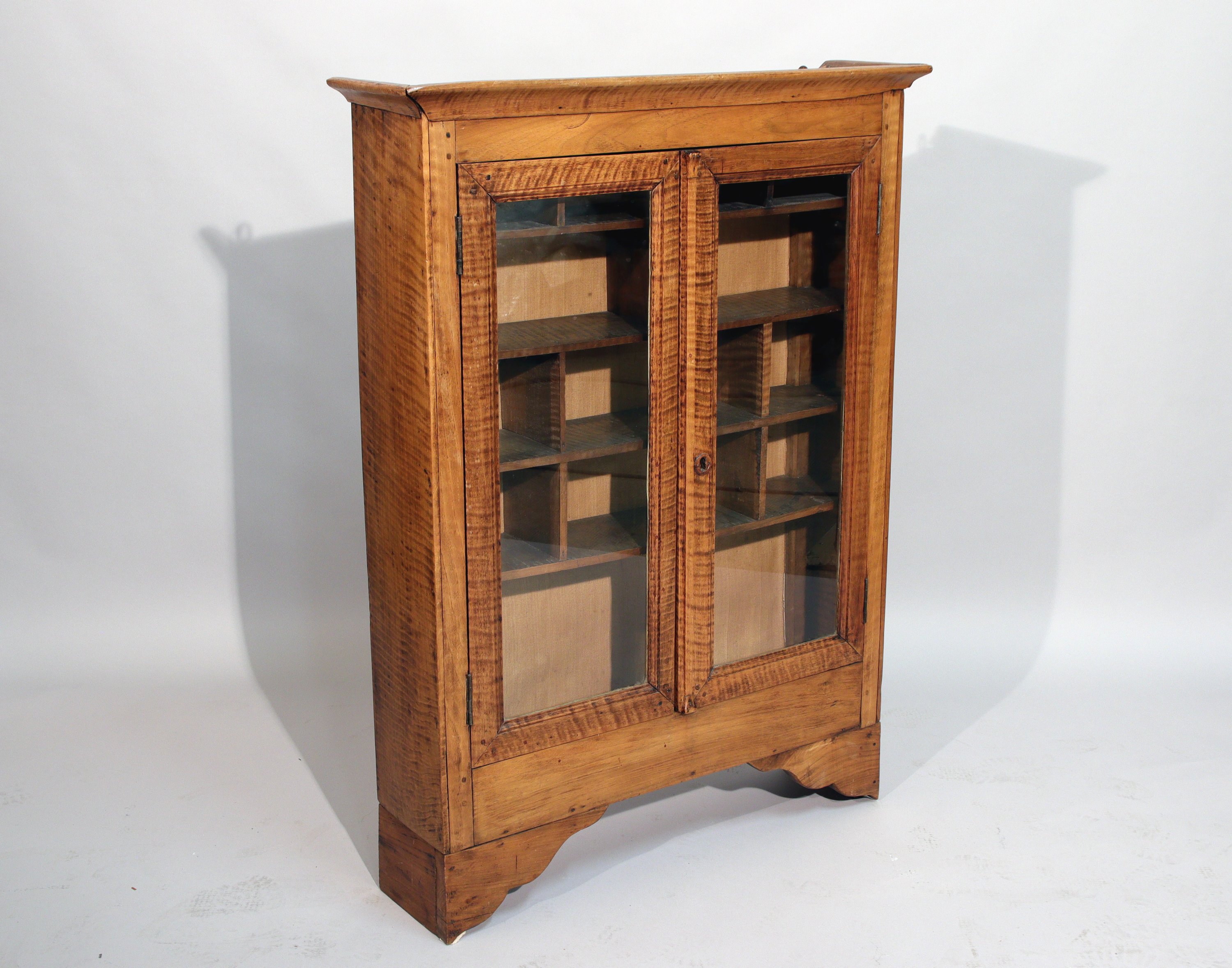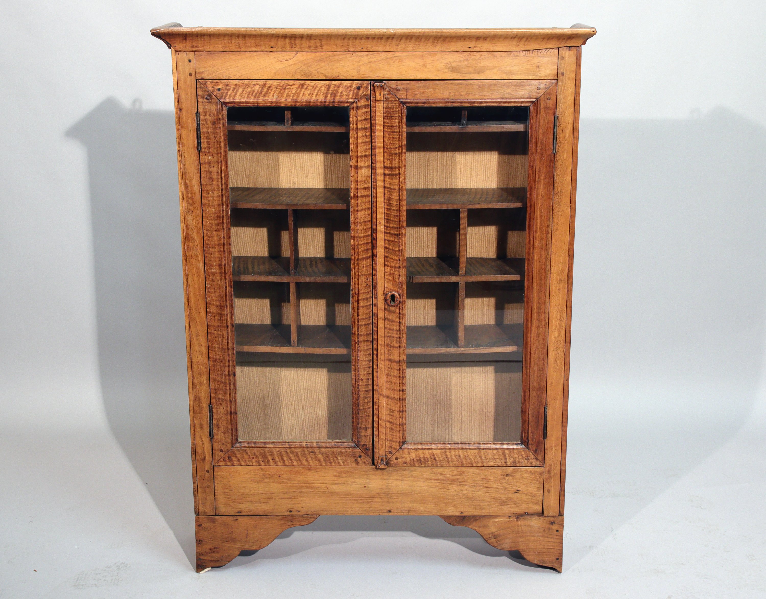 en bois verni, ouvrant en façade par deux portes vitrées découvrant des étagères à casiers. Il est surmonté d'une corniche.