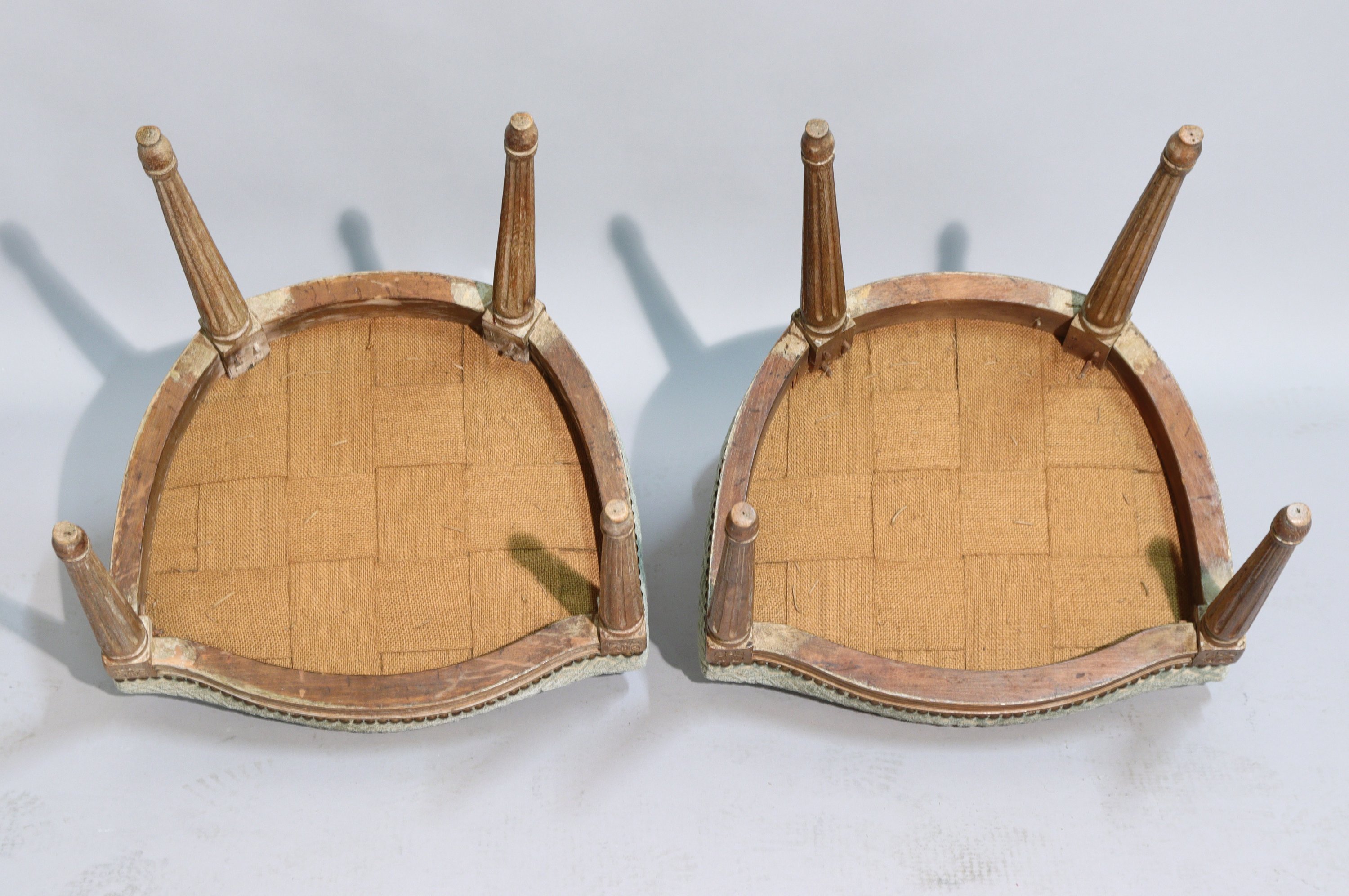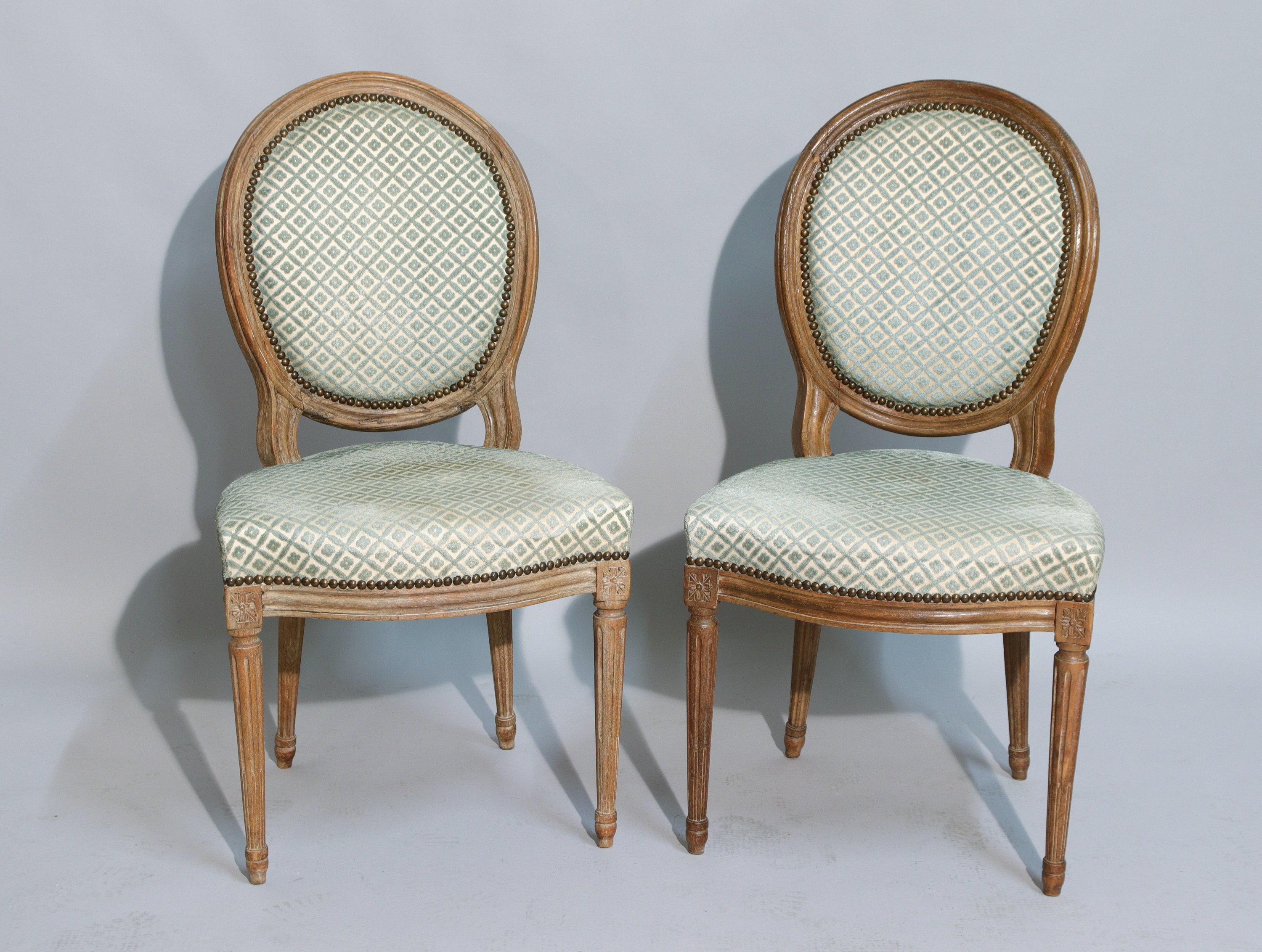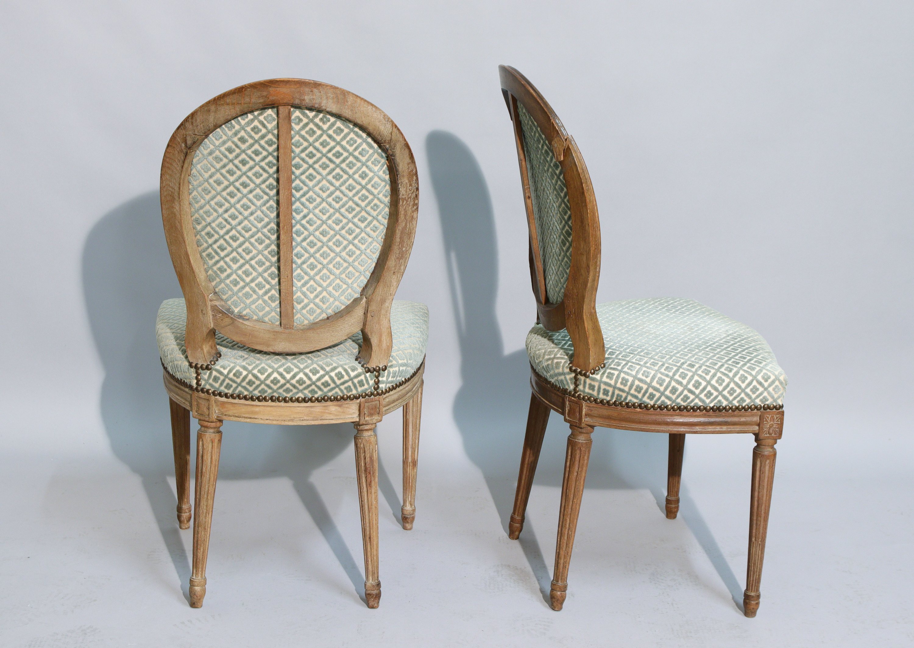 en bois naturel mouluré et sculpté, les dès de raccordement à fleurettes. Elles reposent sur quatre pieds fuselés et cannelés.
