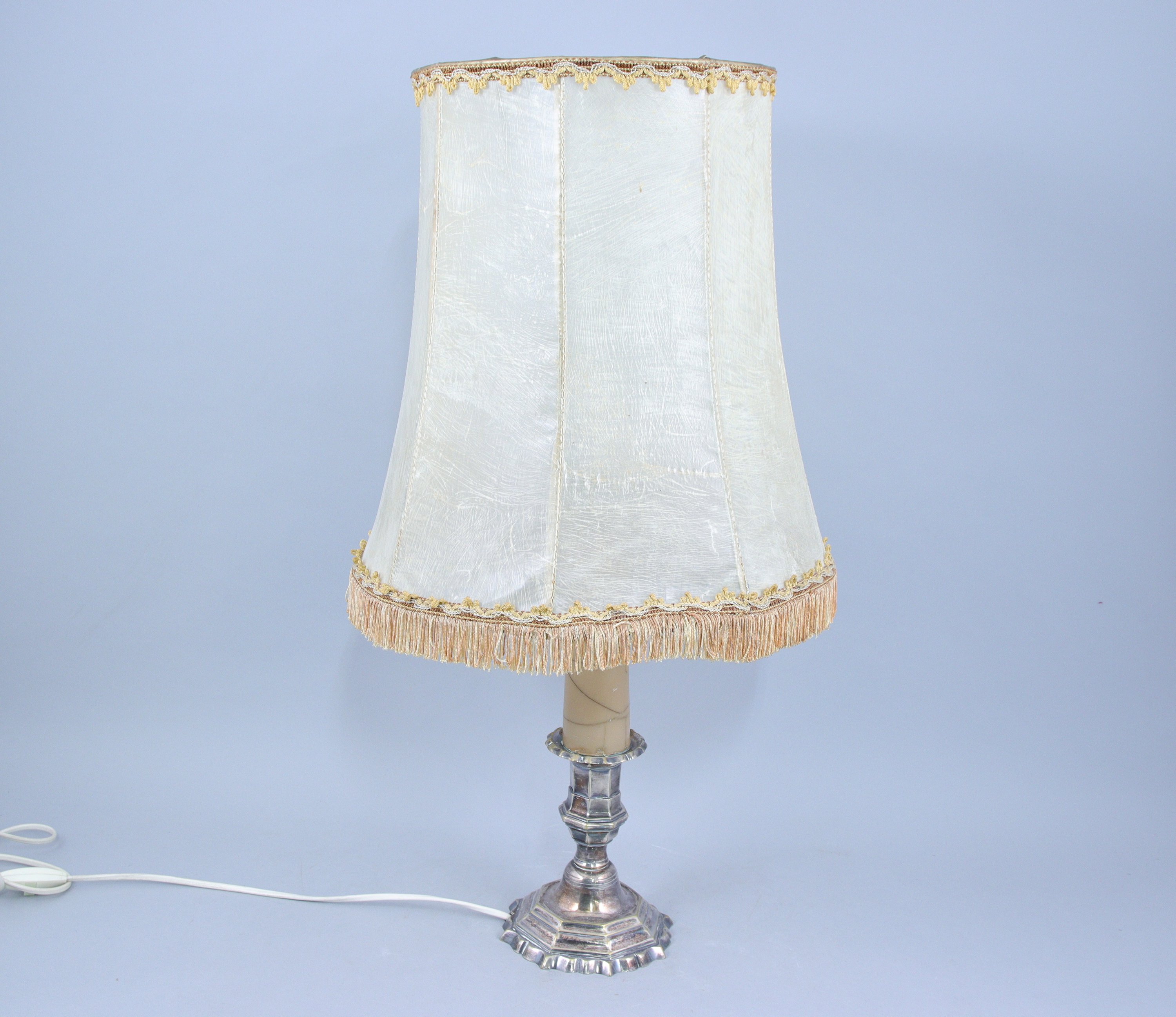 en métal argenté. Le fût octogonal reposant sur une base en cloche à succession de doucines.