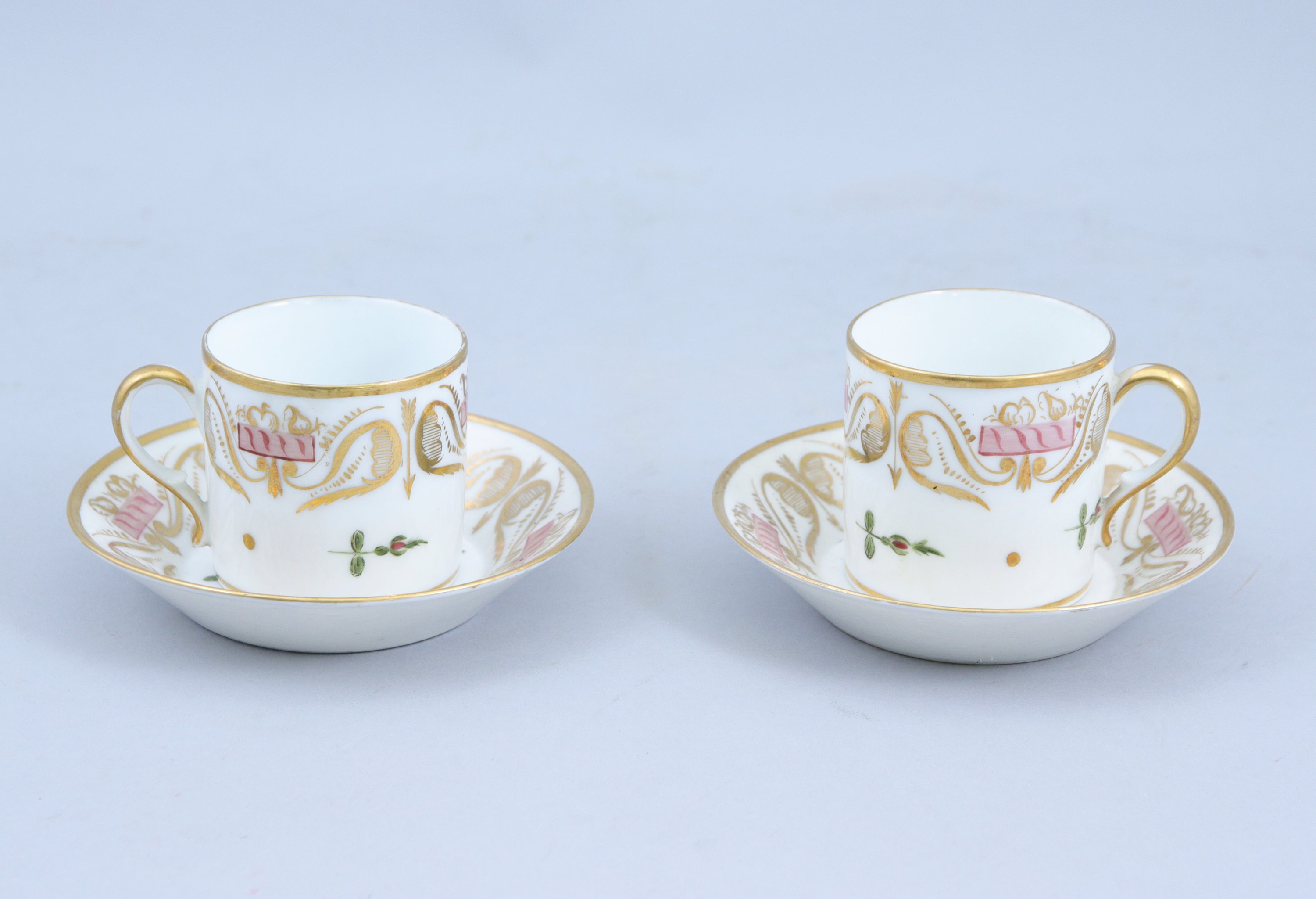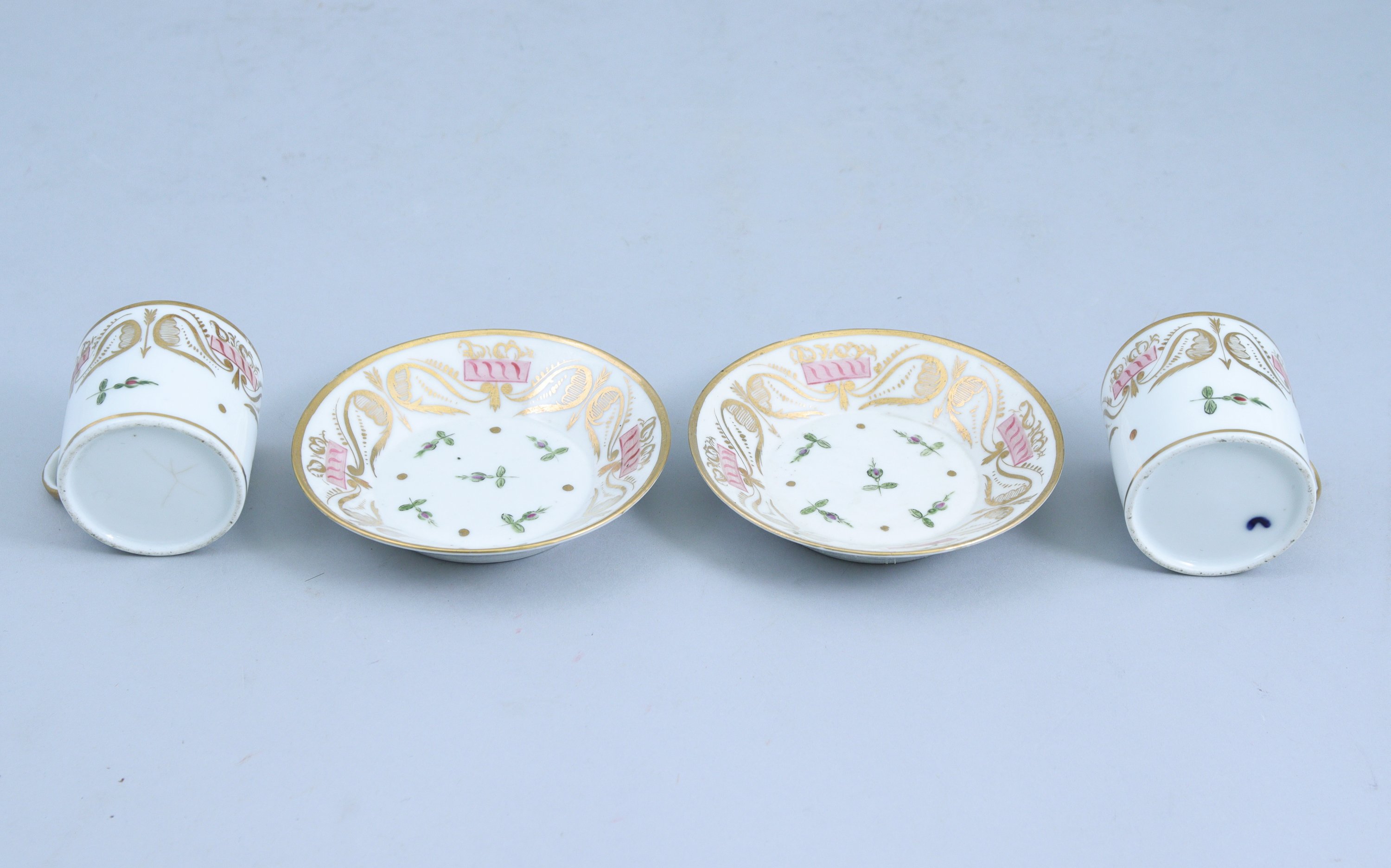 en porcelaine à décor doré d'enroulements, flèches et fleurs jetées.