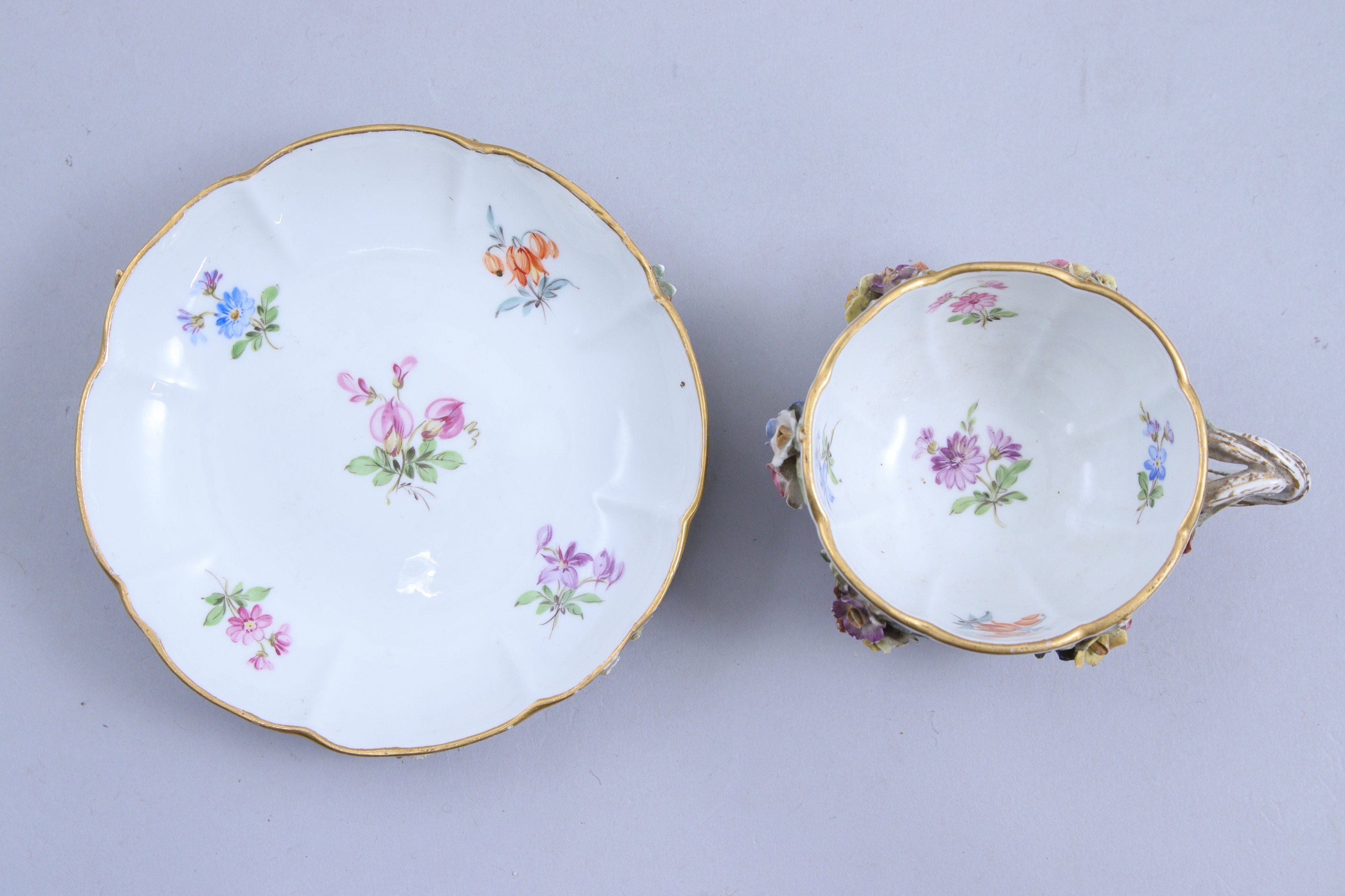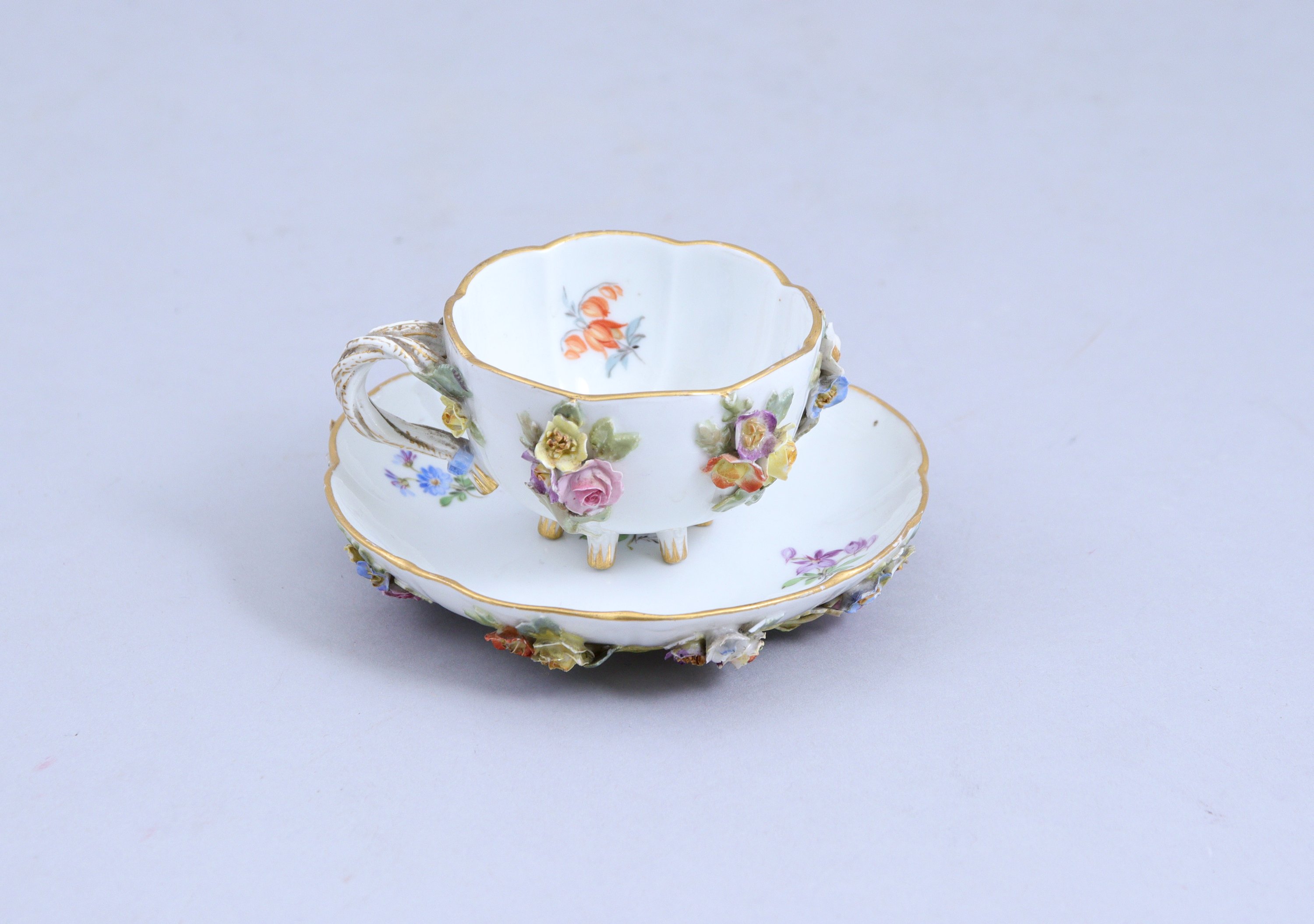 Meissen, XVIIIe siècle Tasse et soucoupeen porcelaine à décor polychrome...