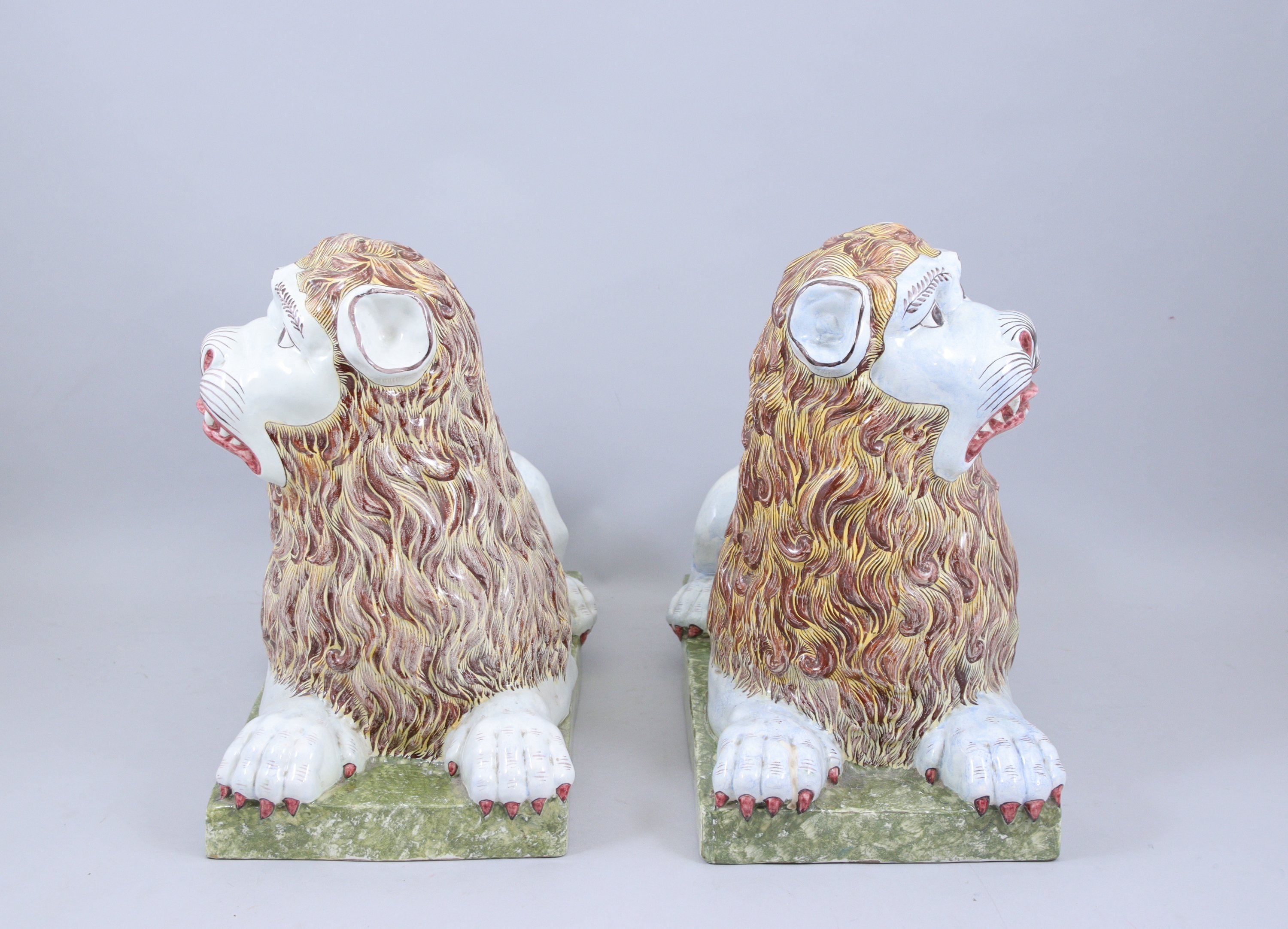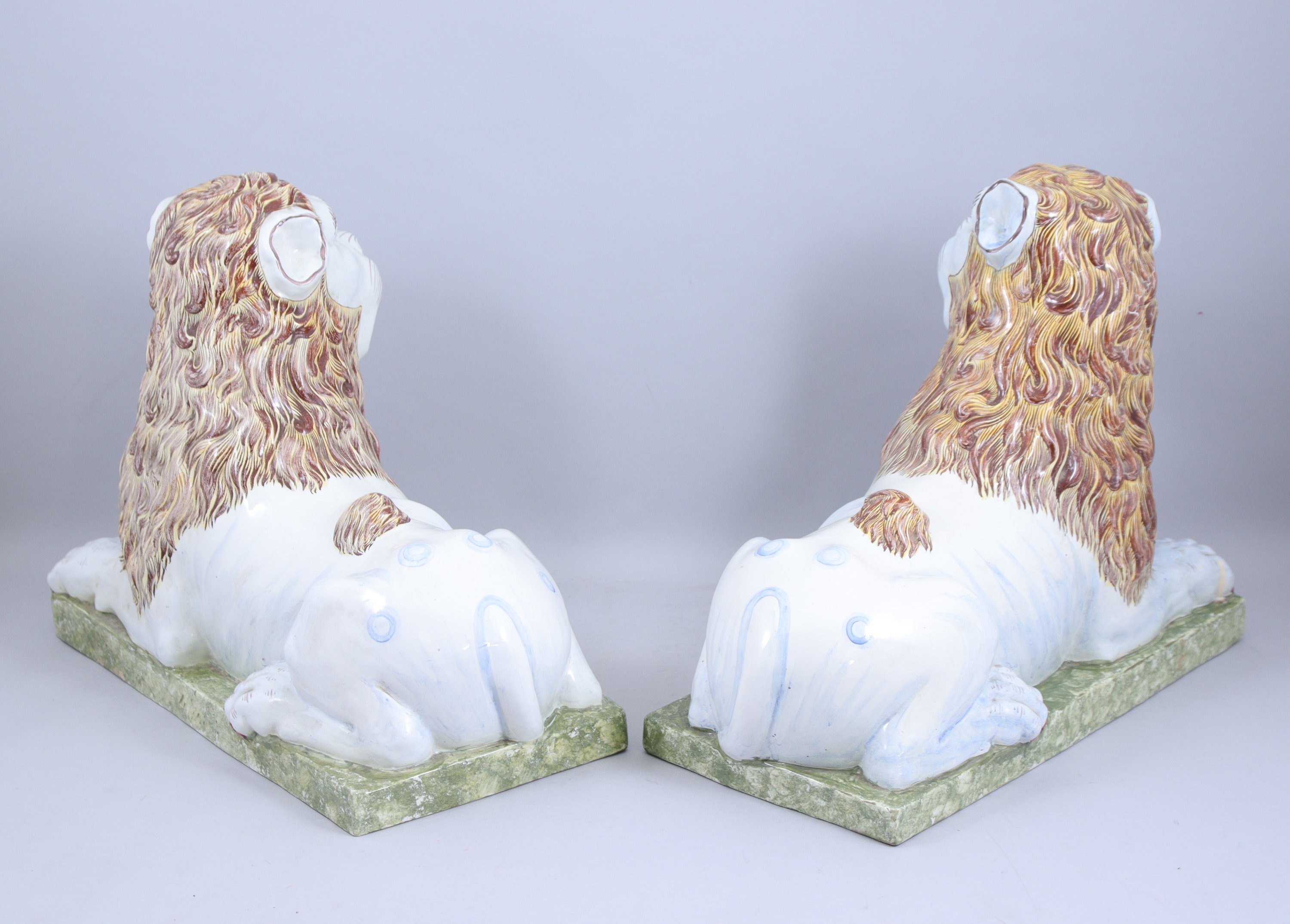 en faïence polychrome sur une terrasse à décor de marbrures vertes.
