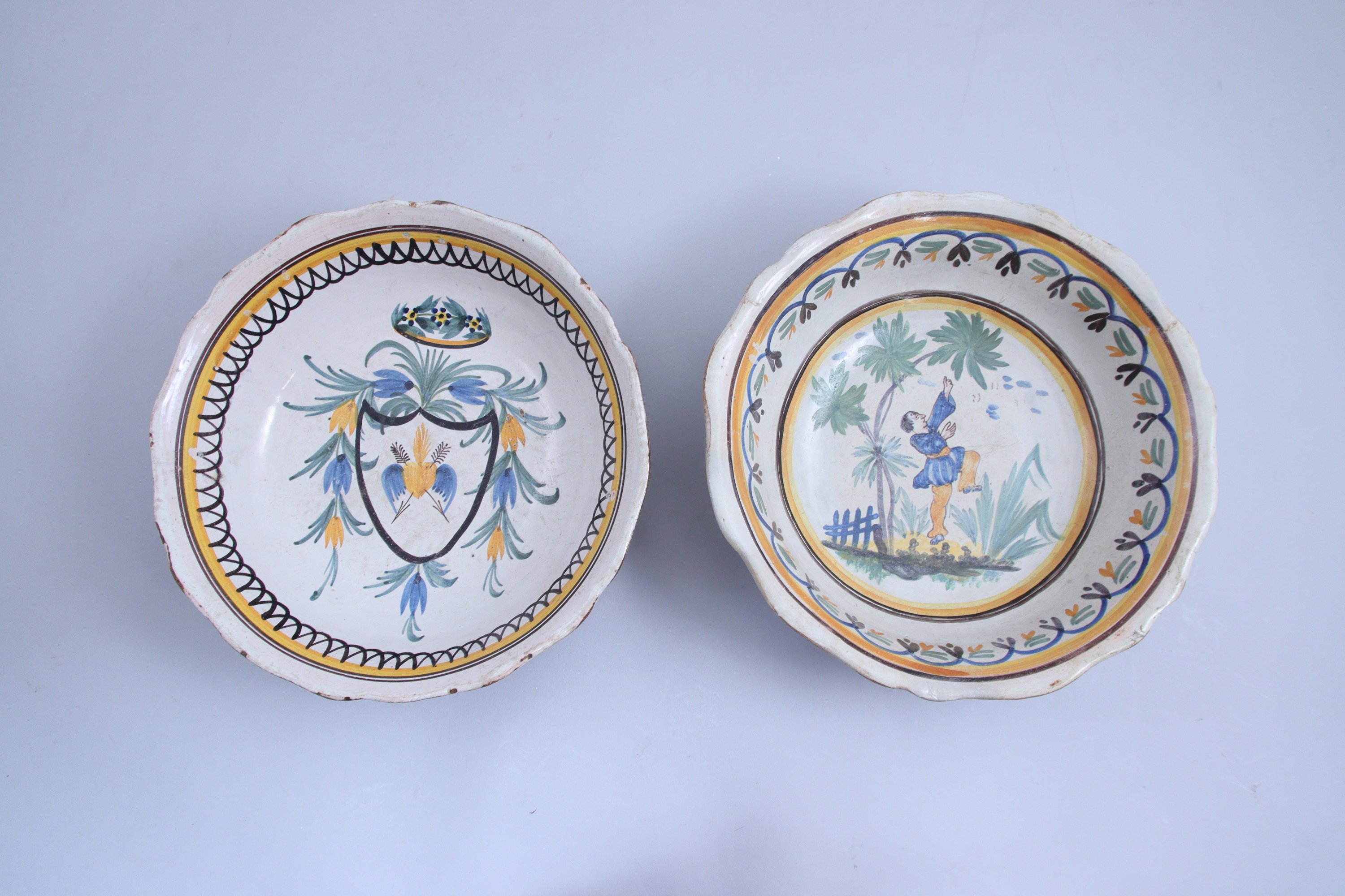 en faïence polychrome, ornés de frises, filets, et branchages feuillagés.