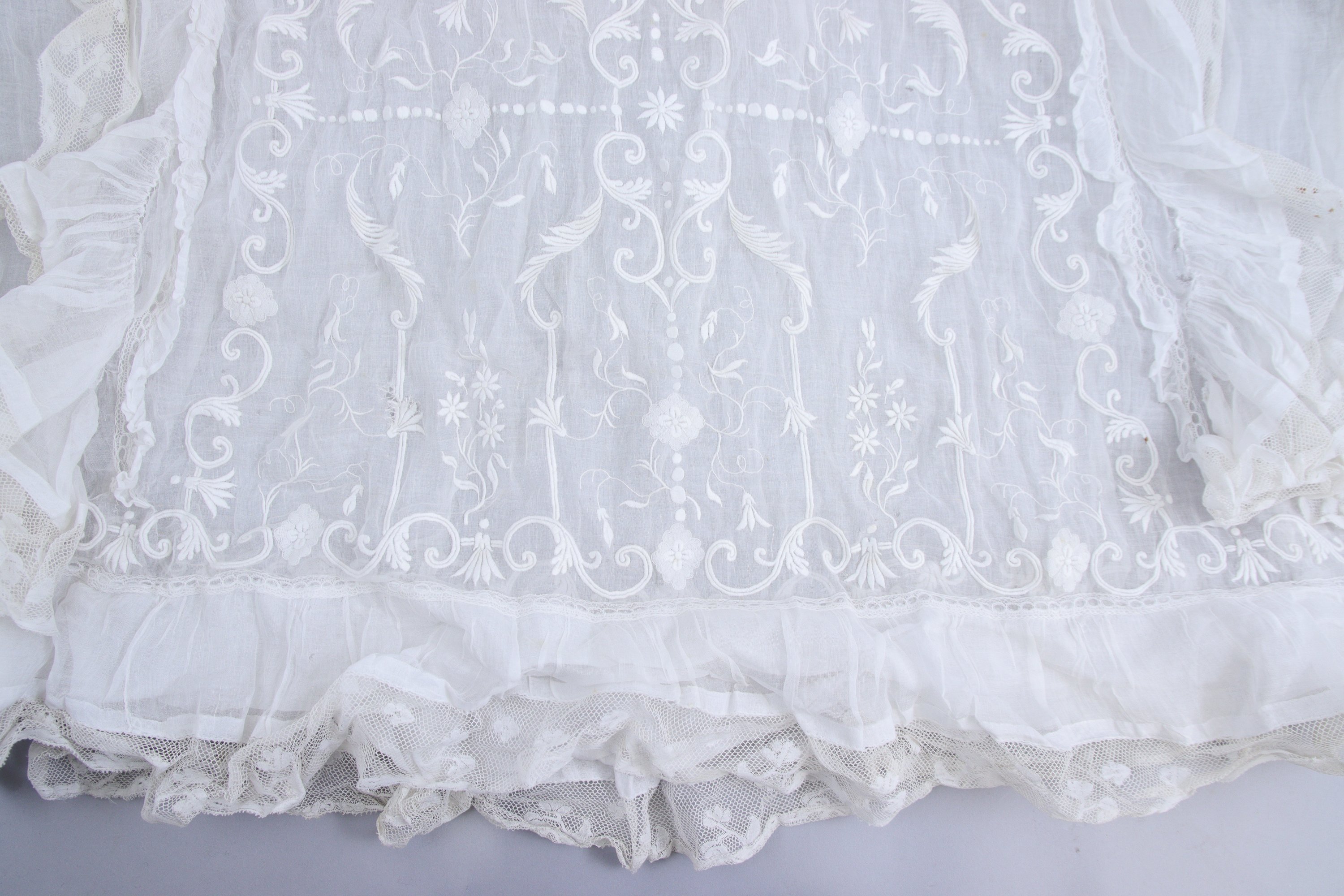 en coton et dentelle, brodée de fleurettes et rinceaux.