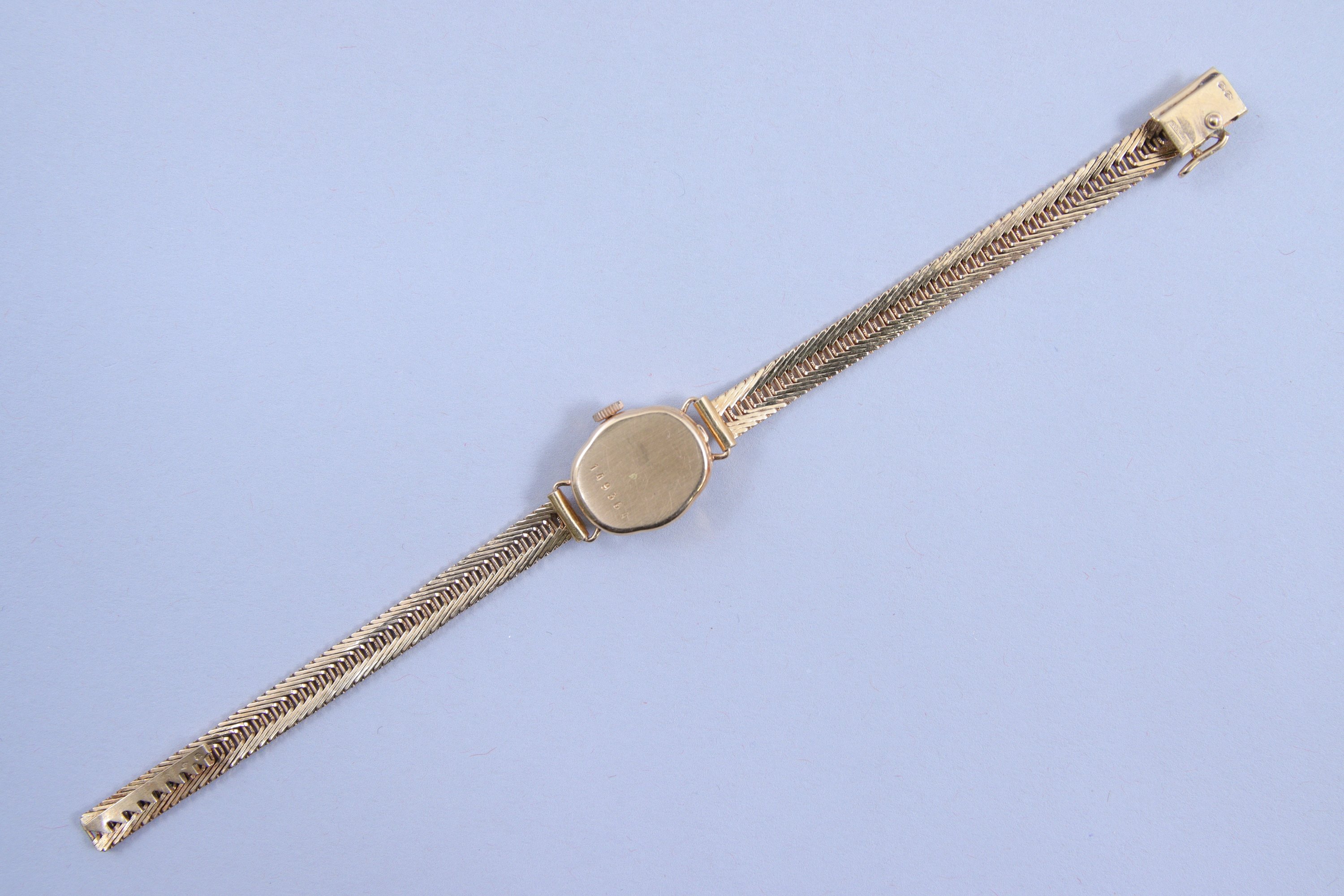 en or jaune 750 millièmes. Le boitier de forme circulaire, le cadran de couleur ivoire avec index pour les heures et remontoir à trois heures. Bracelet en or jaune 750 millièmes.