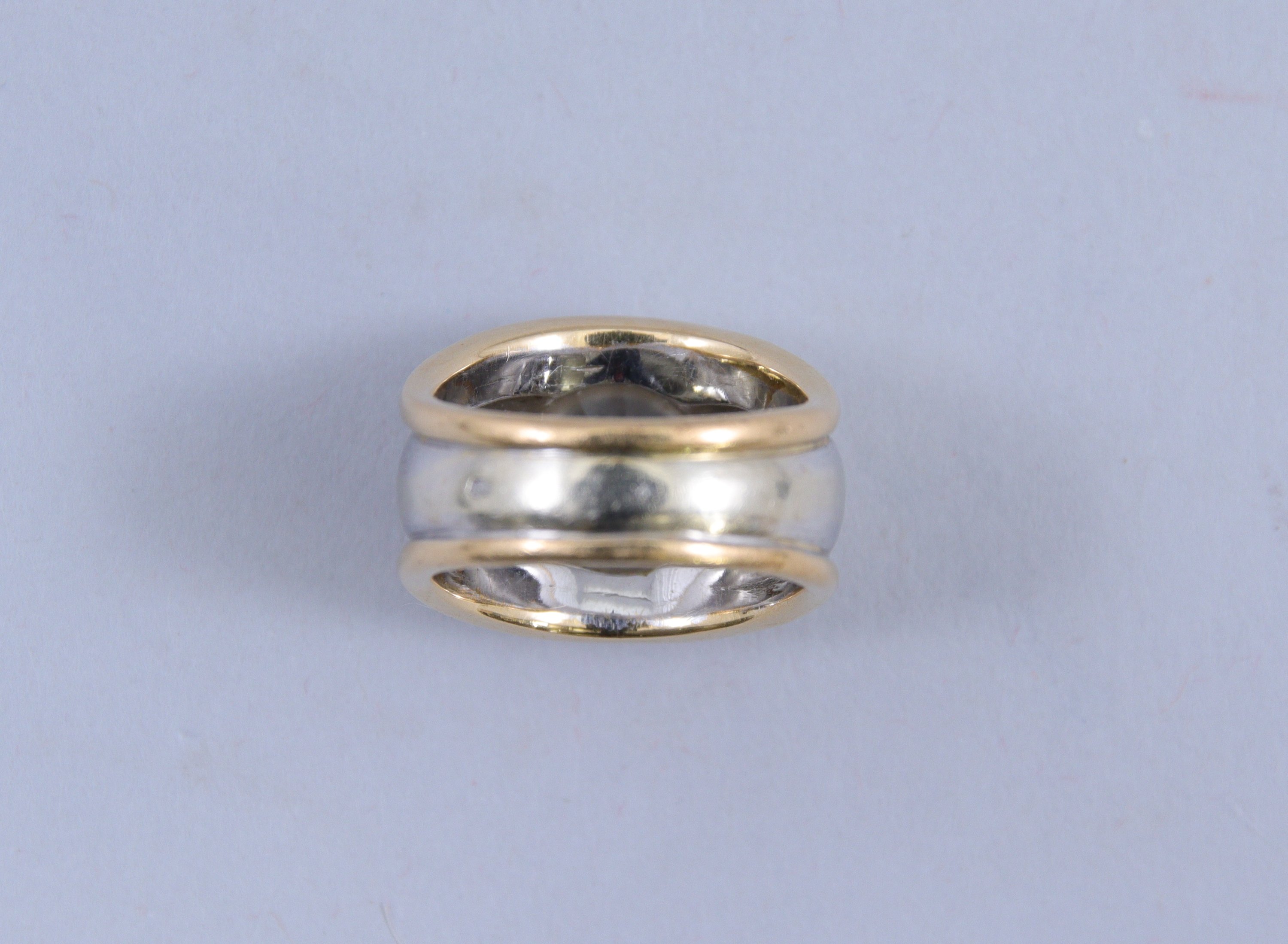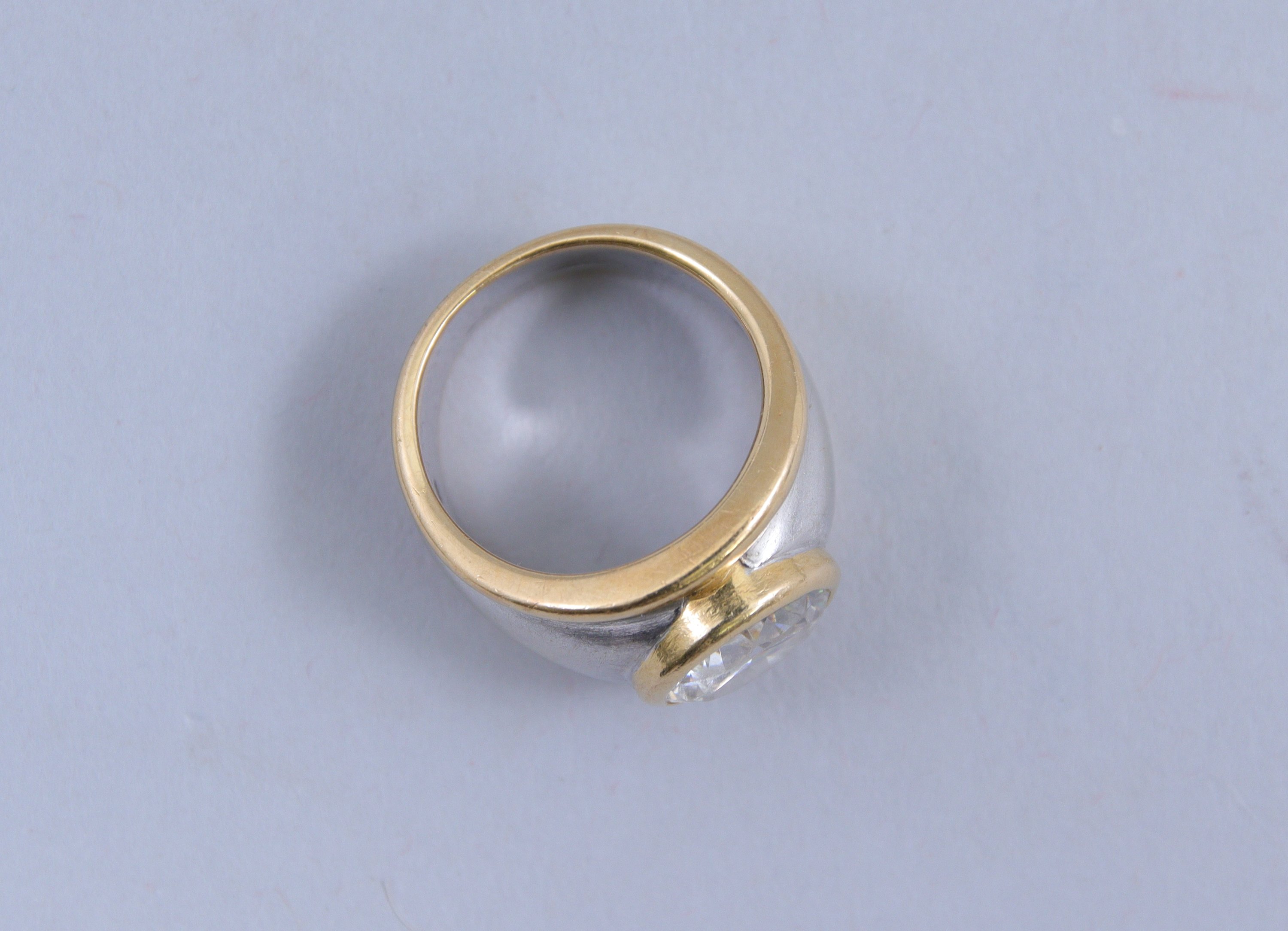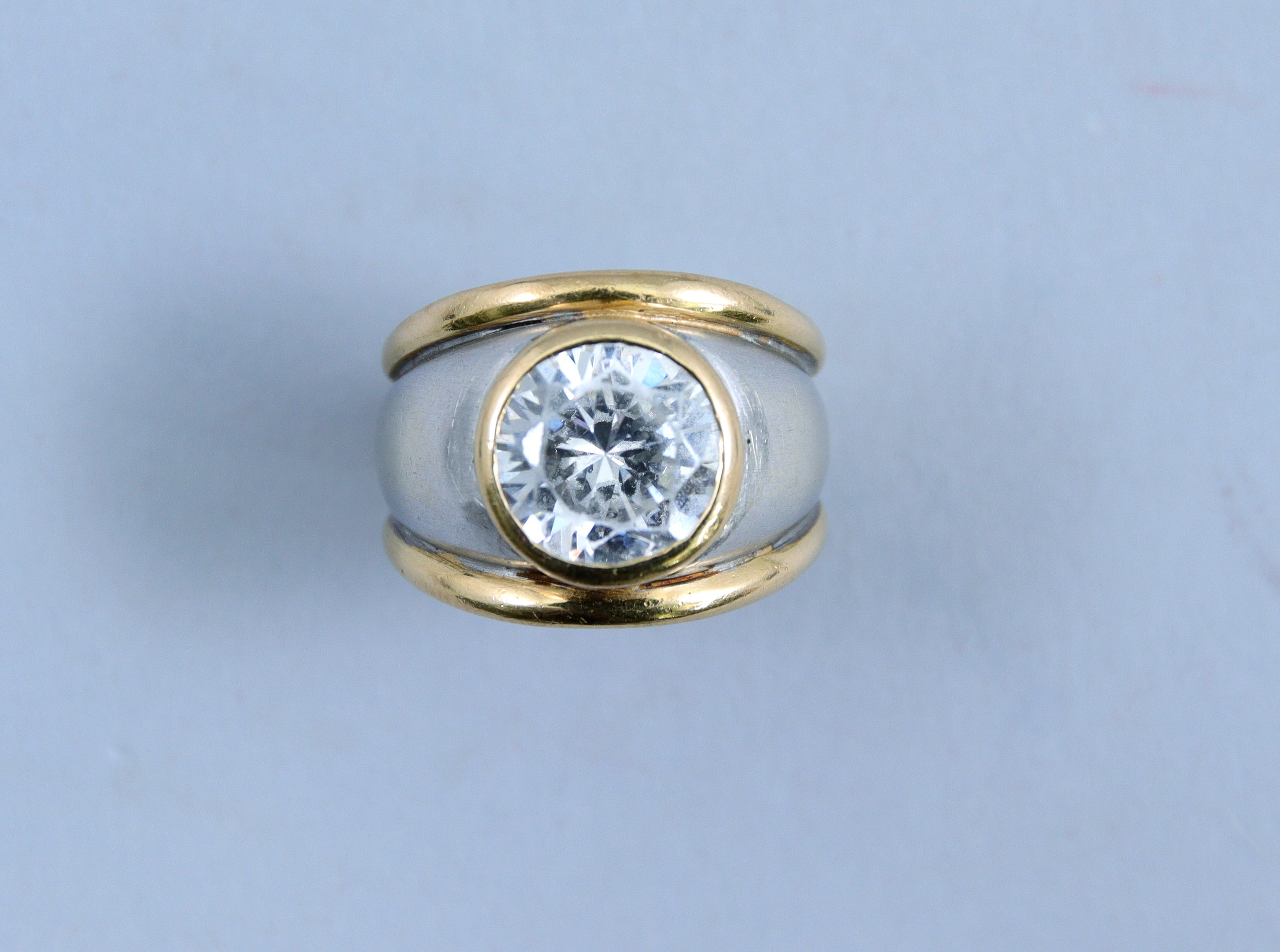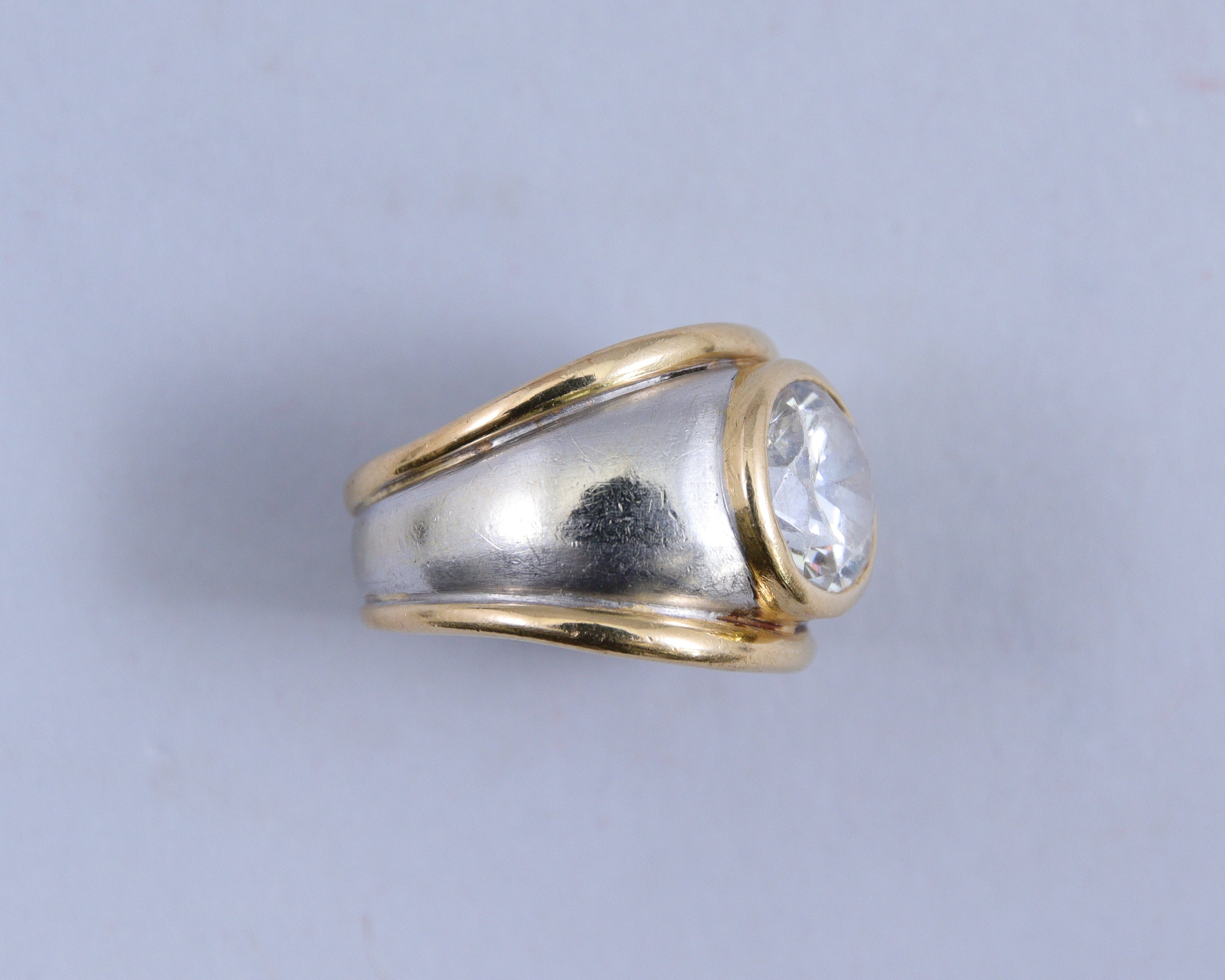 en or 750 millièmes de deux tons, le centre orné d'une pierre d'imitation blanche.