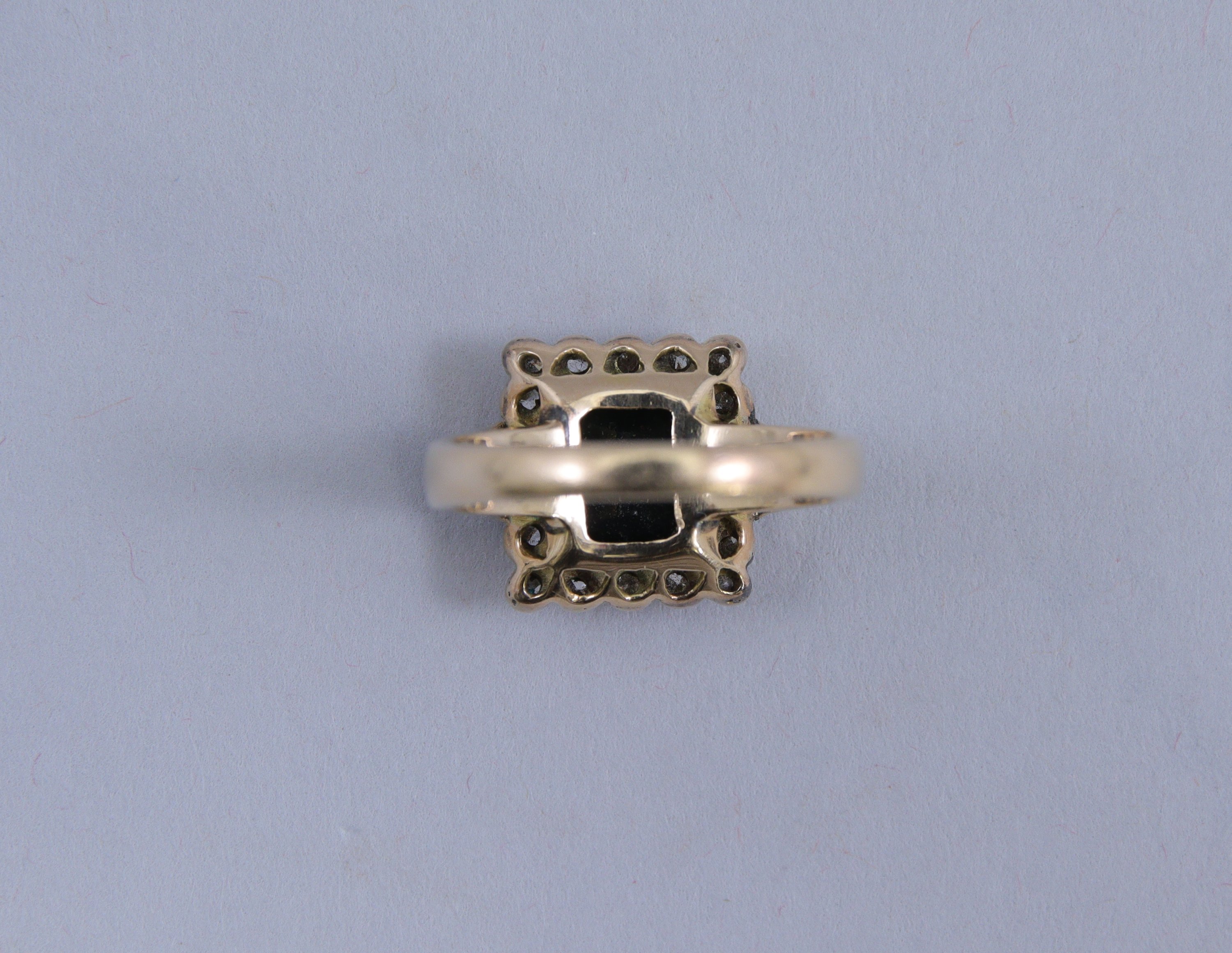 en or jaune 585 millièmes, ornée au centre de saphirs et de diamants ronds de taille brillant.