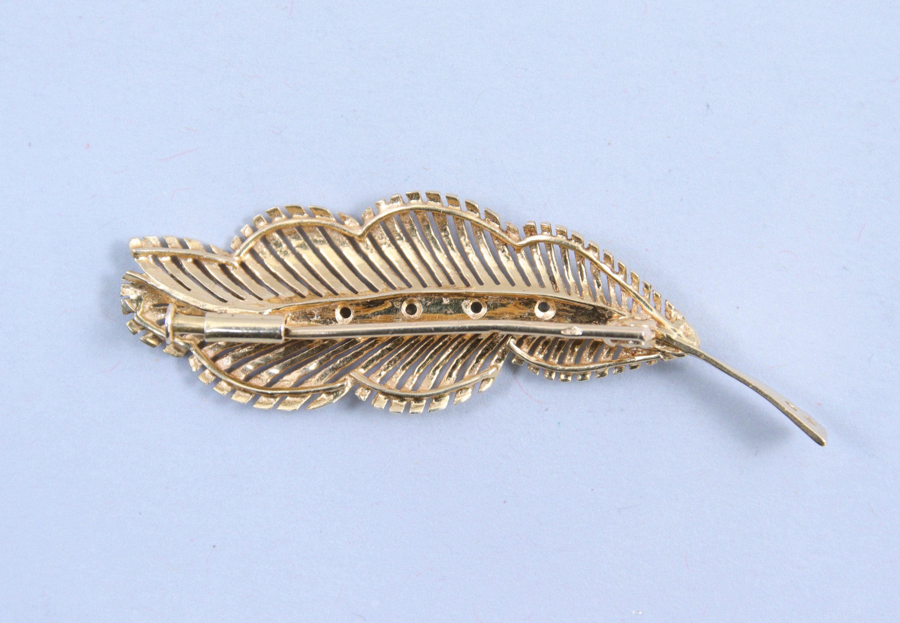 Broche plume en or jaune 750 millièmes,