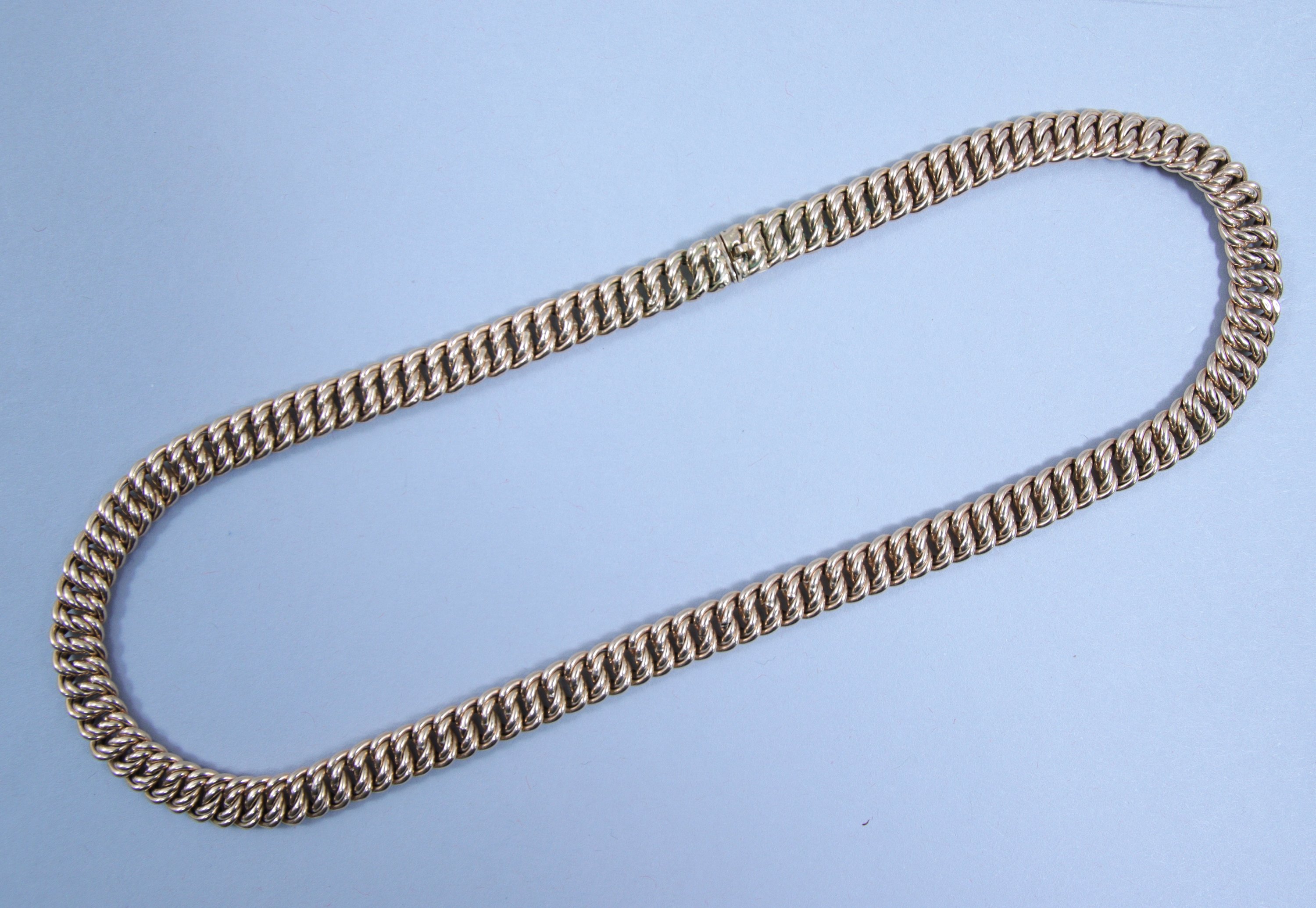 Collier en or jaune 750 millièmes à mailles américaine.Long. 43...