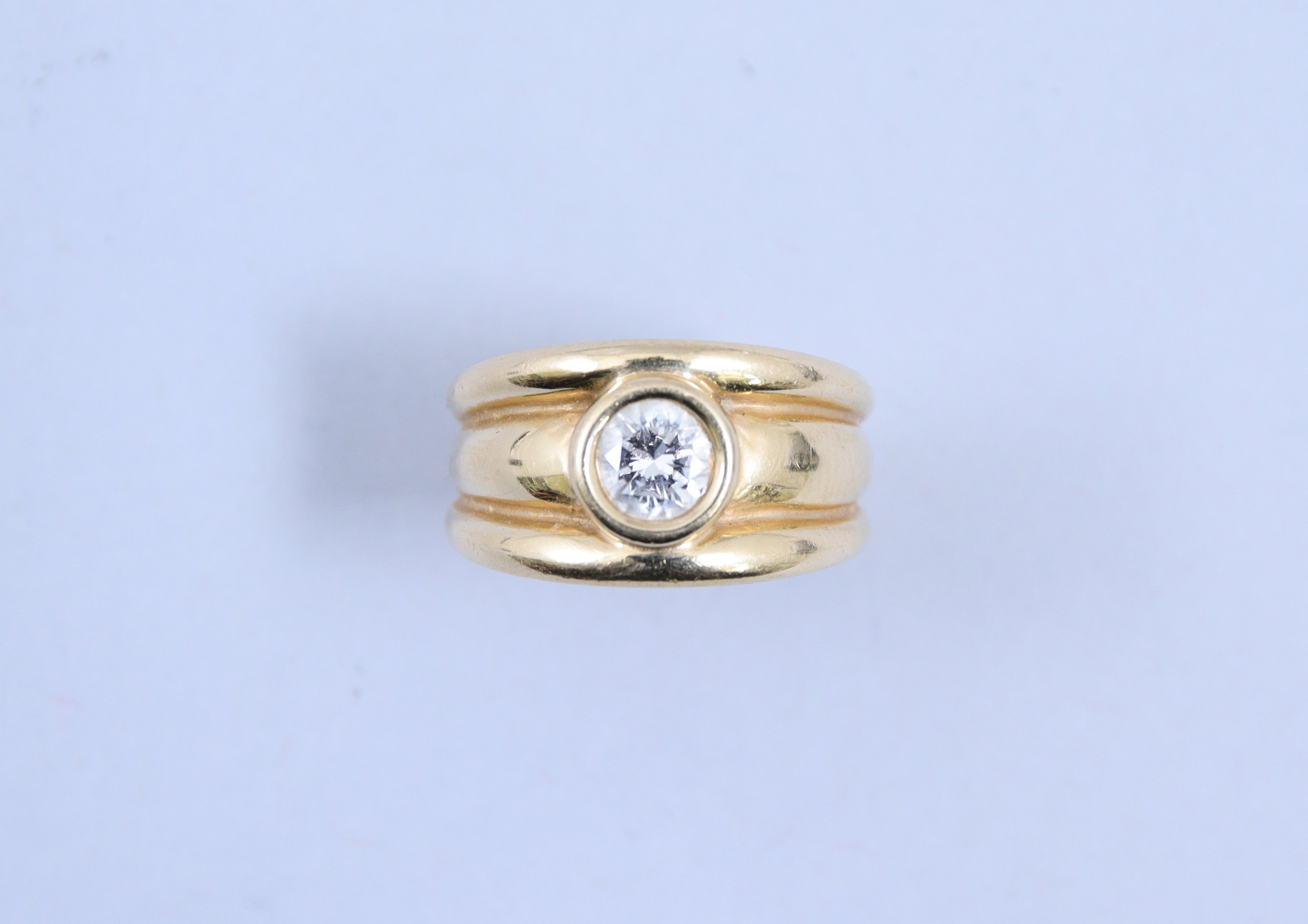en or jaune 750 millièmes, ornée d'un diamant de taille moderne d'environ 0,6 carat.