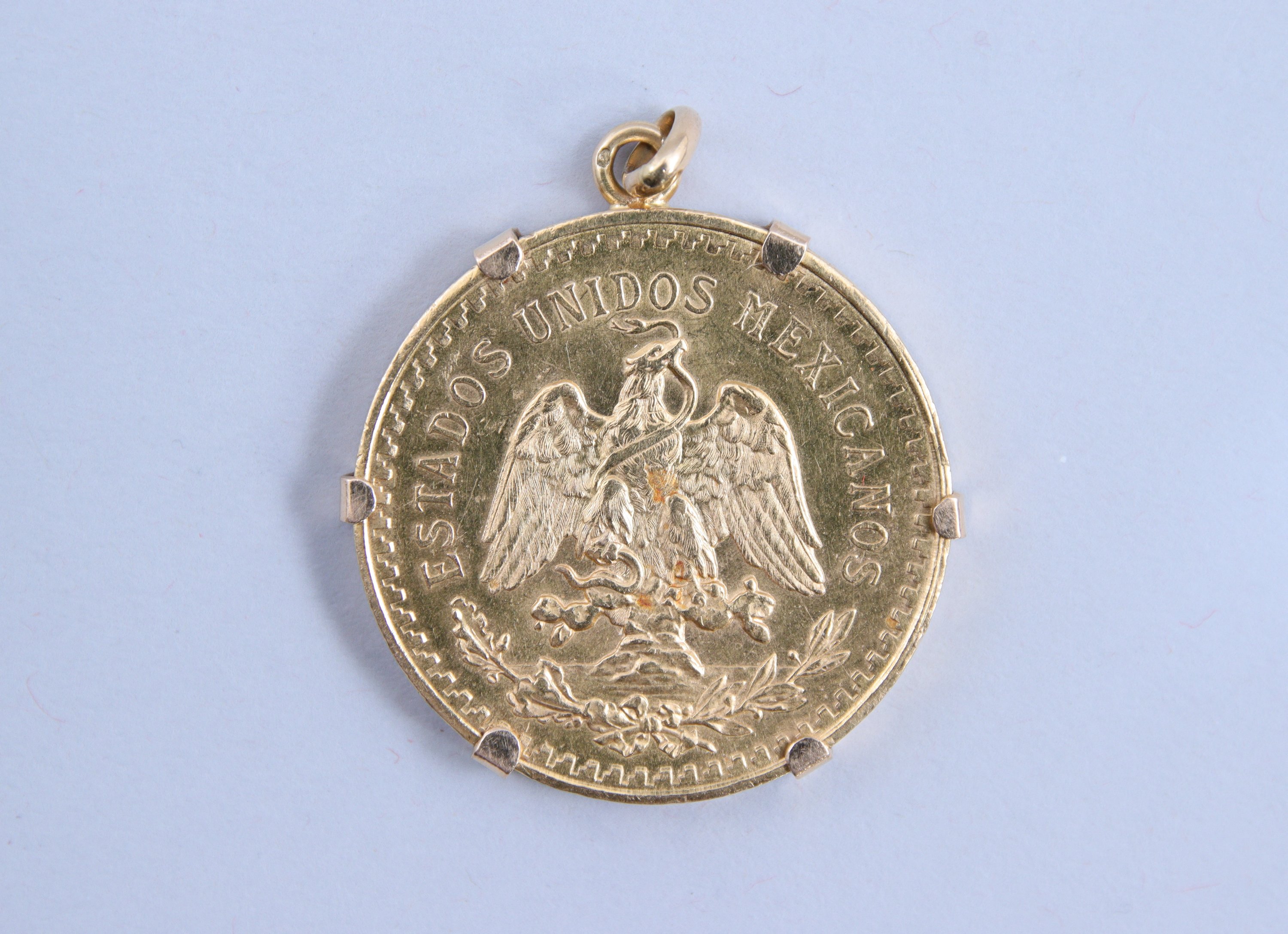 en or jaune 750 millièmes orné d'une pièce de 50 Pesos mexicain de 1946.