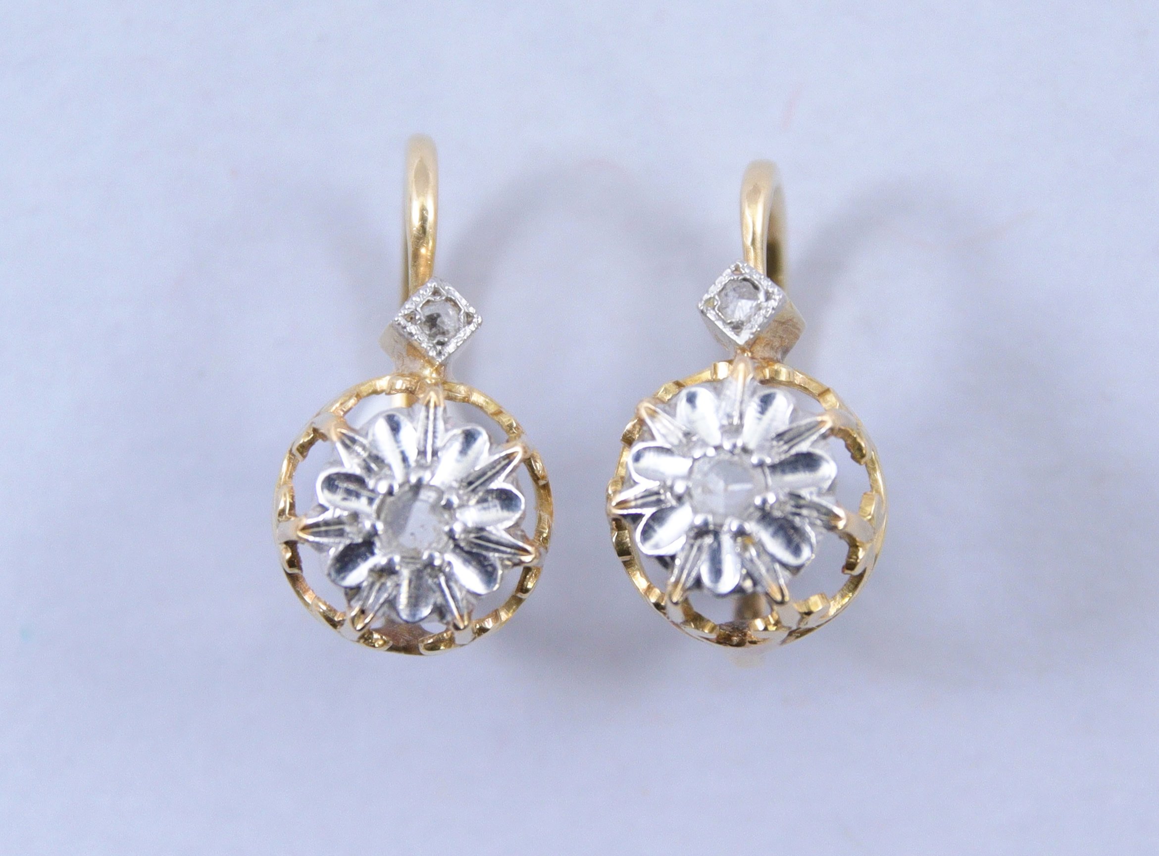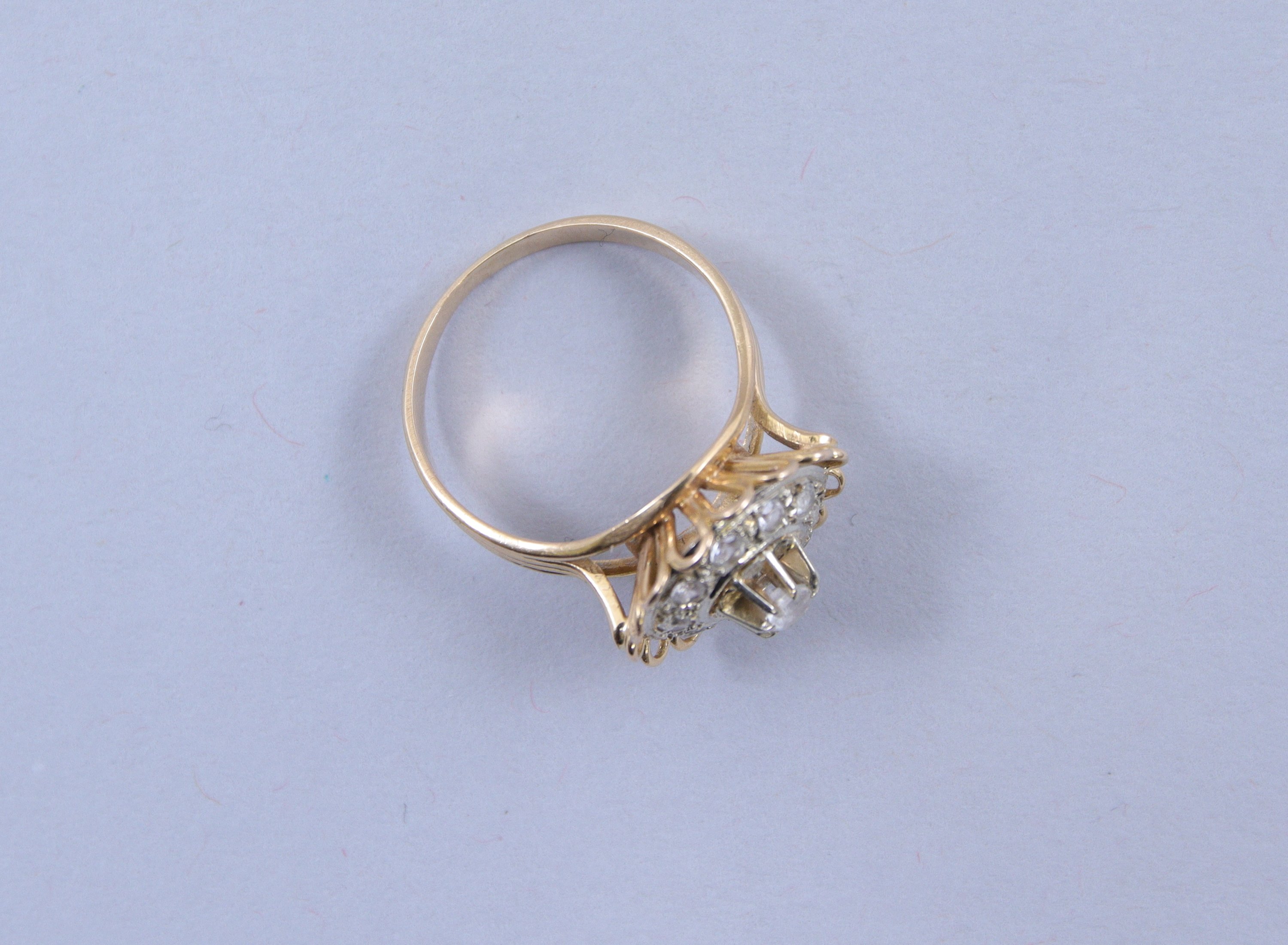 en or jaune 750 millièmes et pierres blanches comprenant une bague (3,6 gr.) et une paire de dormeuses (2,3 gr.).